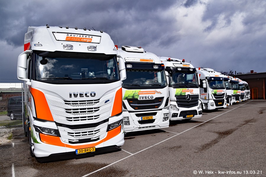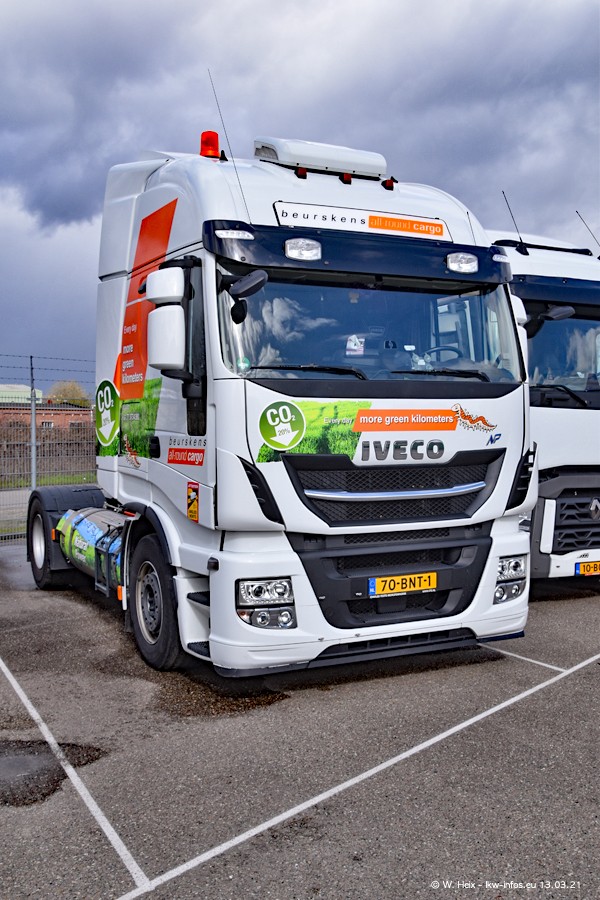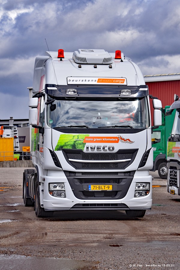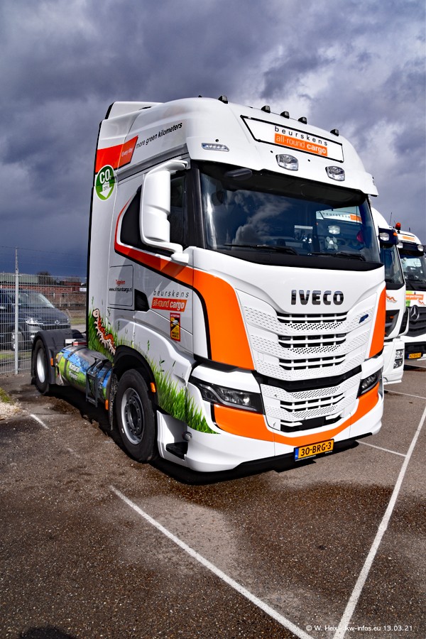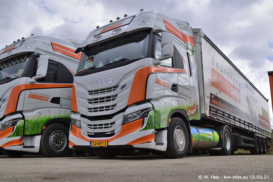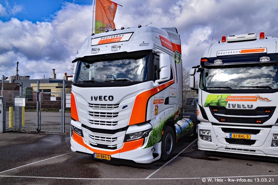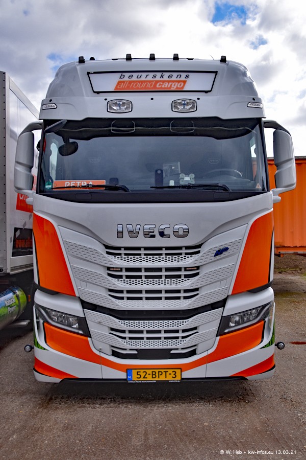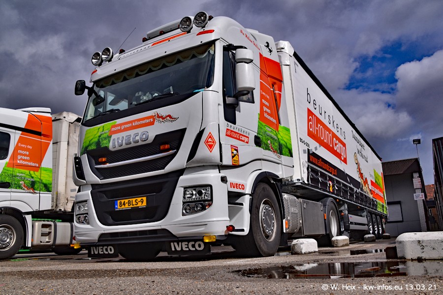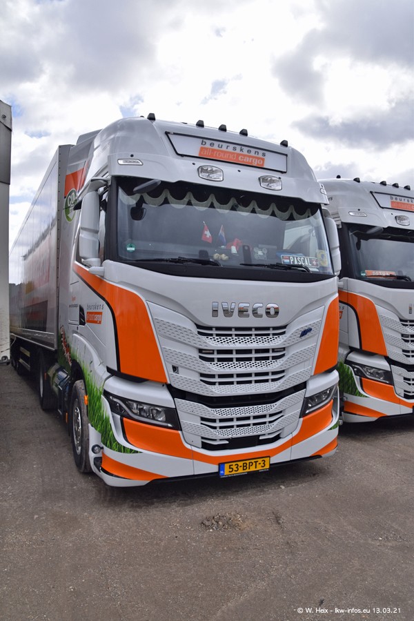 Heute habe ich die Firma/Spedition Beurskens Allround Cargo zum ersten Mal besucht. Und wie der Firmenname schon vermuten lässt: Der Furhpark ist sehr vielseitig und interessant. EInige LKW sind in Kundenfarben lackiert/gestaltet, der größte Teil ist aber weiß. Beurskens hat vor einem halben Jahr die ersten beiden IVECO S-Way NP bekommen und der dritte ist vor einigen Tagen dazu gekommen. Der Fuhrpark ist gemischt und bestehlt aus LKW von DAF, IVECO, Mercedes-Benz und Renault.