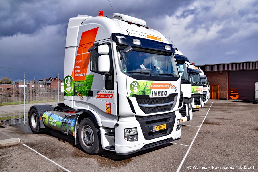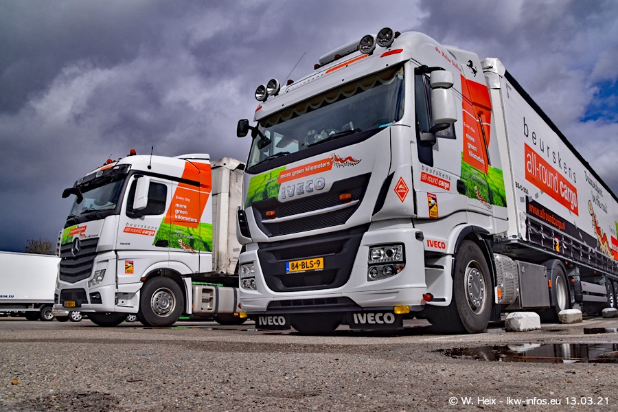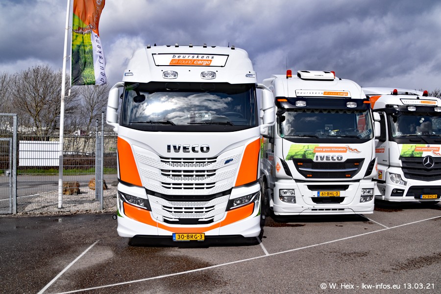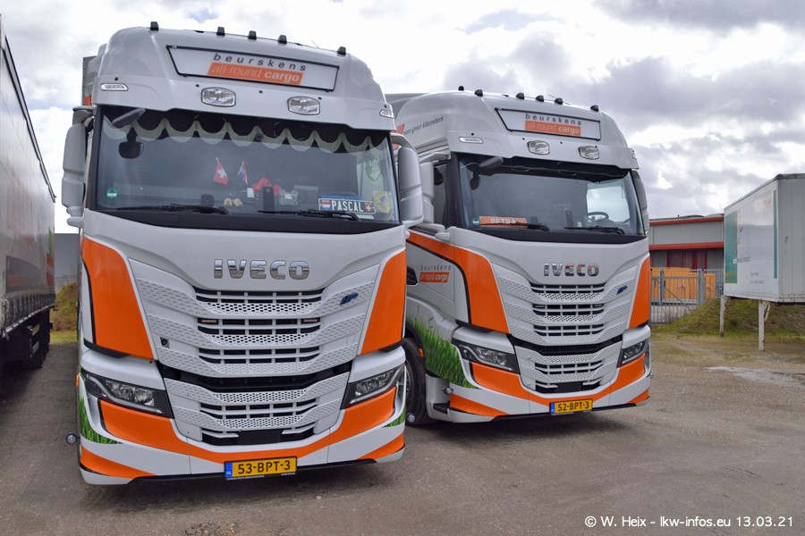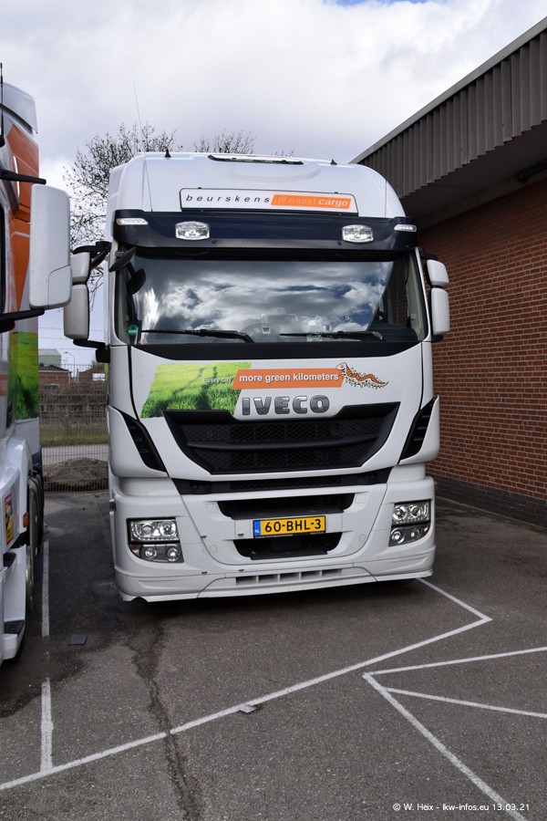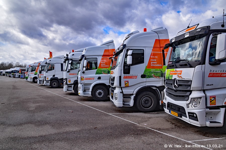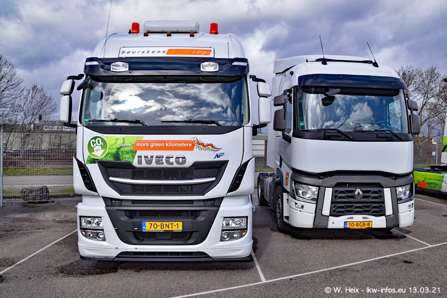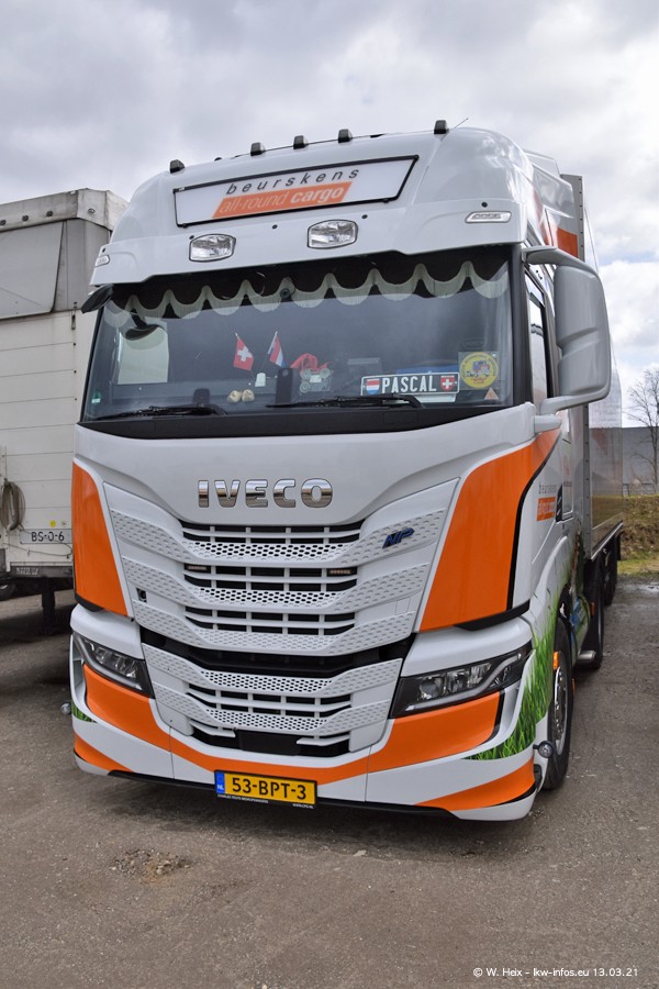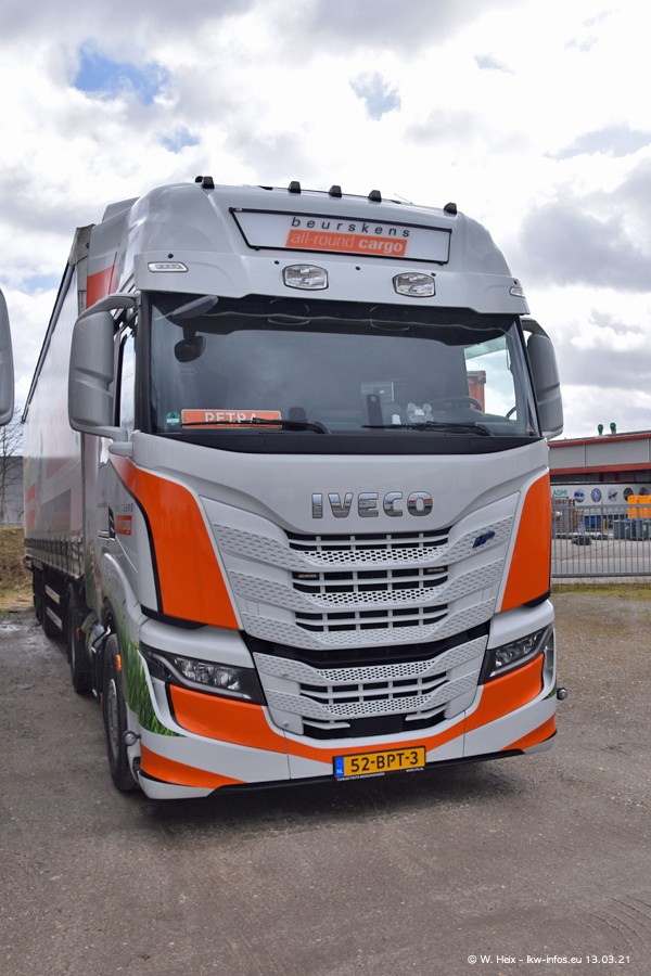 Heute habe ich die Firma/Spedition Beurskens Allround Cargo zum ersten Mal besucht. Und wie der Firmenname schon vermuten lässt: Der Furhpark ist sehr vielseitig und interessant. EInige LKW sind in Kundenfarben lackiert/gestaltet, der größte Teil ist aber weiß. Beurskens hat vor einem halben Jahr die ersten beiden IVECO S-Way NP bekommen und der dritte ist vor einigen Tagen dazu gekommen. Der Fuhrpark ist gemischt und bestehlt aus LKW von DAF, IVECO, Mercedes-Benz und Renault.