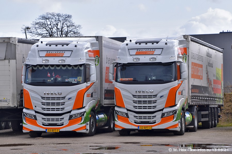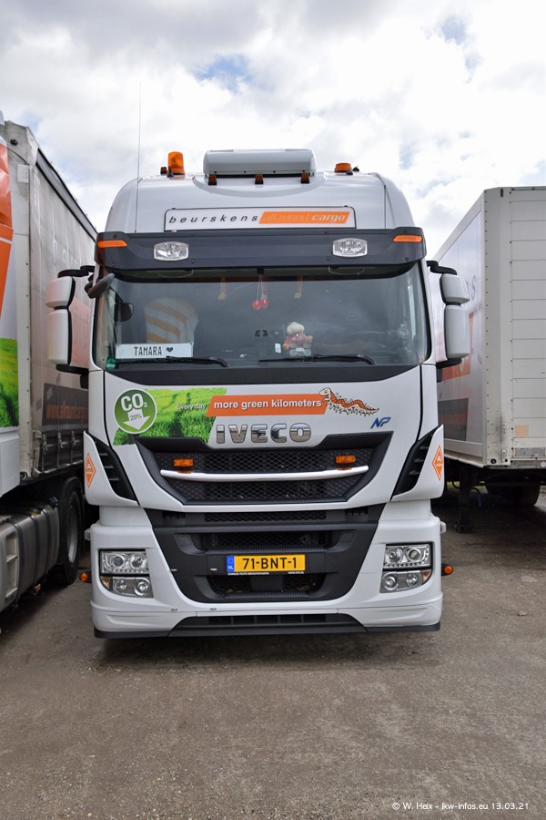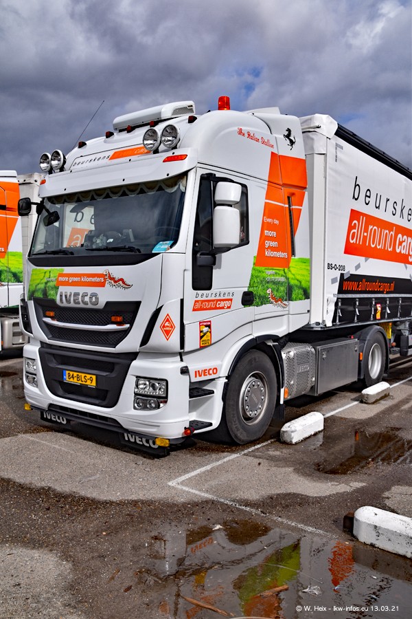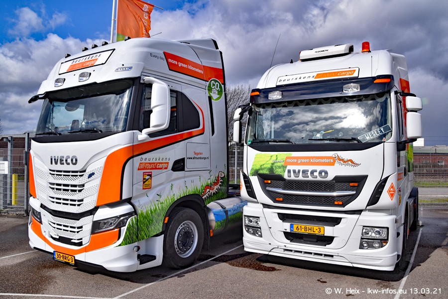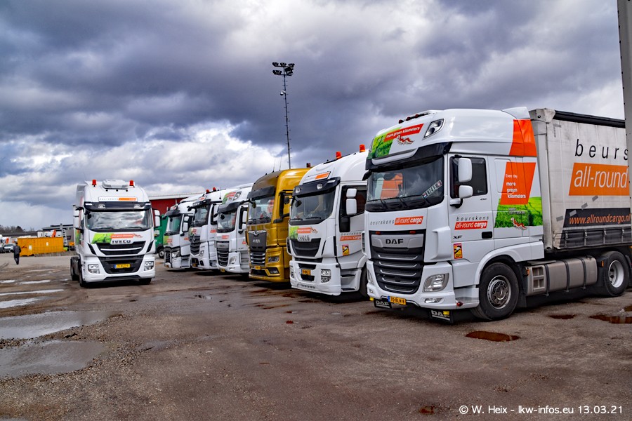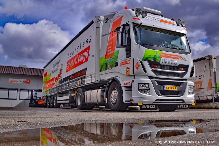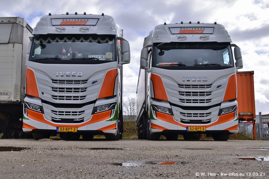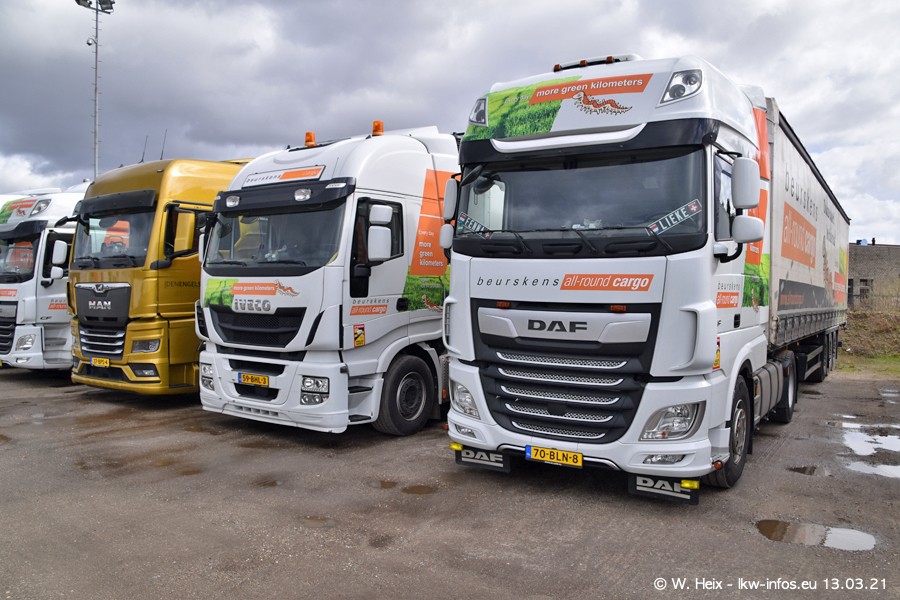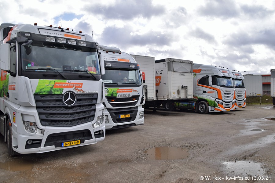 Heute habe ich die Firma/Spedition Beurskens Allround Cargo zum ersten Mal besucht. Und wie der Firmenname schon vermuten lässt: Der Furhpark ist sehr vielseitig und interessant. EInige LKW sind in Kundenfarben lackiert/gestaltet, der größte Teil ist aber weiß. Beurskens hat vor einem halben Jahr die ersten beiden IVECO S-Way NP bekommen und der dritte ist vor einigen Tagen dazu gekommen. Der Fuhrpark ist gemischt und bestehlt aus LKW von DAF, IVECO, Mercedes-Benz und Renault.