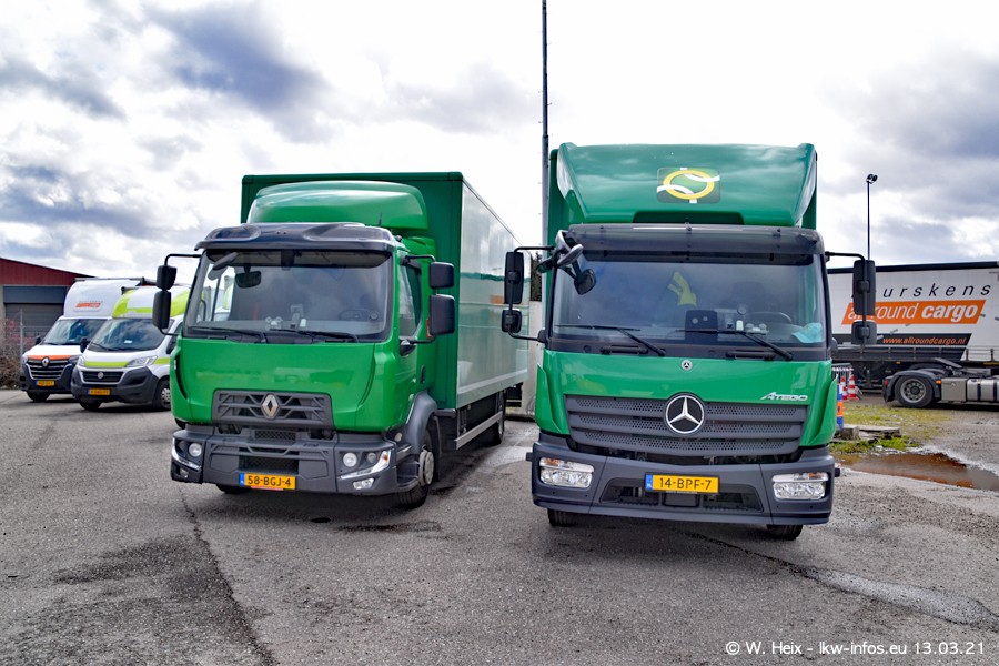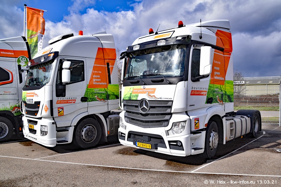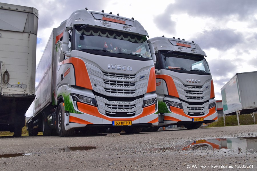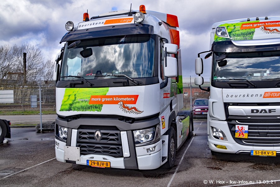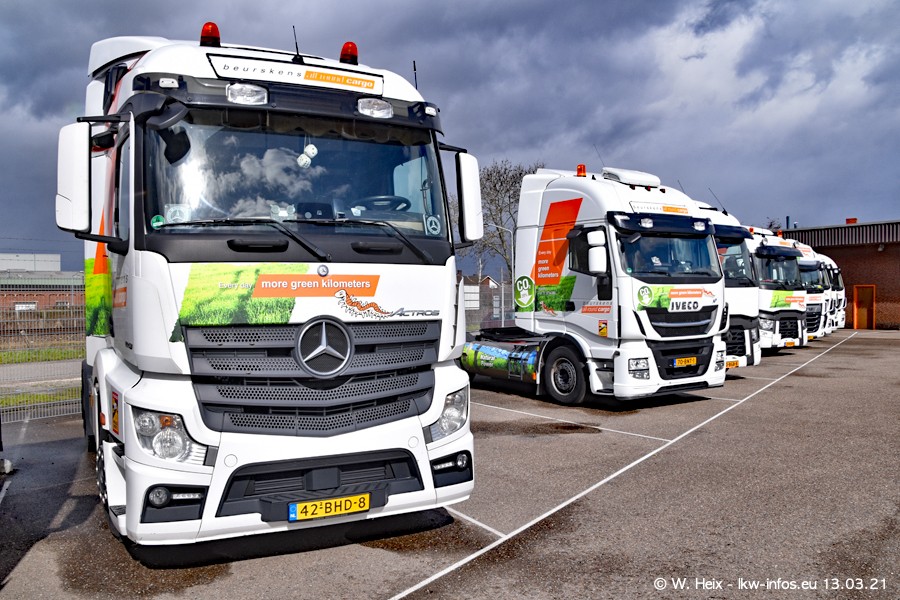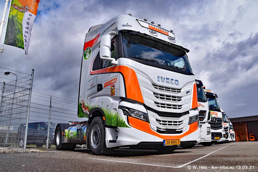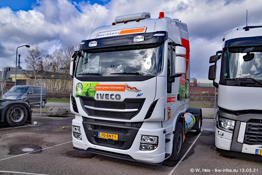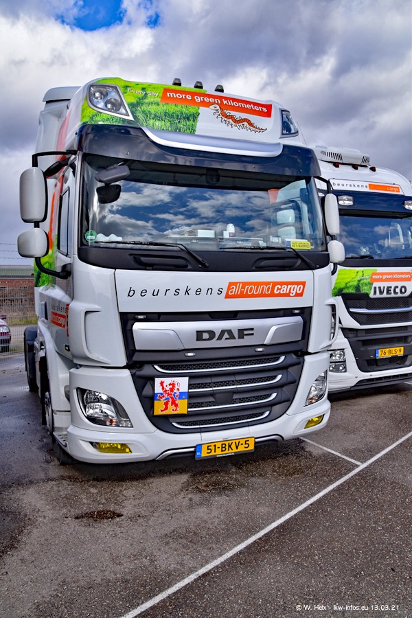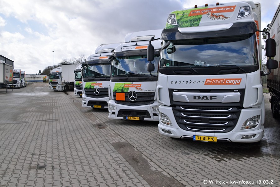 Heute habe ich die Firma/Spedition Beurskens Allround Cargo zum ersten Mal besucht. Und wie der Firmenname schon vermuten lässt: Der Furhpark ist sehr vielseitig und interessant. EInige LKW sind in Kundenfarben lackiert/gestaltet, der größte Teil ist aber weiß. Beurskens hat vor einem halben Jahr die ersten beiden IVECO S-Way NP bekommen und der dritte ist vor einigen Tagen dazu gekommen. Der Fuhrpark ist gemischt und bestehlt aus LKW von DAF, IVECO, Mercedes-Benz und Renault.