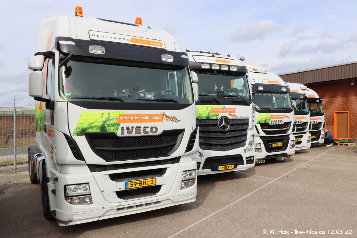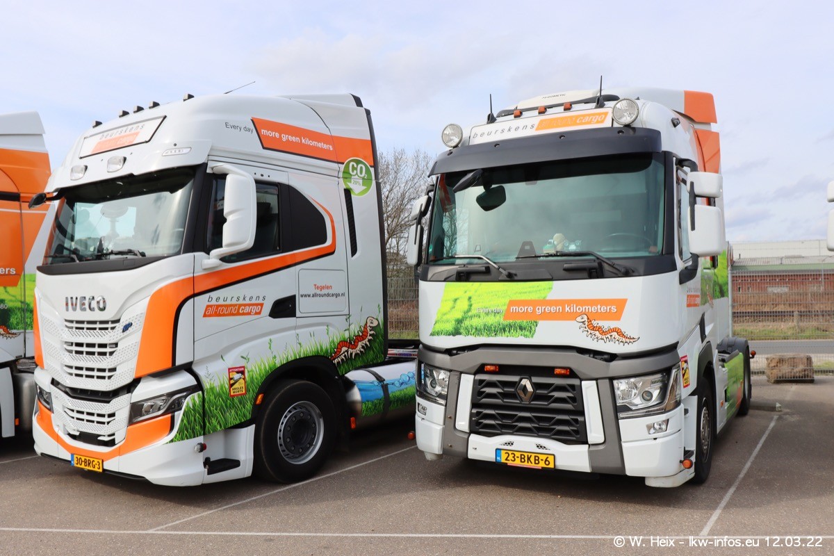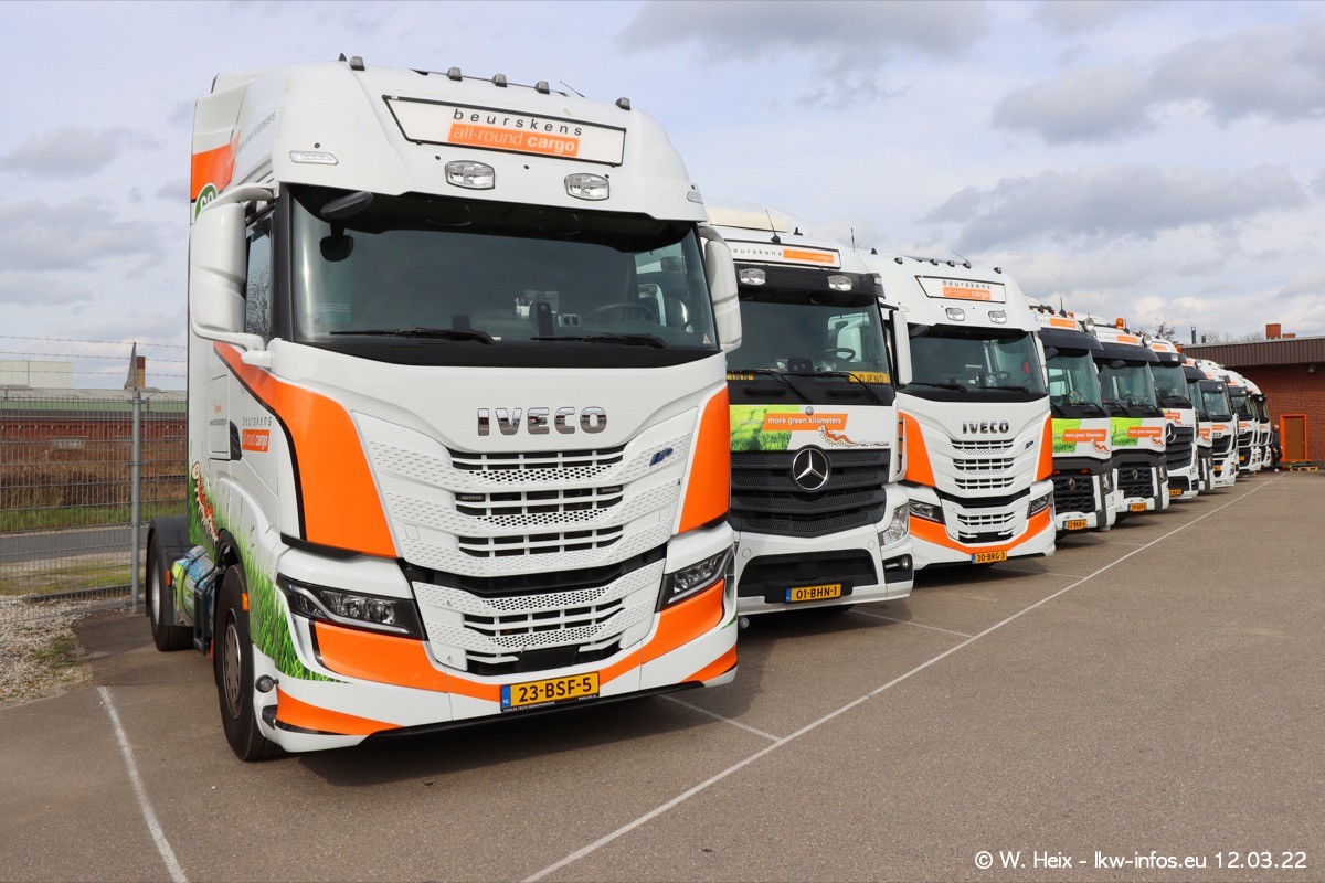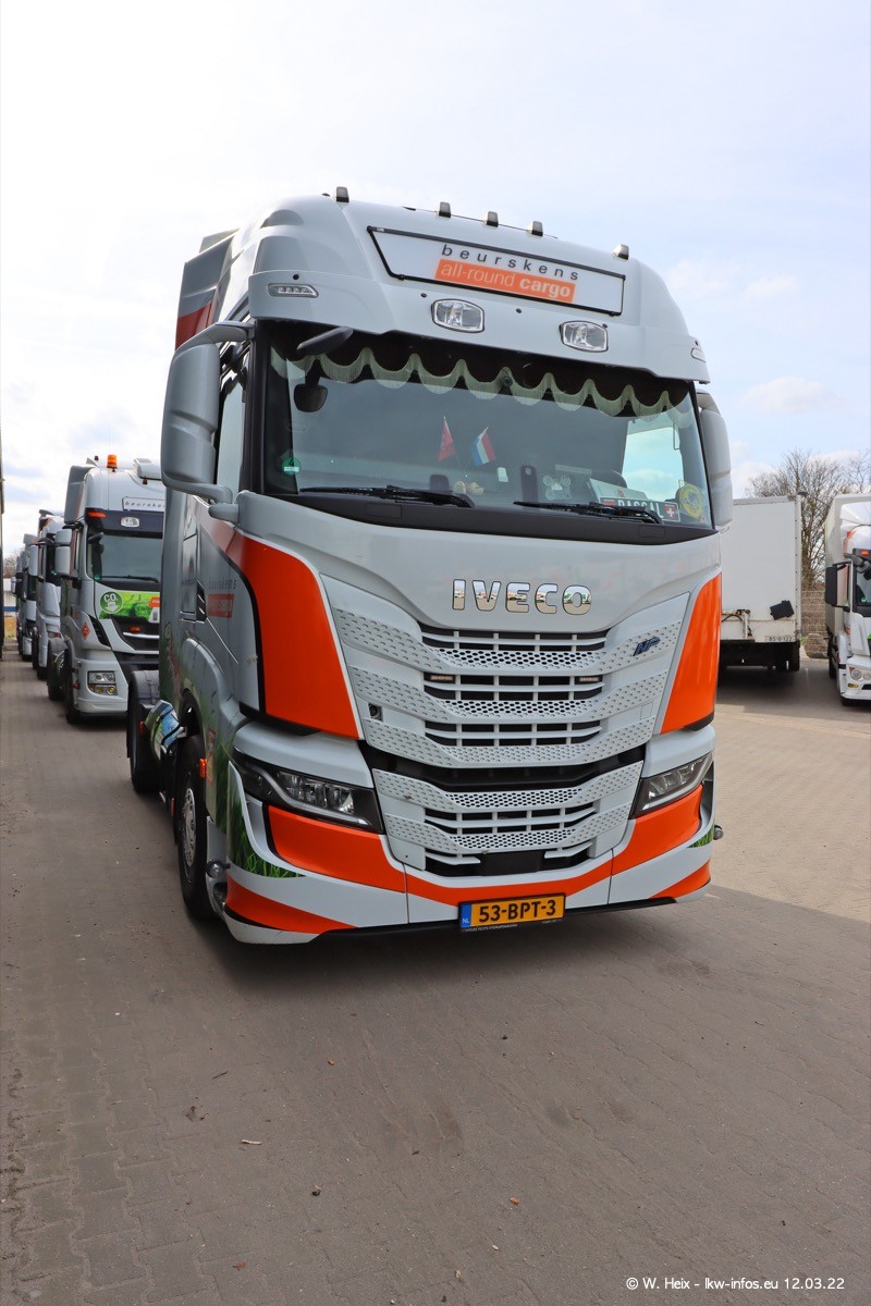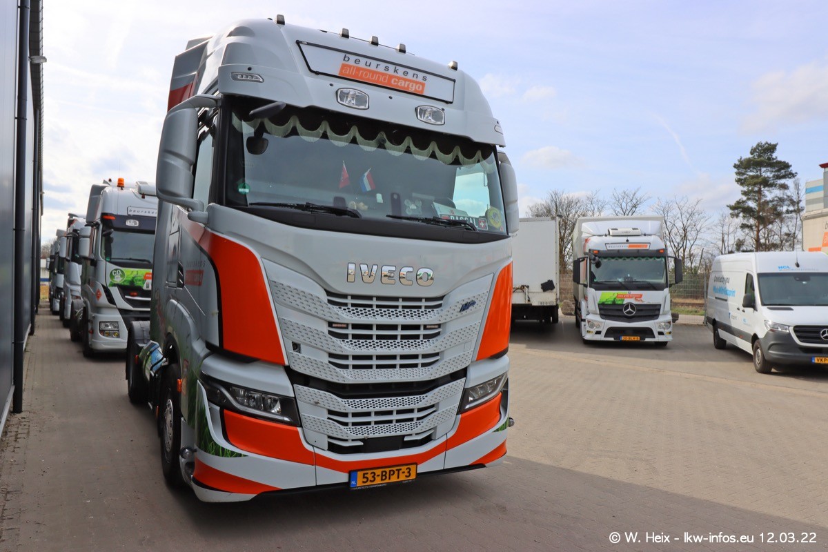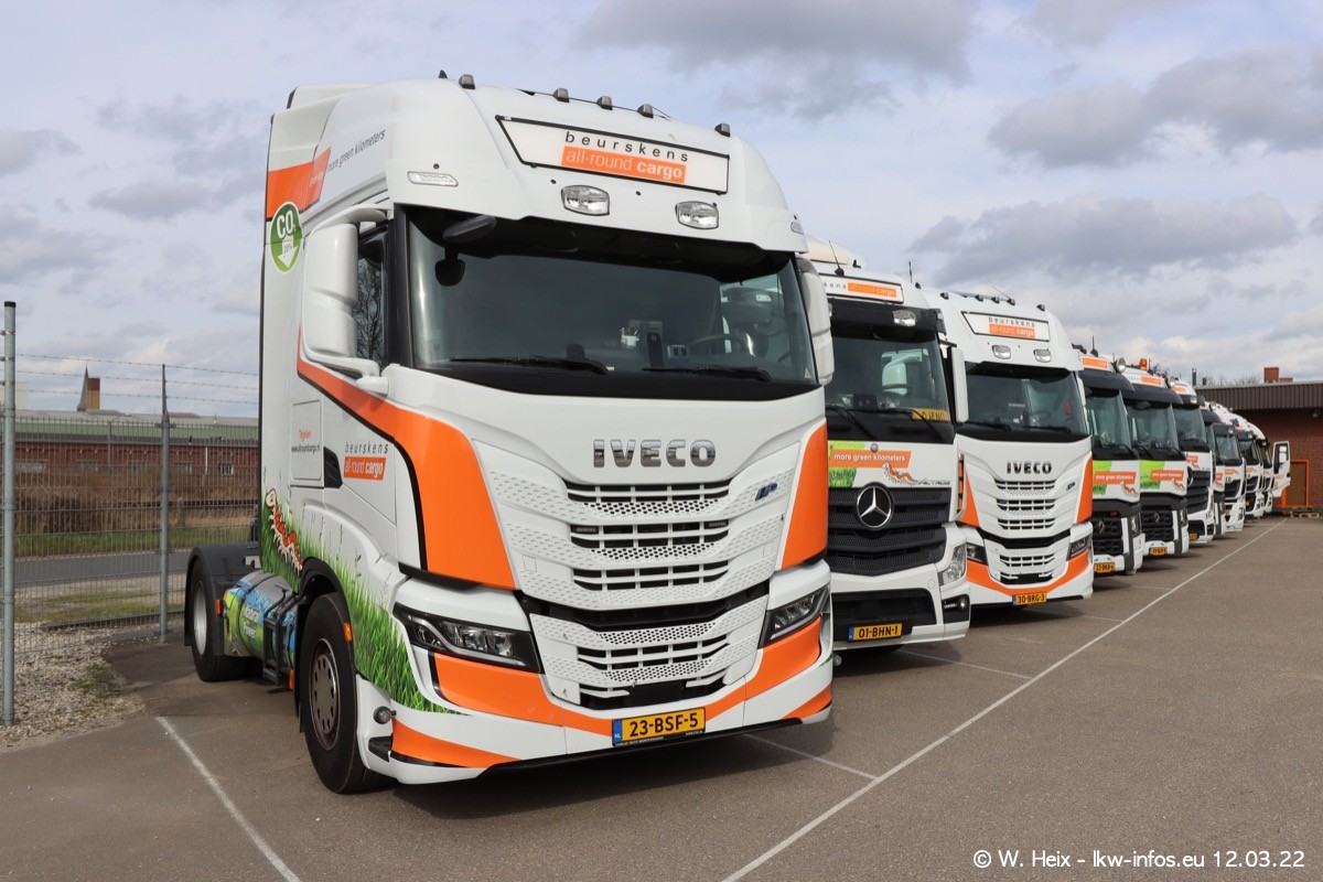 Fast auf den Tag genau konnte ich heute zum zweiten Mal die Firma Beurskens Allround Cargo in Tegelen (NL) besuchen. Aufgefallen sind mir zwei neue Renault (aus 2021) und in den letzten Wochen sind drei weitere IVECO S-Way NP dazu gekommen, der letzte erst vor einigen Tagen. Alle IVECO S-Way waren zuhause sowie fast der komplette Fuhrpark, den ich auf rund 60 LKW schätze (genaue Infos habe ich nicht).