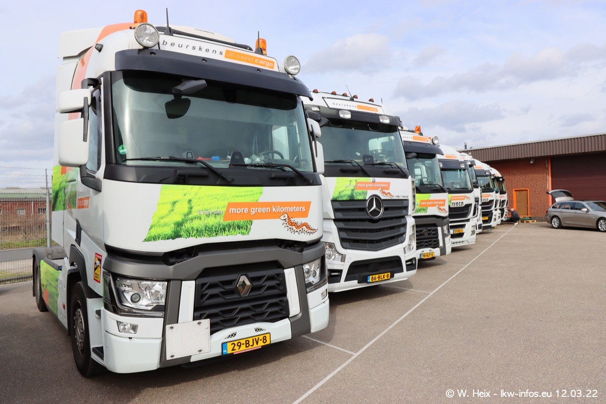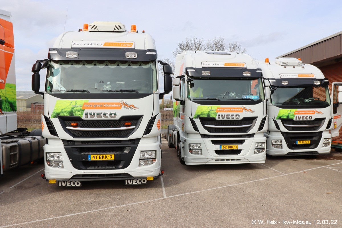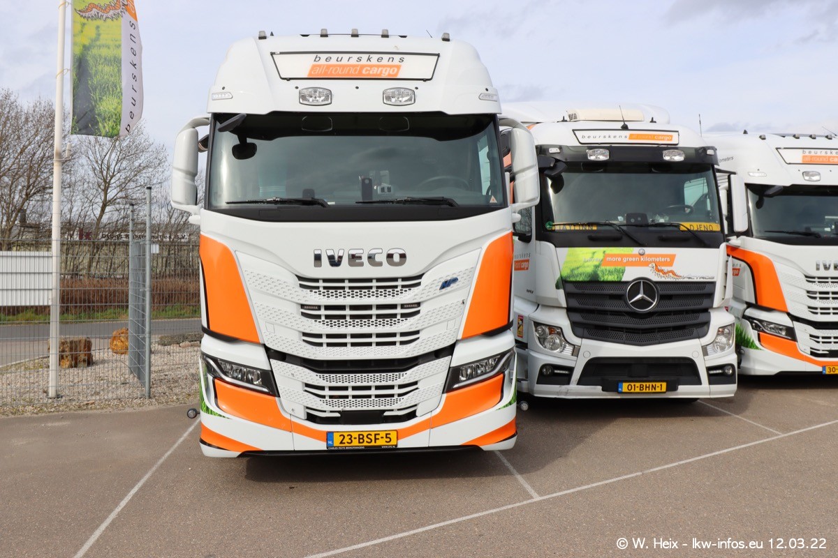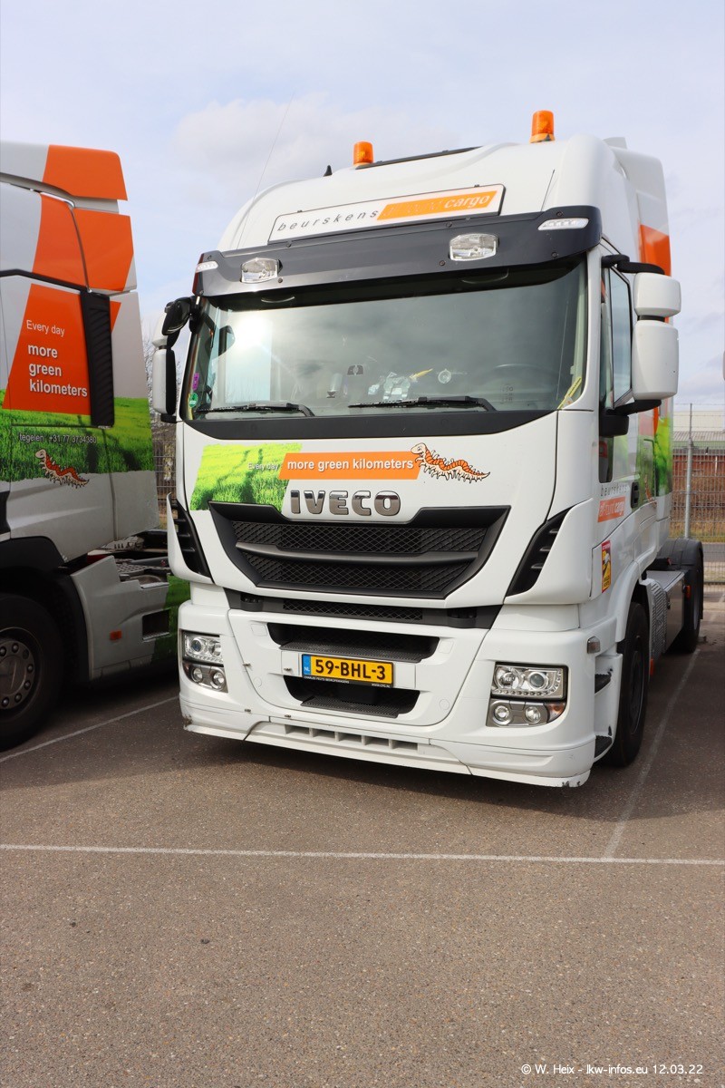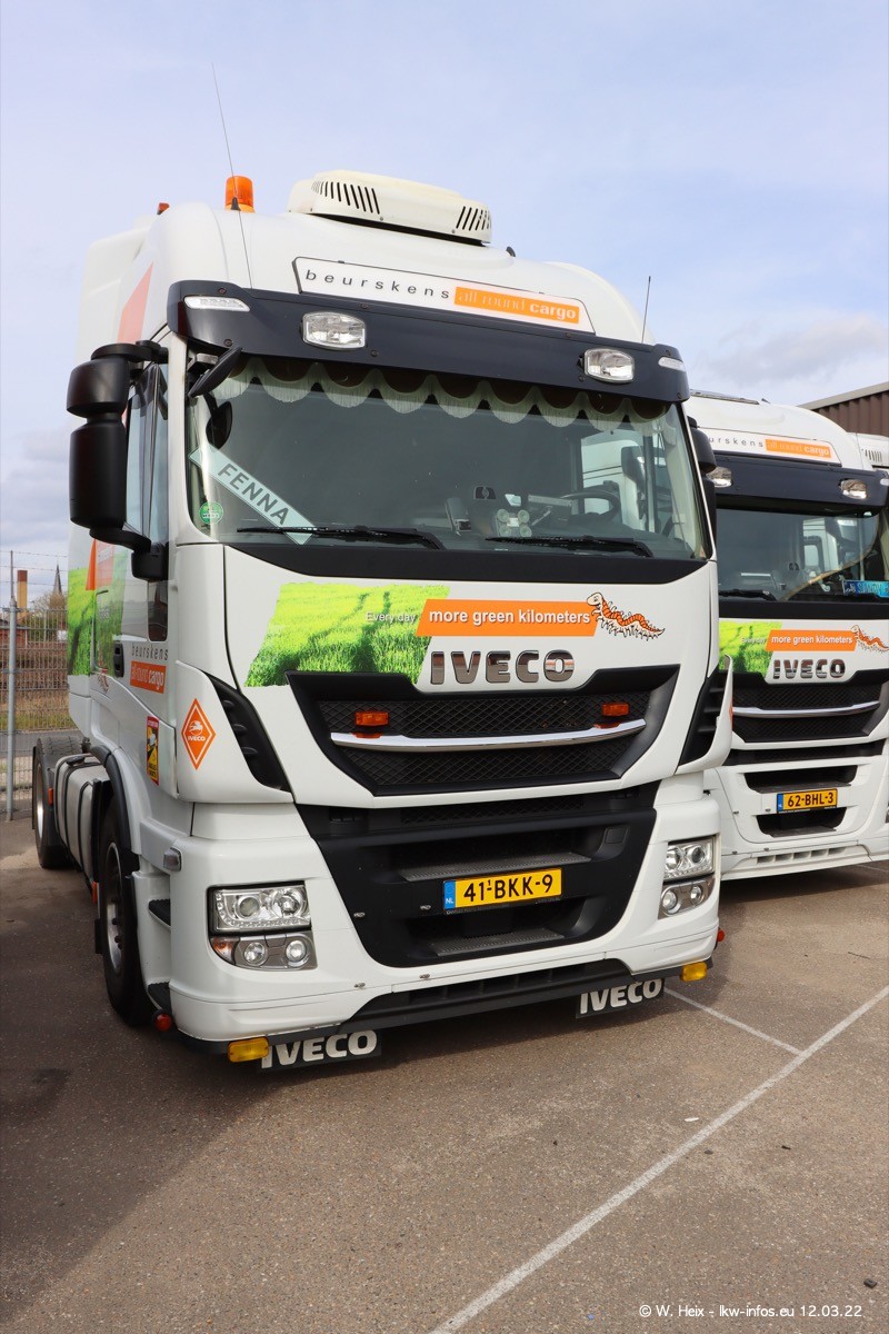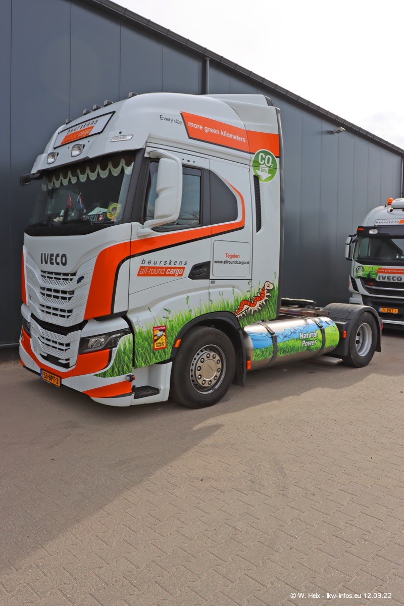 Fast auf den Tag genau konnte ich heute zum zweiten Mal die Firma Beurskens Allround Cargo in Tegelen (NL) besuchen. Aufgefallen sind mir zwei neue Renault (aus 2021) und in den letzten Wochen sind drei weitere IVECO S-Way NP dazu gekommen, der letzte erst vor einigen Tagen. Alle IVECO S-Way waren zuhause sowie fast der komplette Fuhrpark, den ich auf rund 60 LKW schätze (genaue Infos habe ich nicht).