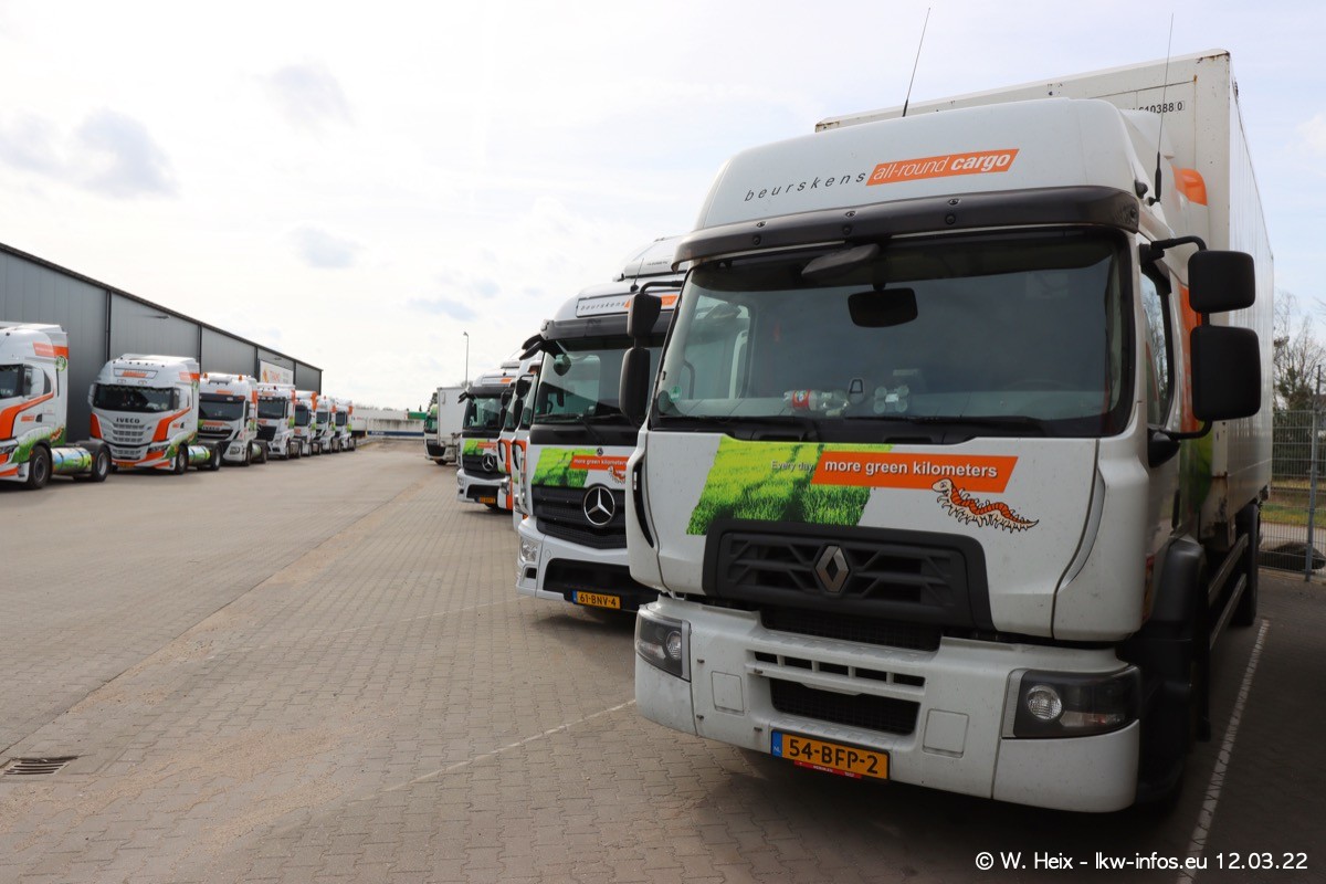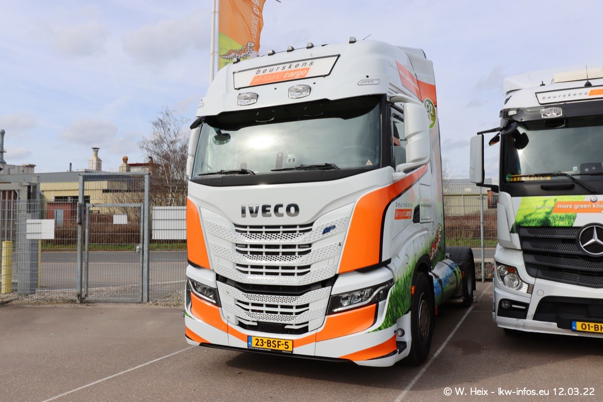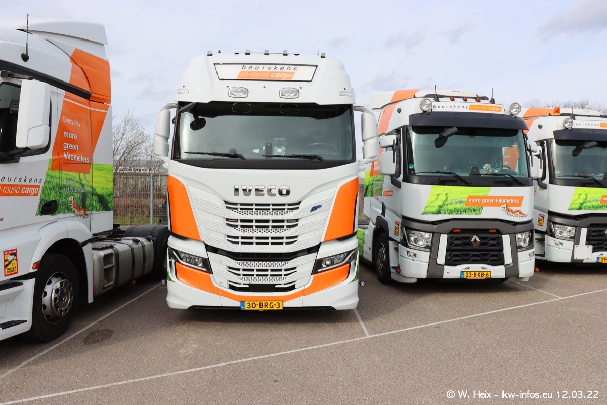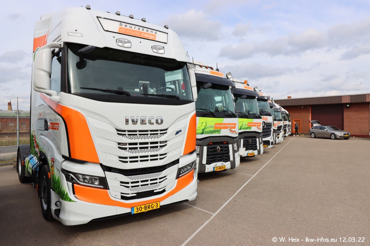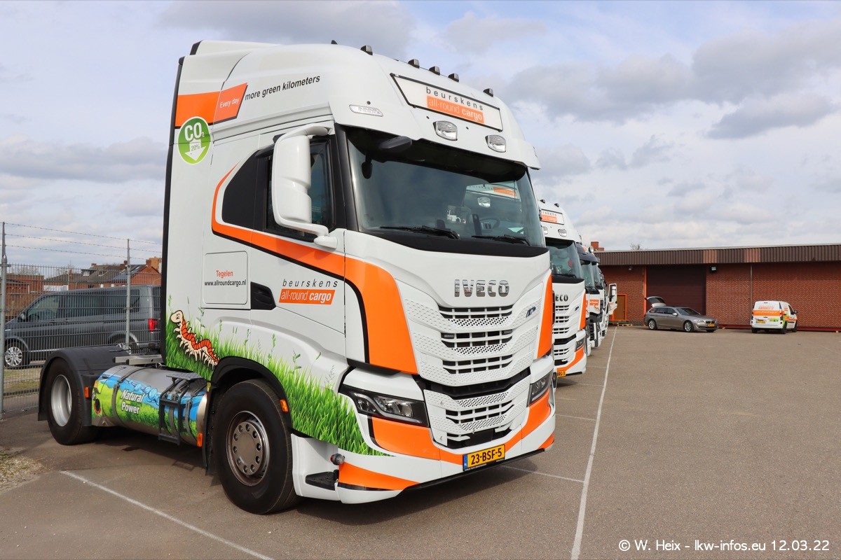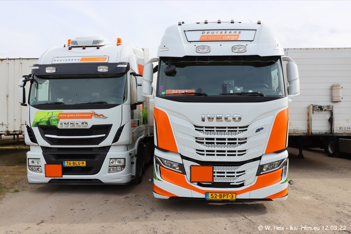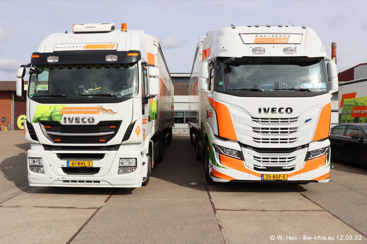 Fast auf den Tag genau konnte ich heute zum zweiten Mal die Firma Beurskens Allround Cargo in Tegelen (NL) besuchen. Aufgefallen sind mir zwei neue Renault (aus 2021) und in den letzten Wochen sind drei weitere IVECO S-Way NP dazu gekommen, der letzte erst vor einigen Tagen. Alle IVECO S-Way waren zuhause sowie fast der komplette Fuhrpark, den ich auf rund 60 LKW schätze (genaue Infos habe ich nicht).