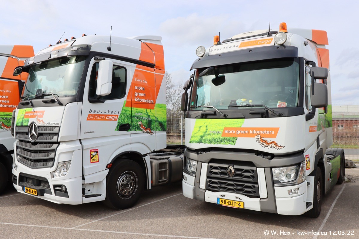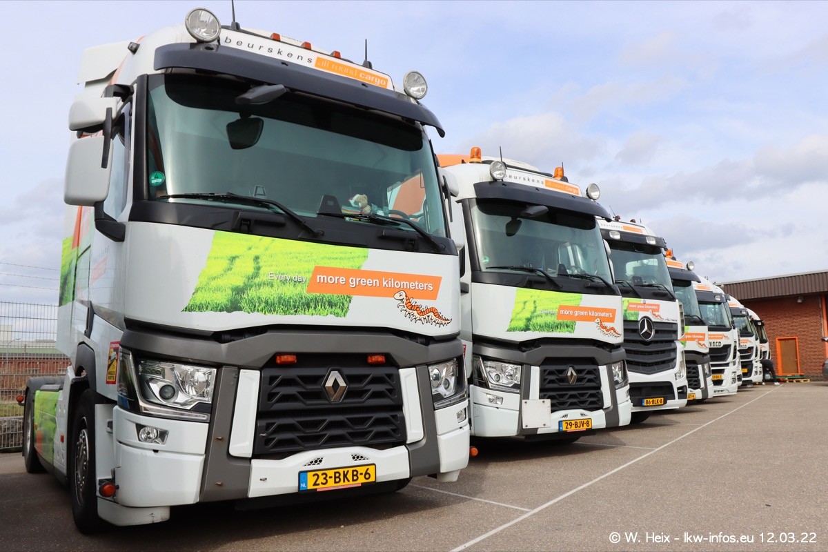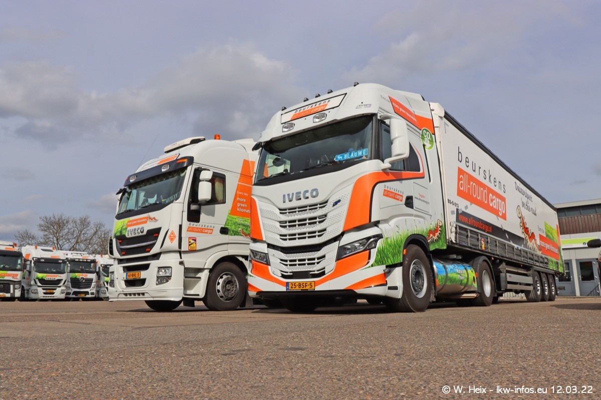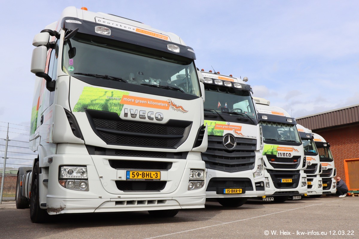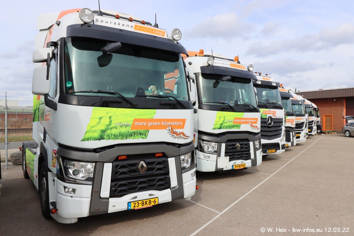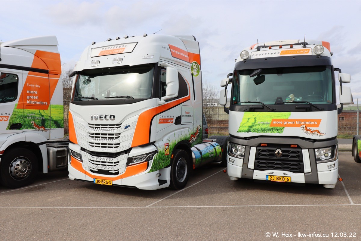 Fast auf den Tag genau konnte ich heute zum zweiten Mal die Firma Beurskens Allround Cargo in Tegelen (NL) besuchen. Aufgefallen sind mir zwei neue Renault (aus 2021) und in den letzten Wochen sind drei weitere IVECO S-Way NP dazu gekommen, der letzte erst vor einigen Tagen. Alle IVECO S-Way waren zuhause sowie fast der komplette Fuhrpark, den ich auf rund 60 LKW schätze (genaue Infos habe ich nicht).