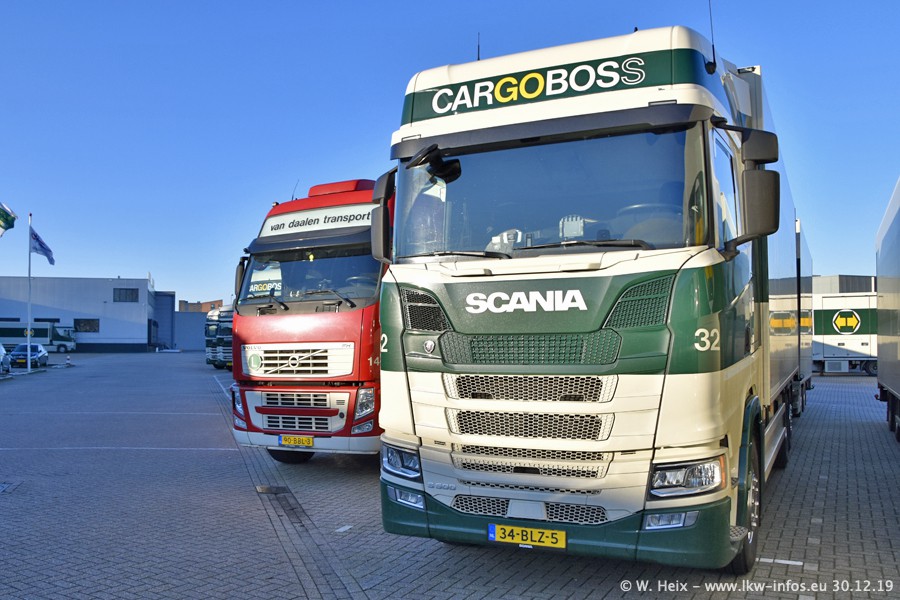Die Firma Cargoboss bzw. van Daalen (gehören beide zusammen und haben den gleichen Inhaber/Geschäftsführer) waren meine Stationen 8 und 9 der "Weihnachts-Fototour 2019". Und es waren auch viele LKW zuhause auf dem Gelände. Anfang 2020 bekommt Cargoboss 10 weitere neue SCANIA NextGen und van Daalen wieder 10 VOLVO FH 4 Euro 6. Der Fuhrpark ist einer der modernsten, die ich in den Niederlanden kenne.