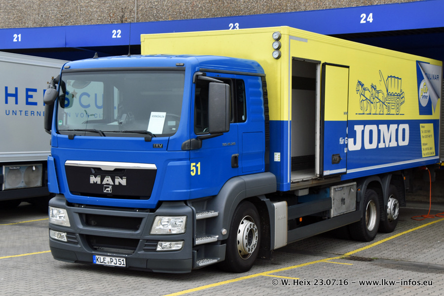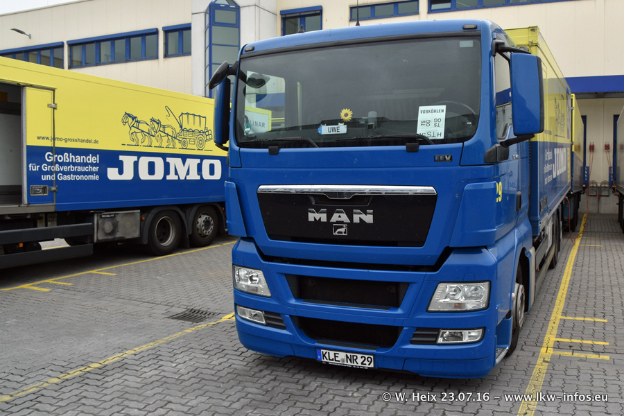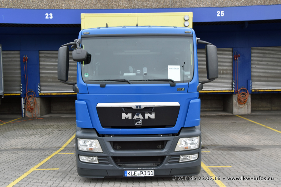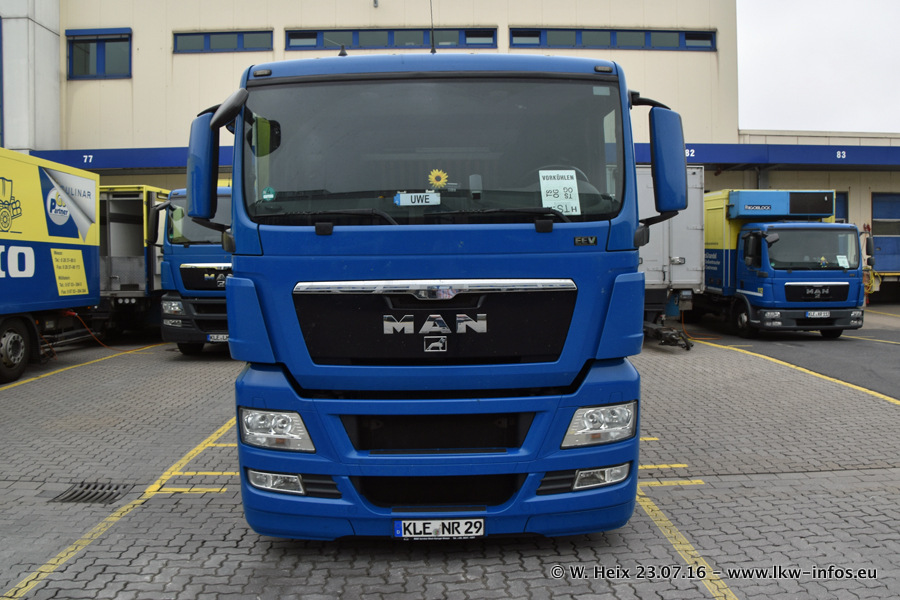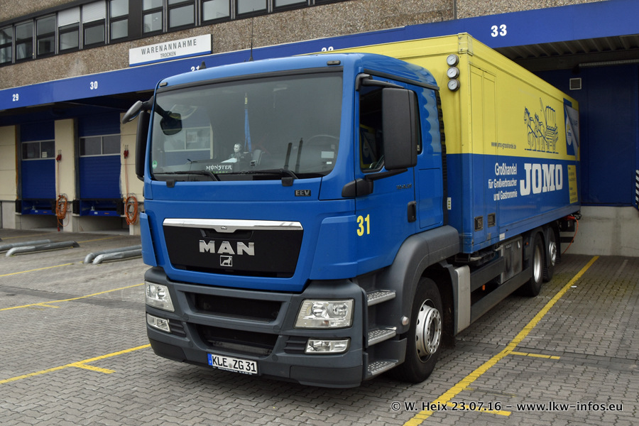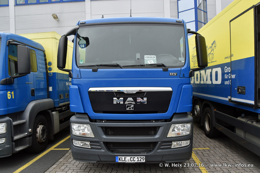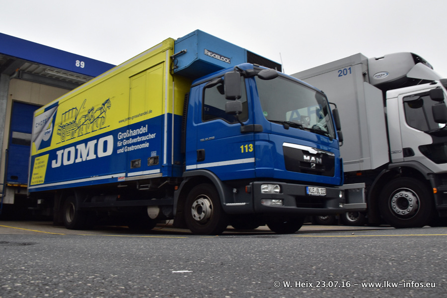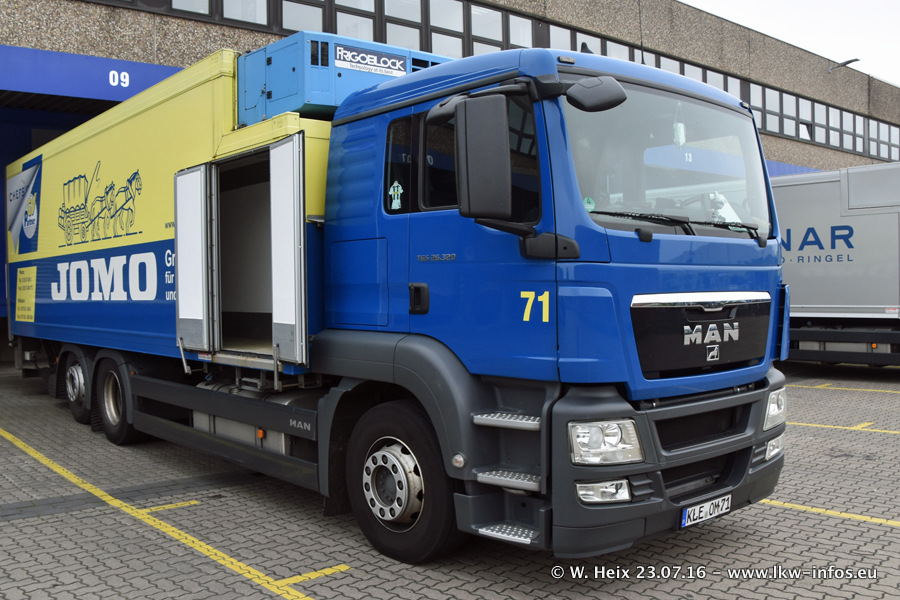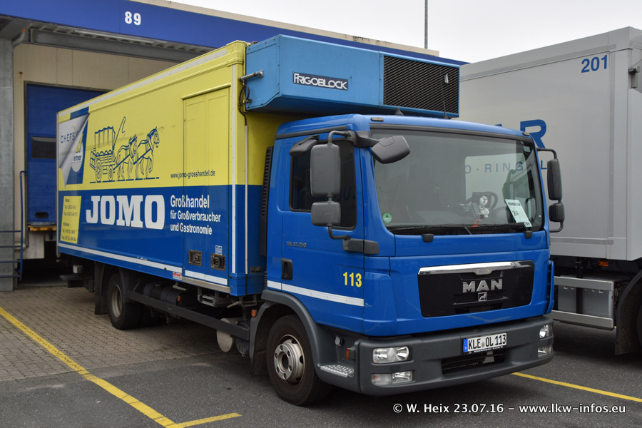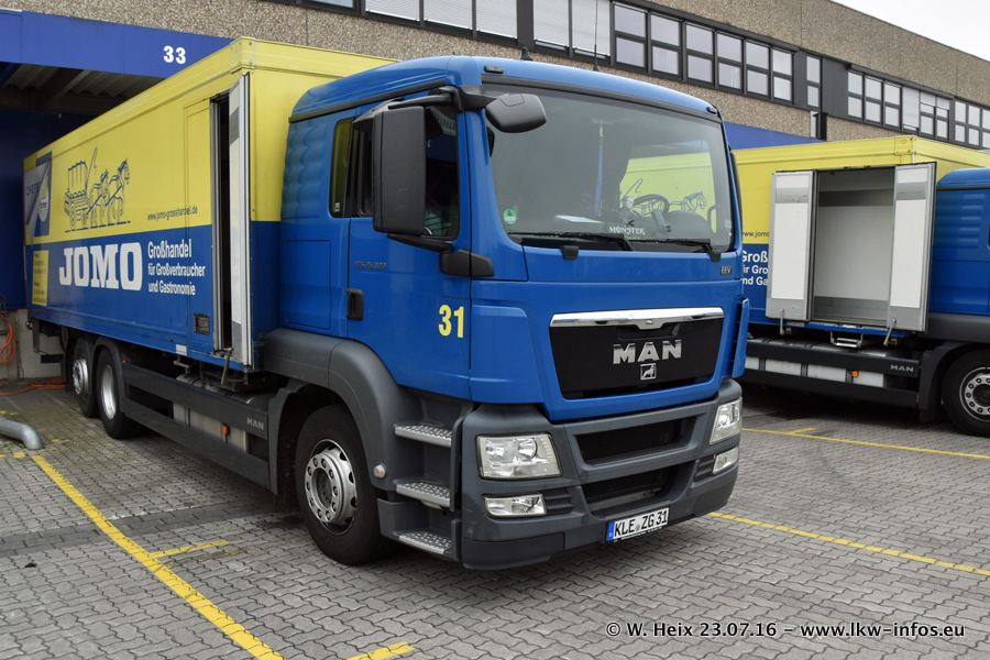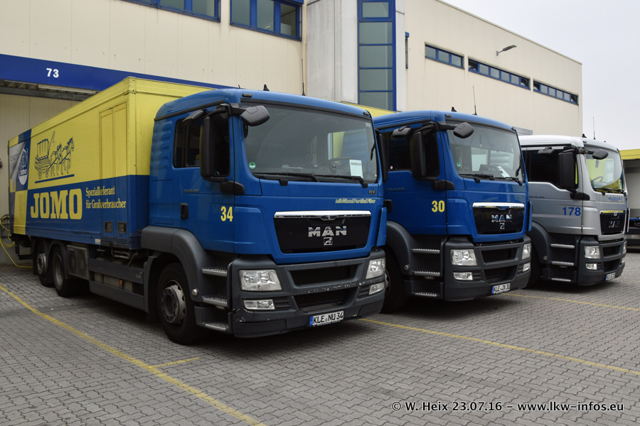 Inzwischen besteht der Fuhrpark rund zur Hälfte aus LKW im neuen Design "Chefs Culinar". Bei meinem letzten Besuch im April 2014 waren die ersten rund 10-12 LKW im neuen Design im Fuhrpark. Seit ca. 3 Monaten gibt es neben den ganzen LKW von MAN auch die ersten Volvo. Das sind Fahrzeuge der Baureihen FE und FM. Bei den kleinen Kühlahrzeugen unter 7,49 t, die von Iveco sind, gibt es inzwischen den ersten Daily der aktuellen Baureihe. Von den rund 120 Fahrzeugen am Standort Weeze war der größte Teil "zuhause".