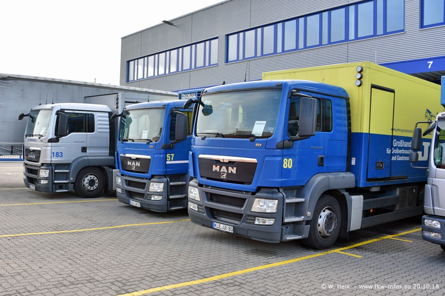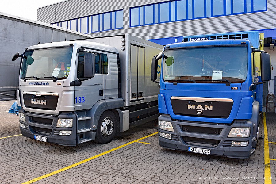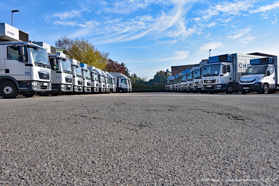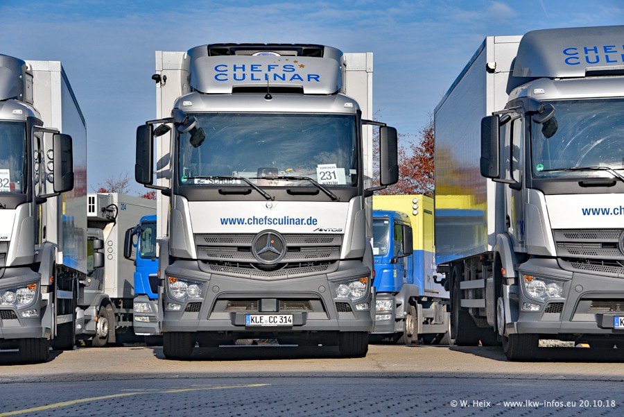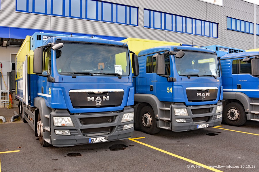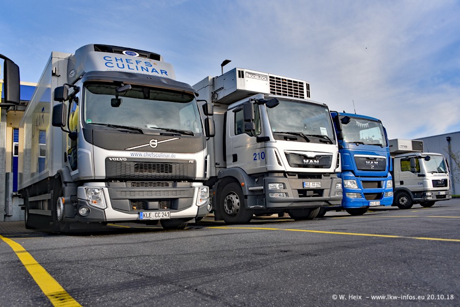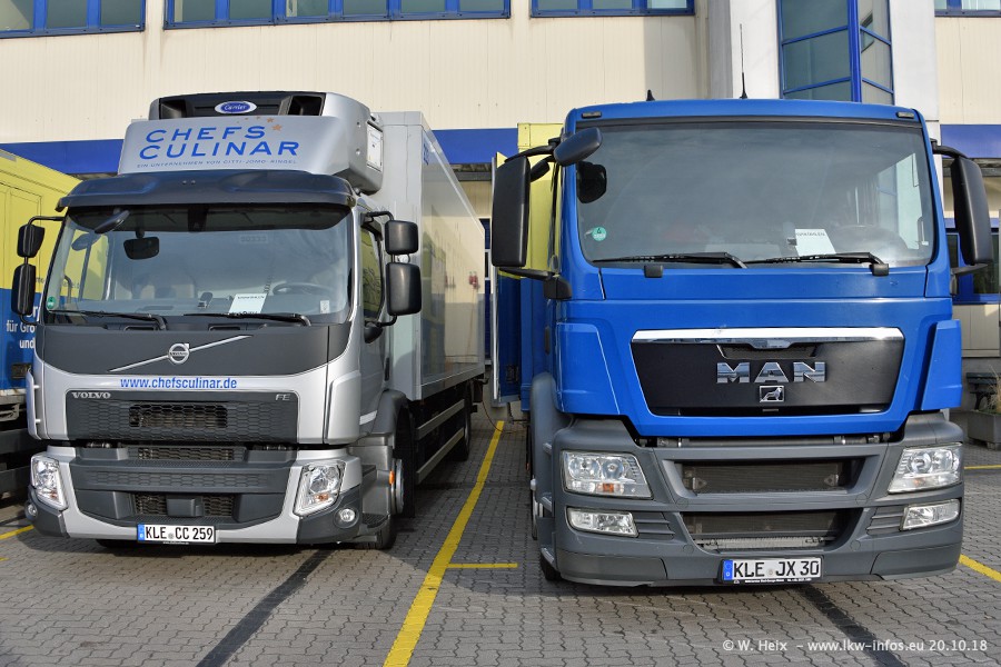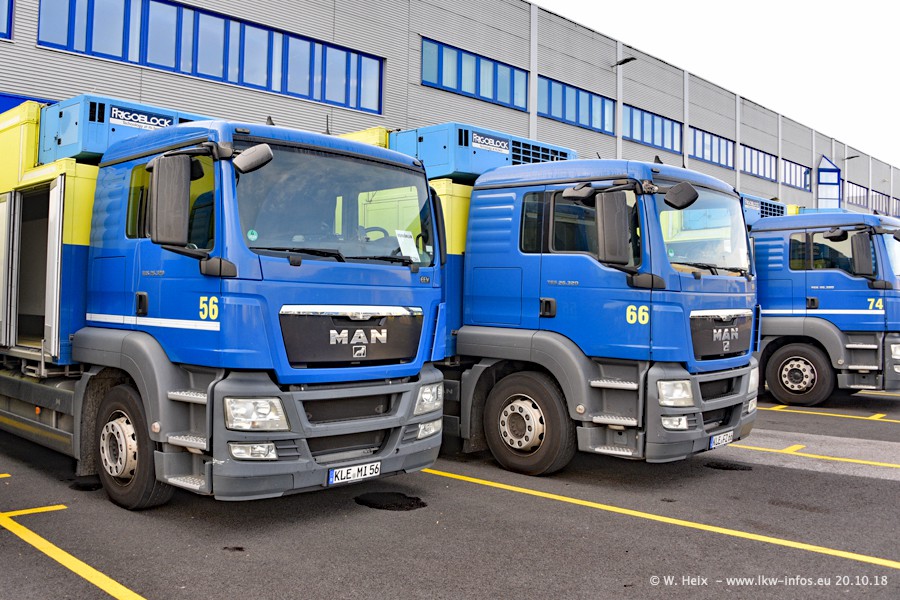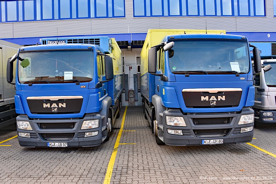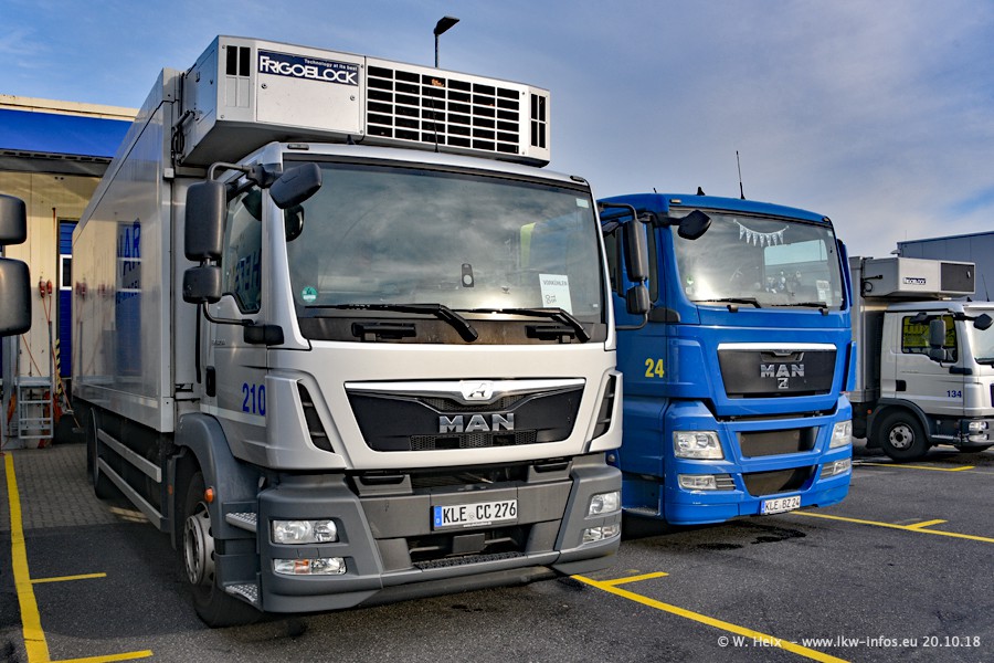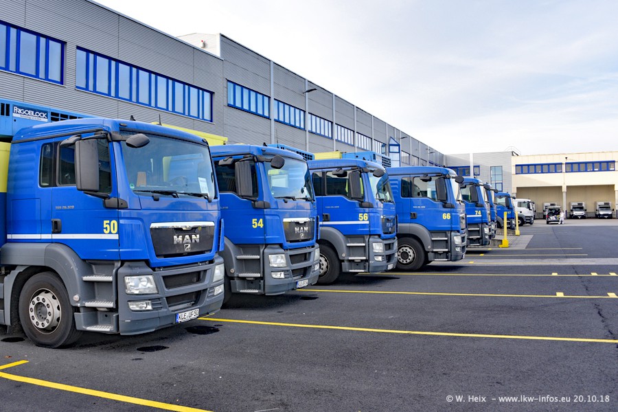 Seit meinem letzten Besuch im Juli 2016 sind schon wieder über zwei Jahre vergangen. Der Fuhrpark in Weeze von 120 auf ca. 140 Fahrzeuge gewachsen. Mittlerweile sind rund 70% der Fahrzeuge im neuen silbernen Design. Nachdem im Jahr 2016 die ersten LKW von VOLVO in den Fuhrpark gekommen sind, wurden in diesem Jahr 10 Mercedes-Benz Antos gekauft. Diese LKW sind erst seit einigen Monaten im Fuhrpark, also so gut wie neu. Im kommenden Jahr sollen weitere LKW von Mercedes-Benz den Fuhrpark modernisieren. Heute waren ca. 120 der 140 LKW "zuhause". Von den neuen Mercedes-Benz Antos waren 6 da. In einem kleinen Fotoshooting konnte ich diese neuen Fahrzeuge dann auch alle nebeneinander fotografieren. Neu sind im Bereich unter 7,49 t sind auch einige IVECO Daily der aktuellen Baureihe.