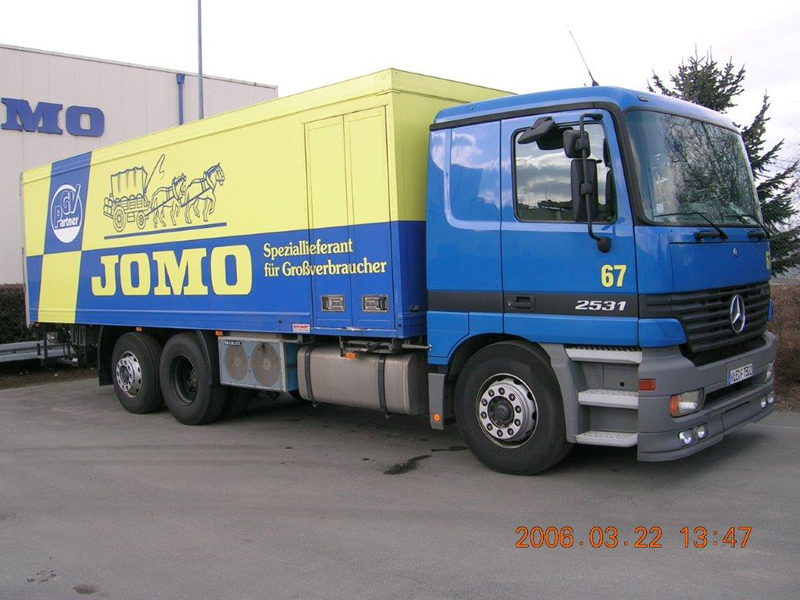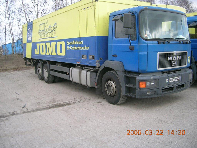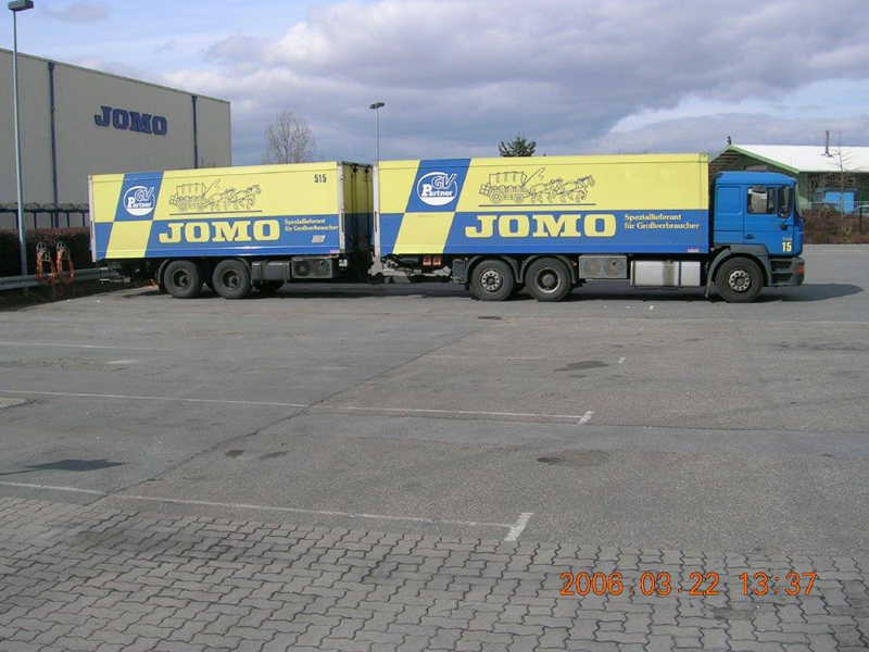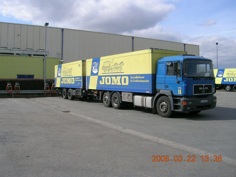 Die Firma CHEFS CULINAR West hieß bis vor einigen Jahren JOMO. Das waren die LKW im alt bekannten blau-gelben Design. Die hier gezeigten Bilder sind aus dem Archiv eines Mitarbeiters von Jomo bzw. jetzt CHEFS CULINAR West. Wie alt die Schwarzweiß-Aufnahmen sind, und wer diese damals gemacht hat, ist nicht bekannt. Ein Teil der Farbfotos ist aus dem Jahr 2006. Ich denke es lohnt sich, auch diese Bilder aus dem Archiv zu zeigen.