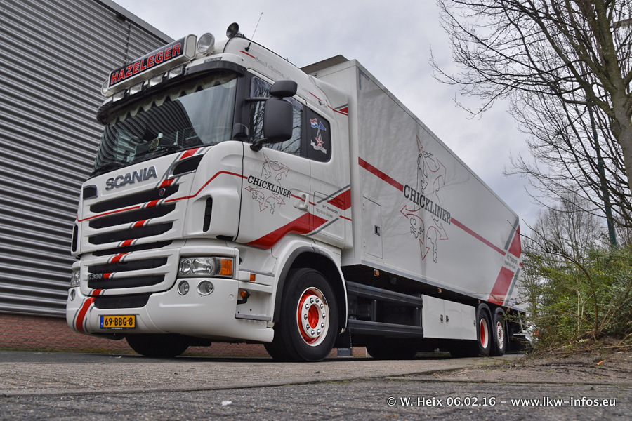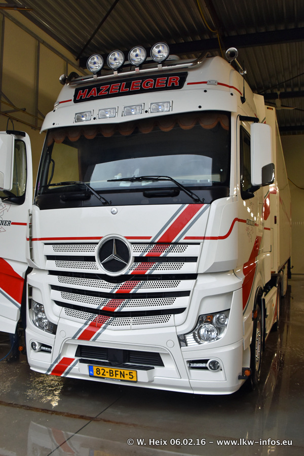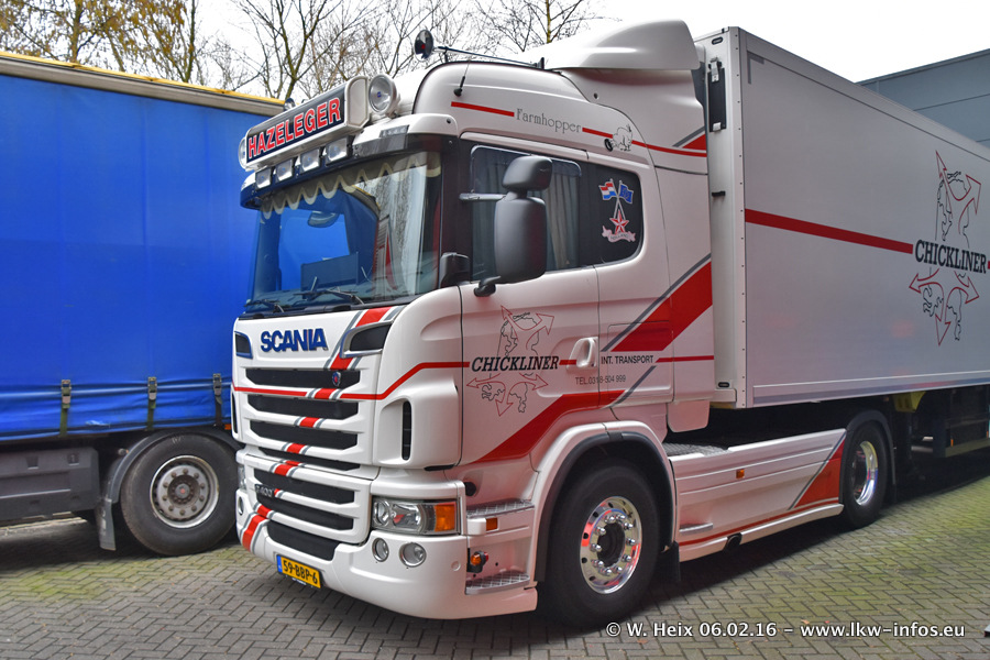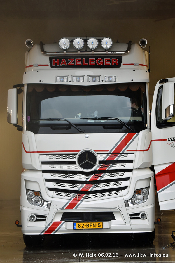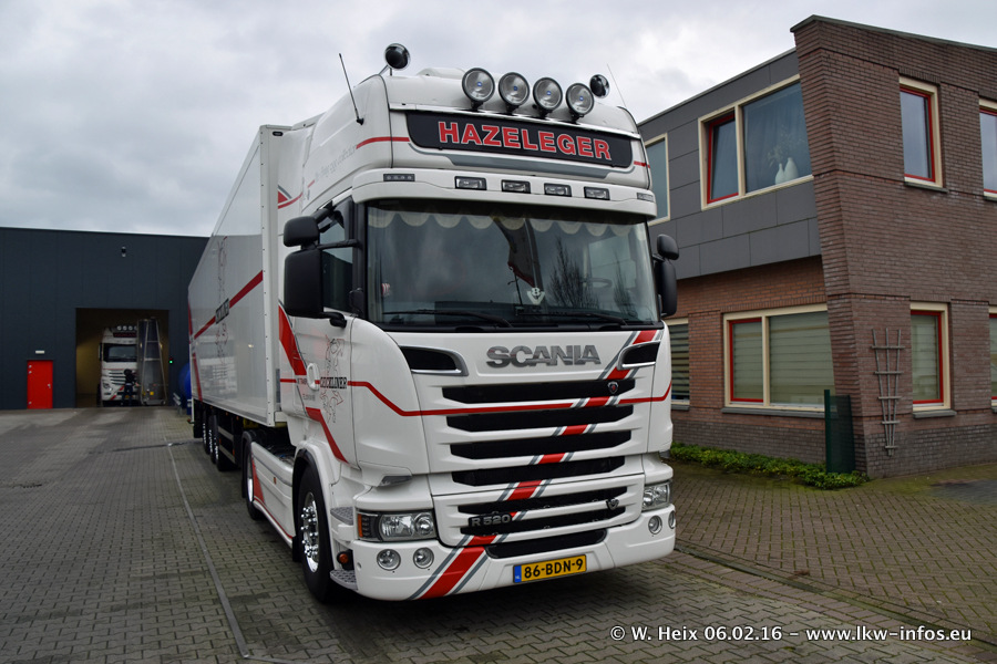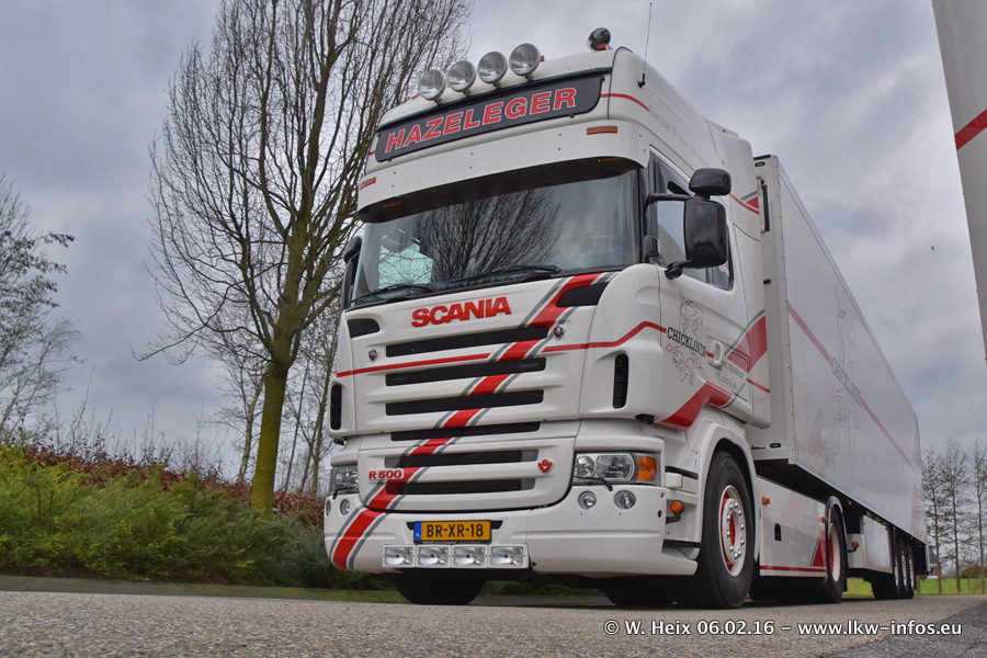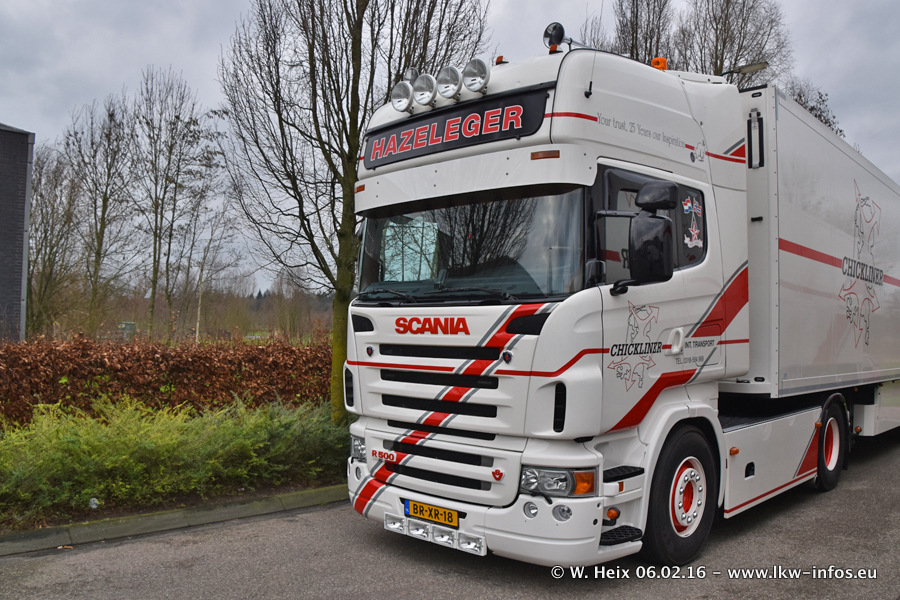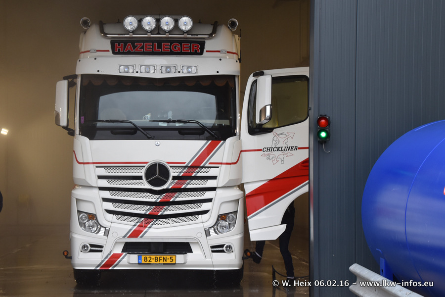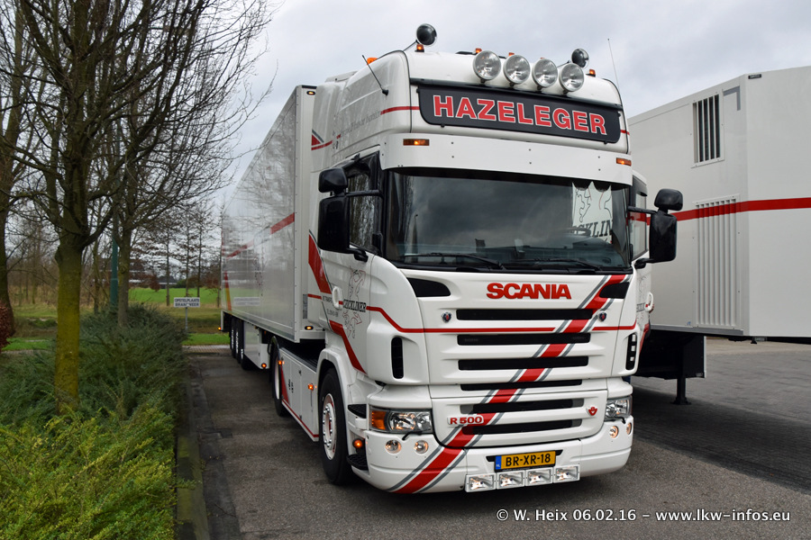 Der Besuch war eigentlich nicht geplant, da ich erst vor 4 Wochen bei Hazeleger war. Aber der Hof stand voll und bis auf zwei LKW waren alle zuhause und standen teiwleise sehr gut zum Fotografieren. Ganz neu ist der zweiachsige Auflieger, der hinter dem Scania R 450 Streamline ist. Den hat die Firma Hazeleger erst gestern bekommen.