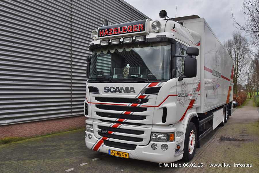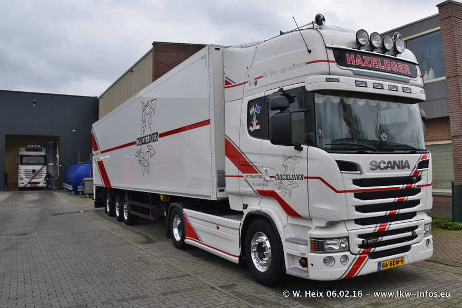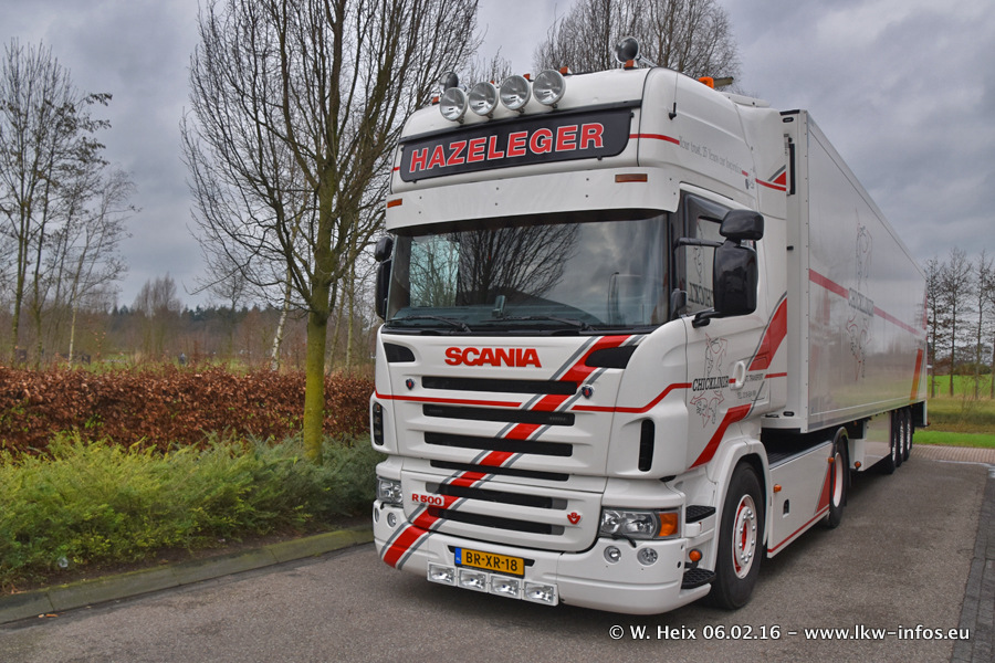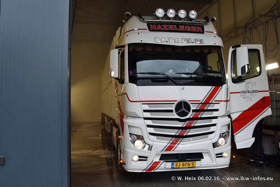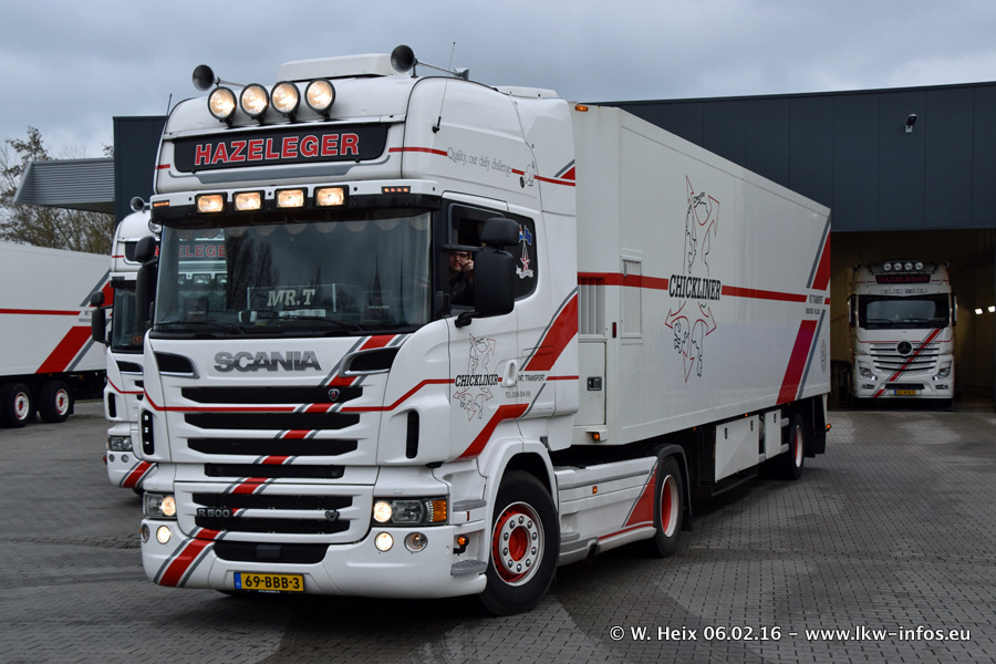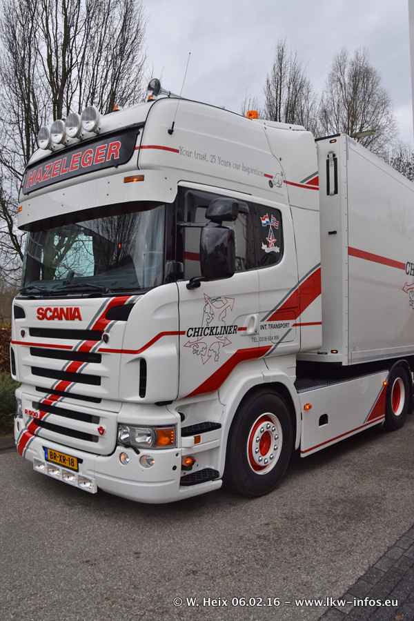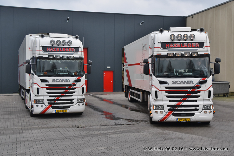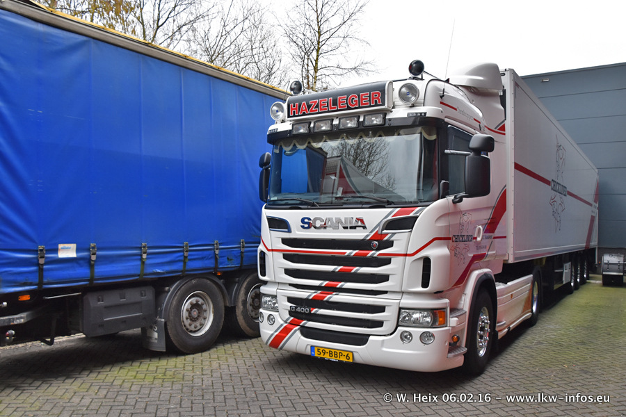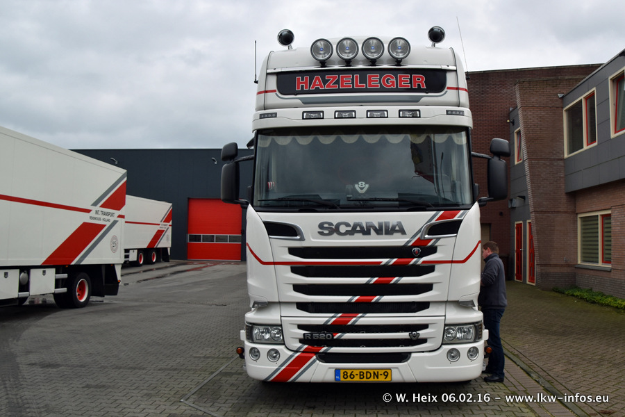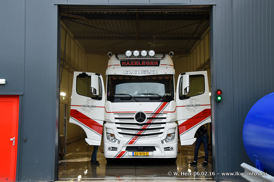Der Besuch war eigentlich nicht geplant, da ich erst vor 4 Wochen bei Hazeleger war. Aber der Hof stand voll und bis auf zwei LKW waren alle zuhause und standen teiwleise sehr gut zum Fotografieren. Ganz neu ist der zweiachsige Auflieger, der hinter dem Scania R 450 Streamline ist. Den hat die Firma Hazeleger erst gestern bekommen.