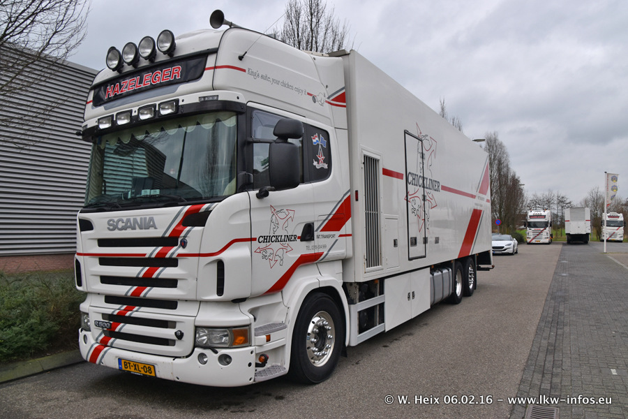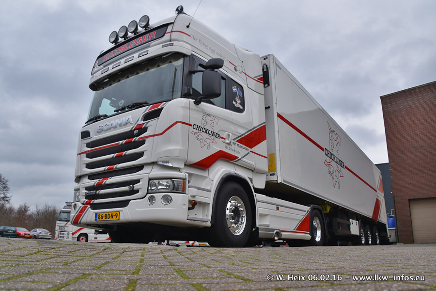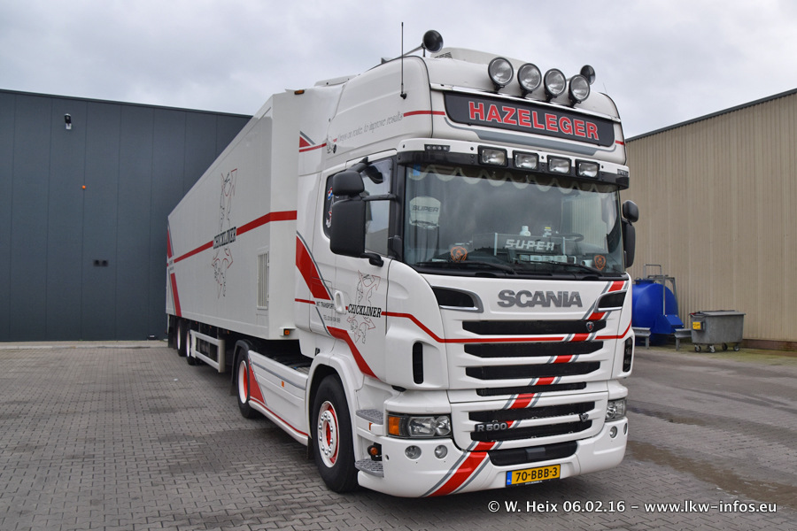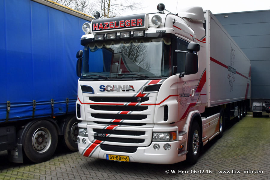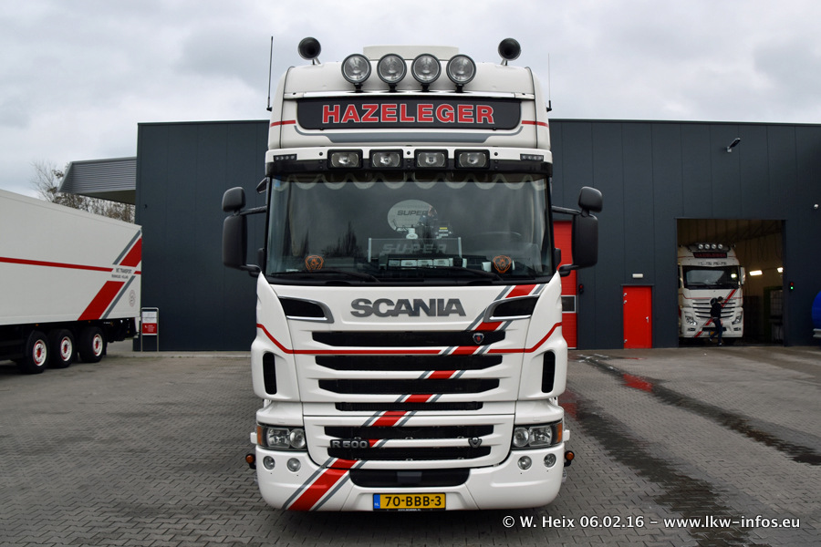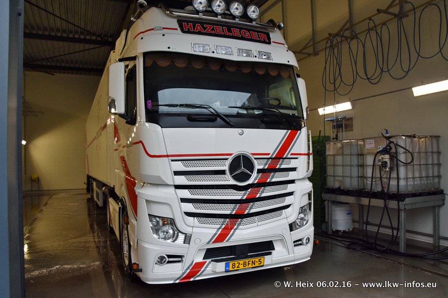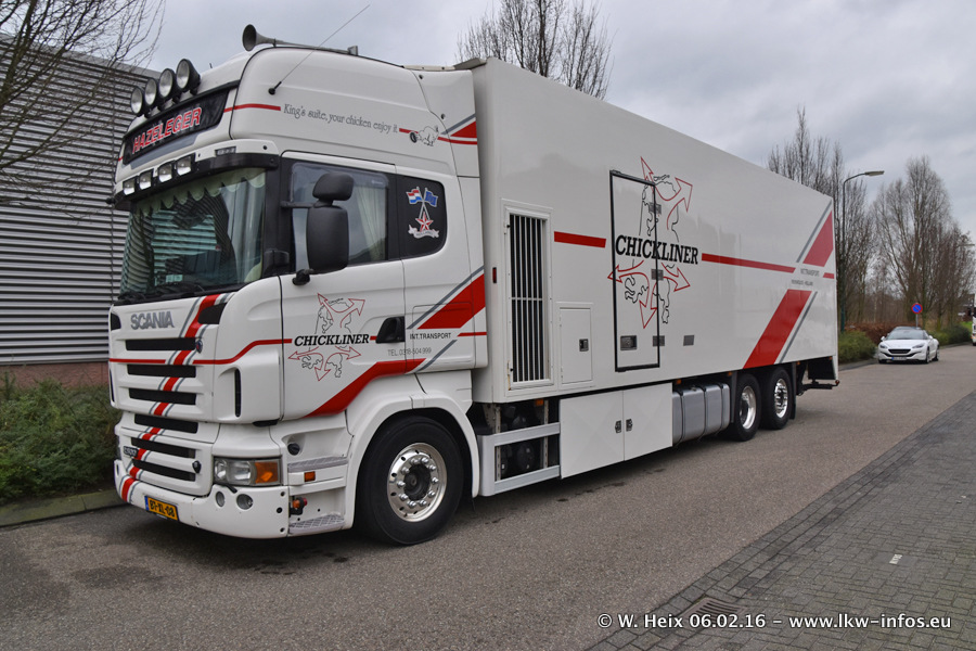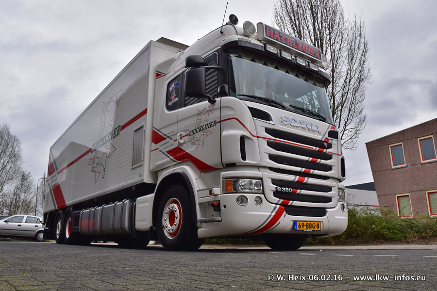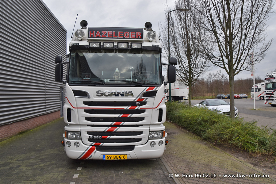 Der Besuch war eigentlich nicht geplant, da ich erst vor 4 Wochen bei Hazeleger war. Aber der Hof stand voll und bis auf zwei LKW waren alle zuhause und standen teiwleise sehr gut zum Fotografieren. Ganz neu ist der zweiachsige Auflieger, der hinter dem Scania R 450 Streamline ist. Den hat die Firma Hazeleger erst gestern bekommen.