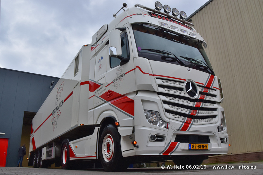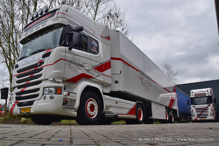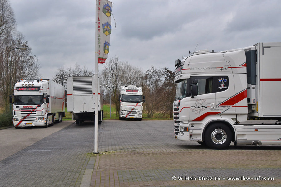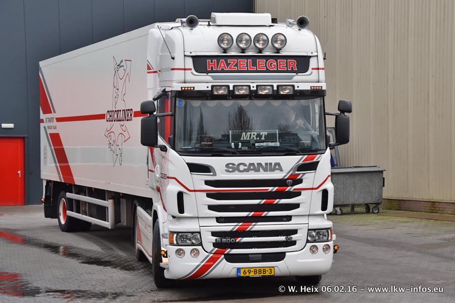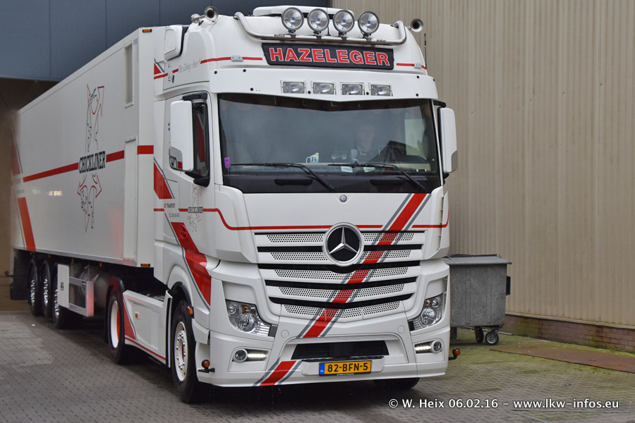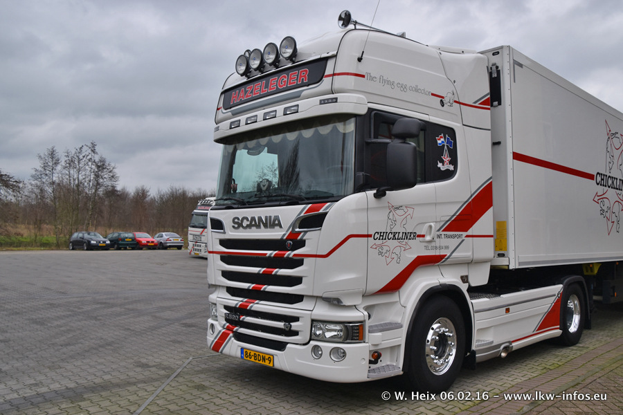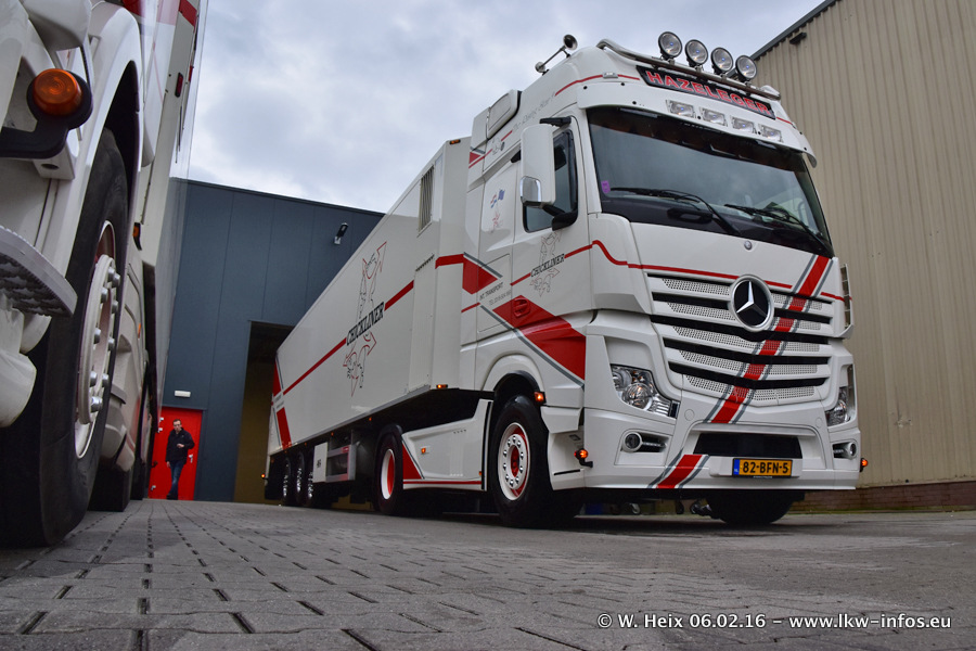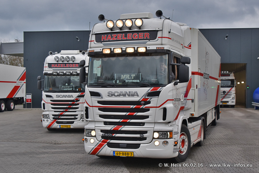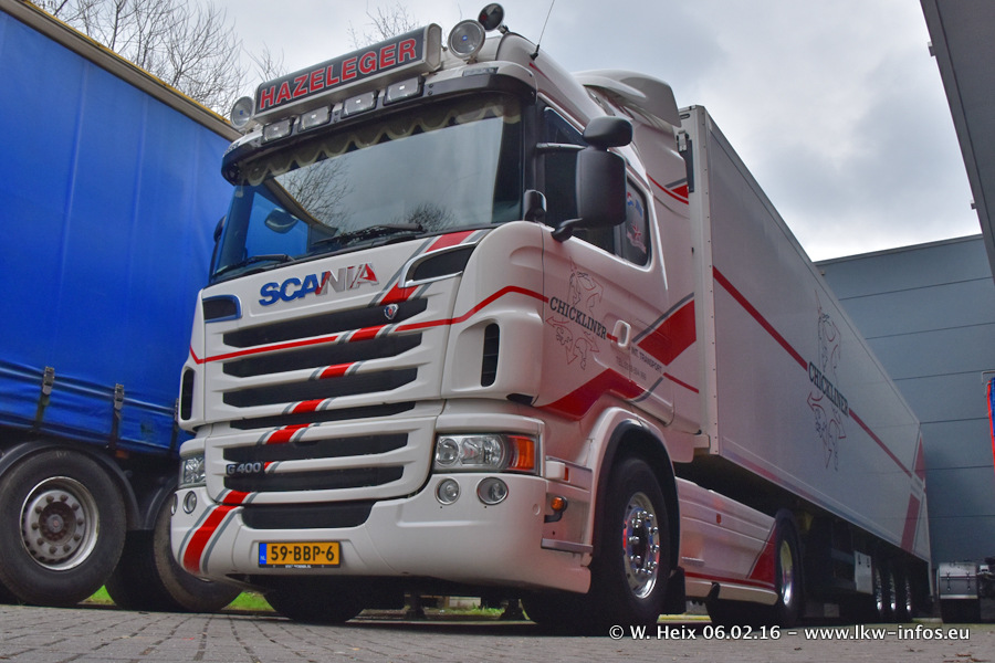 Der Besuch war eigentlich nicht geplant, da ich erst vor 4 Wochen bei Hazeleger war. Aber der Hof stand voll und bis auf zwei LKW waren alle zuhause und standen teiwleise sehr gut zum Fotografieren. Ganz neu ist der zweiachsige Auflieger, der hinter dem Scania R 450 Streamline ist. Den hat die Firma Hazeleger erst gestern bekommen.