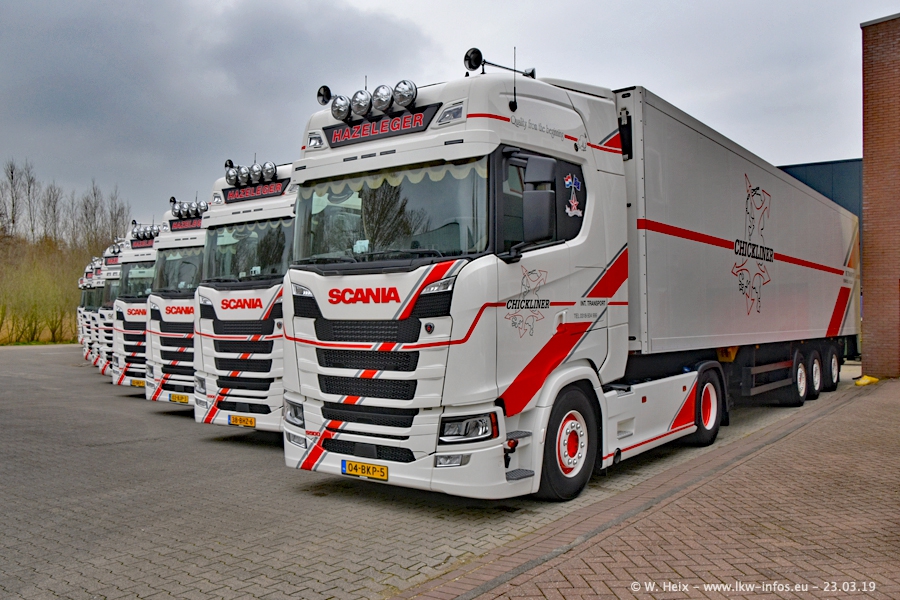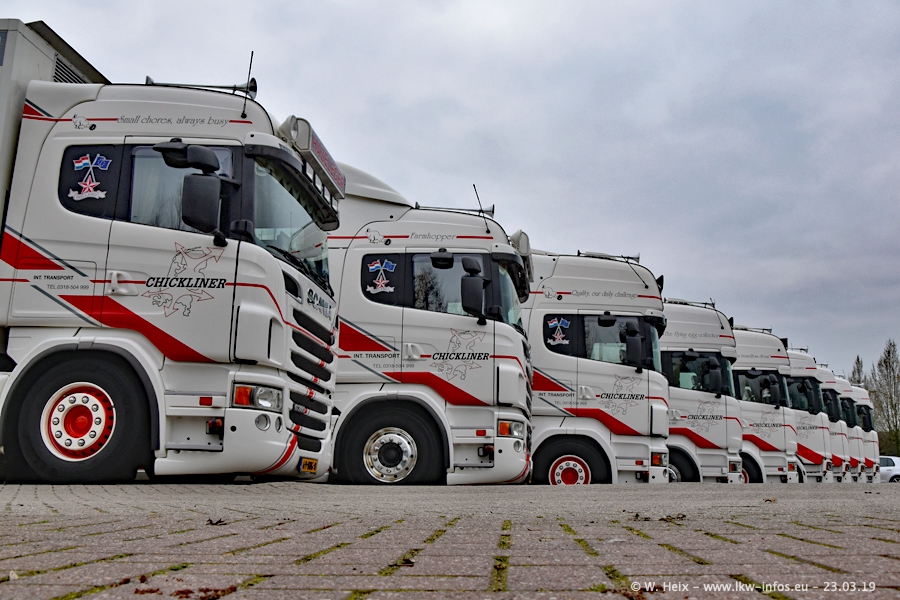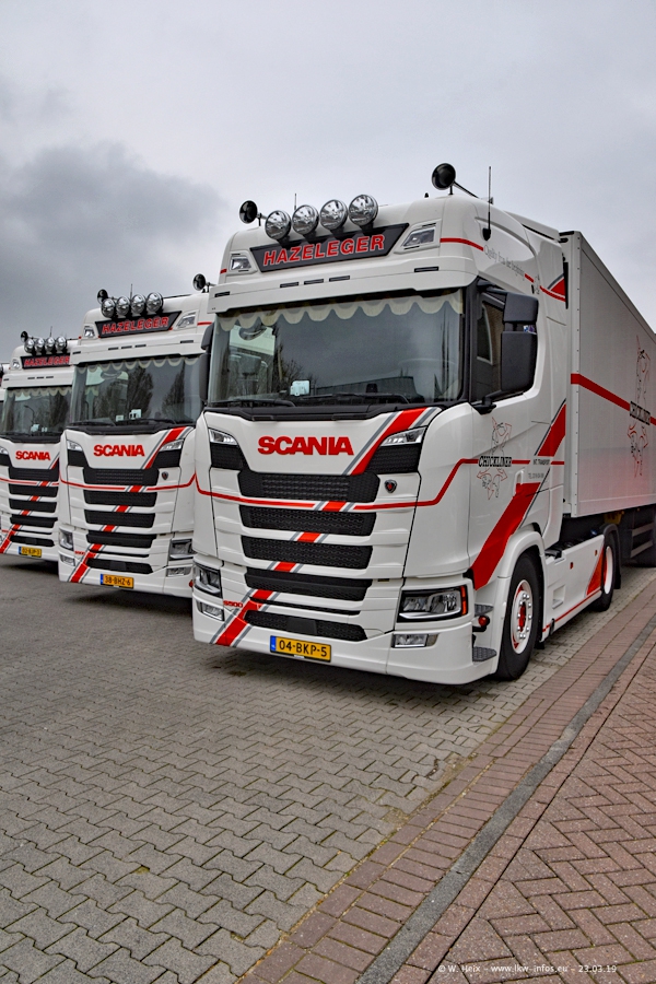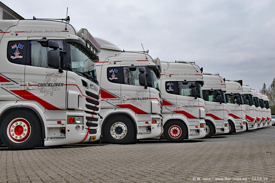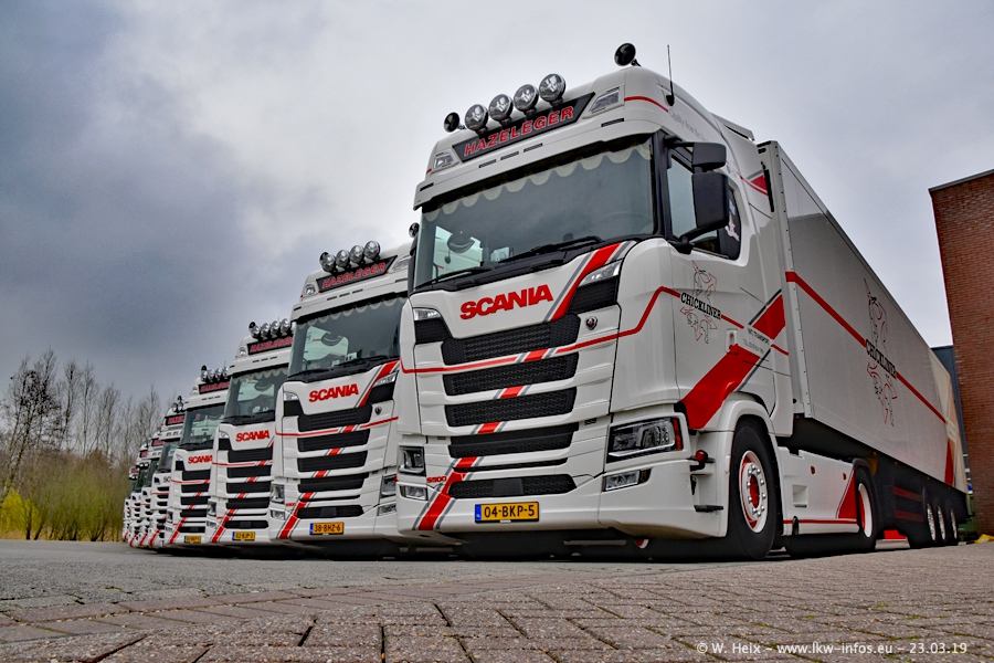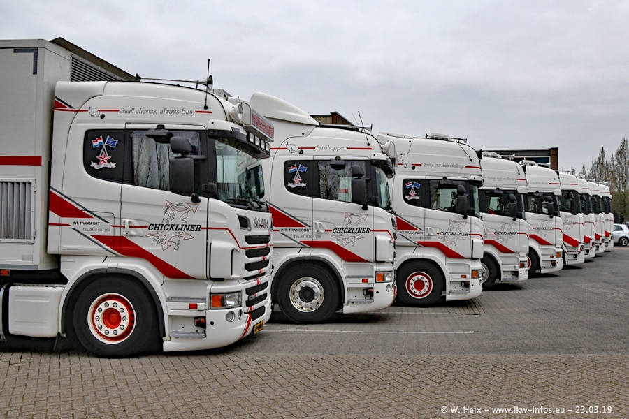 Diesmal waren so gut wie alle LKW zuhause. Ich hatte Glück, weil ich viel später als sonst da war. Fast alle LKW standen in einer Reihe nebeneinander. Und vier der fünf neuen SCANIA S 500 NextGen waren da. Den ersten davon hatte ich im Januar 2017 bei Chickliner fotografiert, die anderen neunen hatte ich bisher nicht gesehen. Diese sind alle im letzten Jahr neu in den Fuhrpark gekommen und haben ältere Fahrzeuge ersetzt, so wie z. B. den Volvo FH 3.