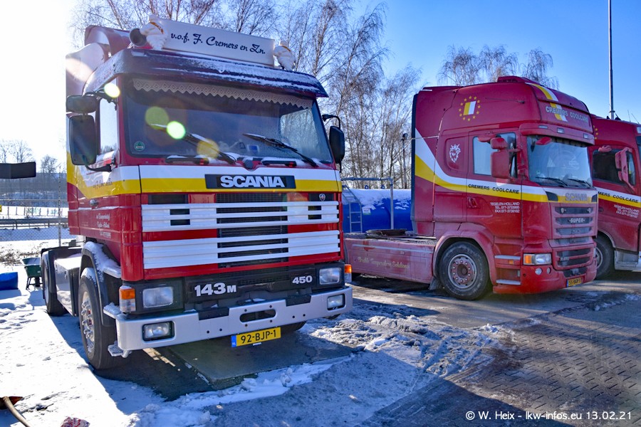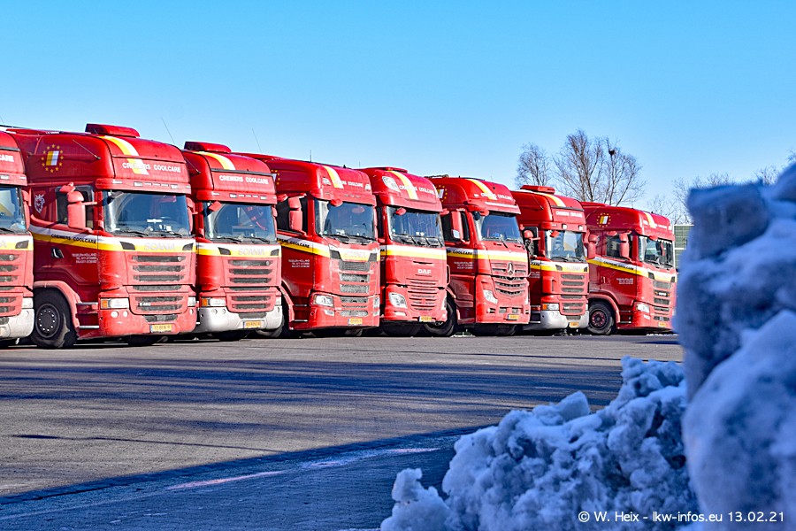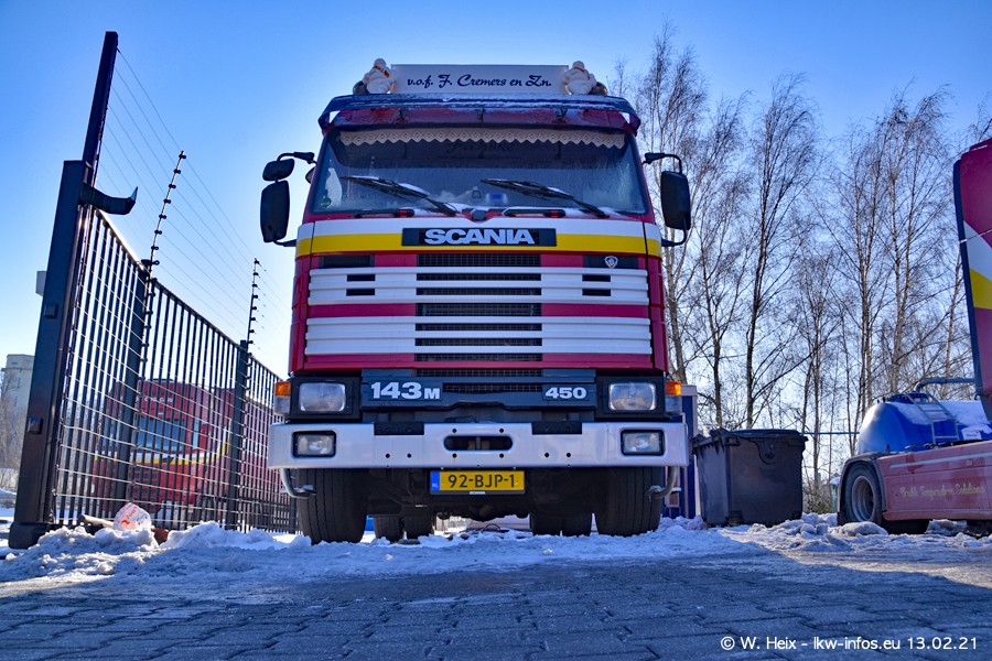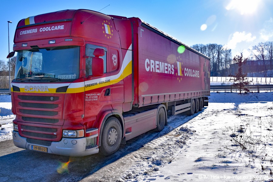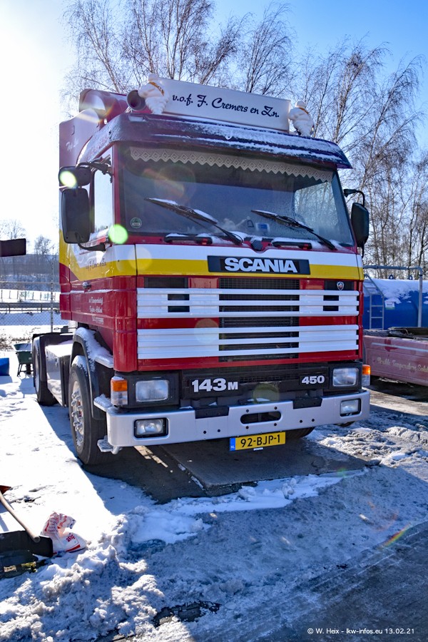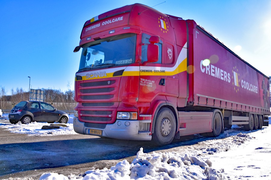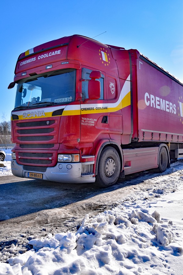Diesmal habe ich Cremers bei Winterwetter besucht, wie wir es seit über 10 Jahren hier am Niederrhein bzw. hinter der Grenze in Venlo (NL) nicht mehr hatten. Temperatren nachts unter -10°C und auch morgens um 11:00 Uhr noch -6°C. Dazu Schnee und Sonne. Entsprechend schmutzig sind auch die LKW, da bei den Temperaturen fast keine Waschanlage arbeitet. Weil das hier sehr selten so vorkommt, habe ich trotzdem diese Bilder gemacht, was eben zur Jahreszeit passt. Der nächste Sommer kommt bestimmt ....