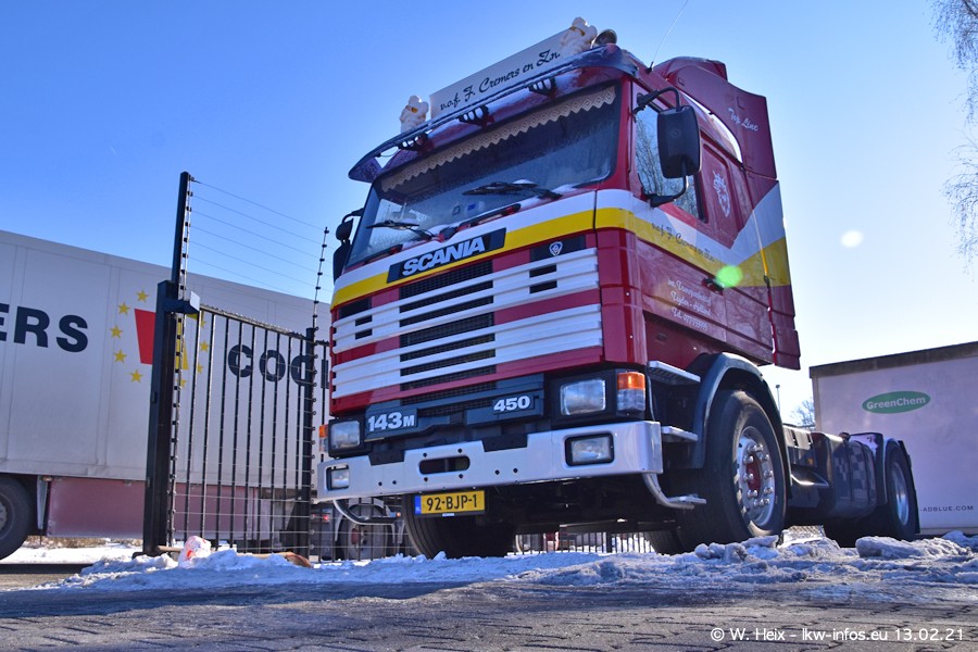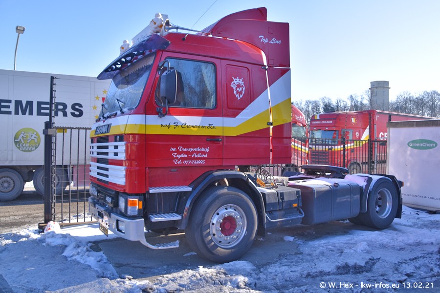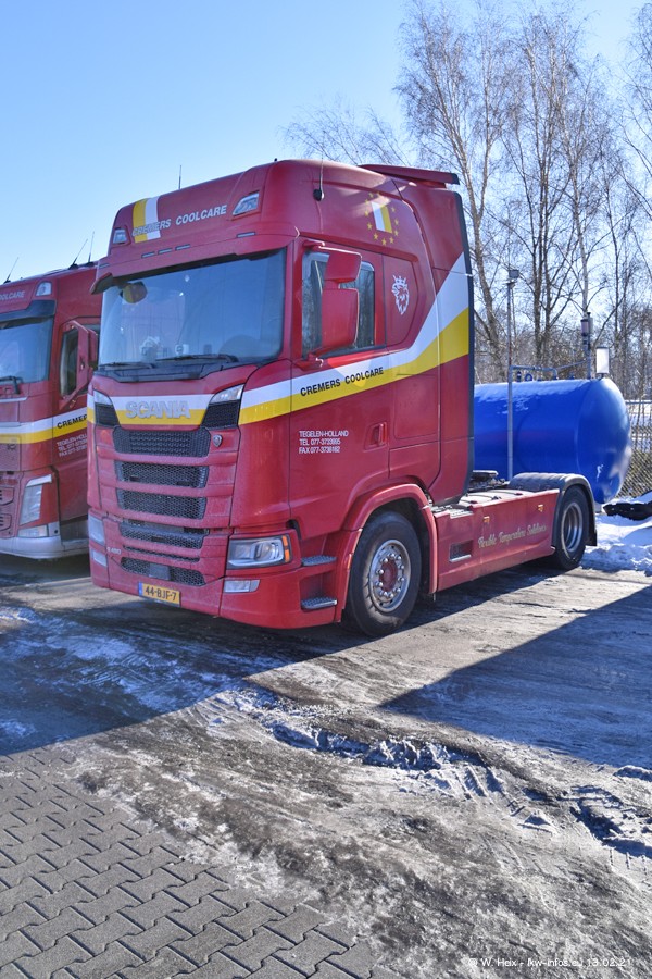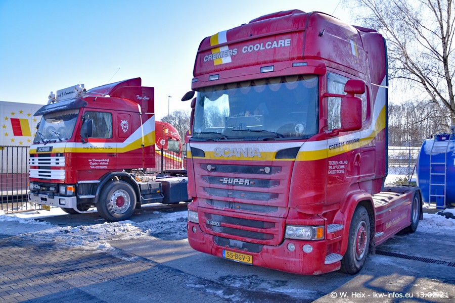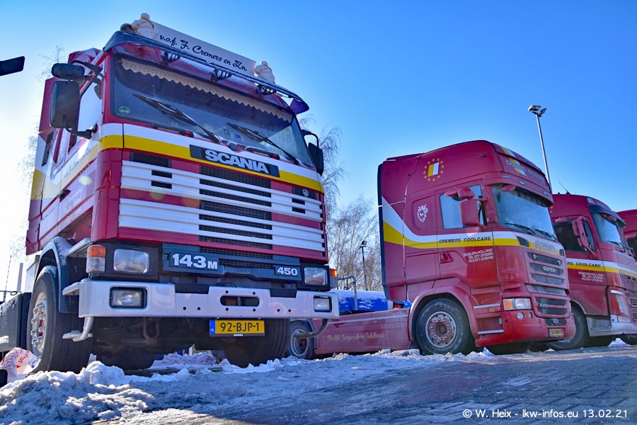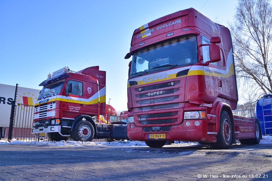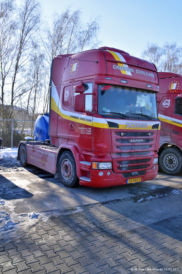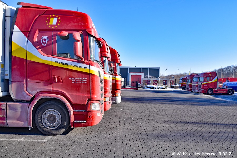 Diesmal habe ich Cremers bei Winterwetter besucht, wie wir es seit über 10 Jahren hier am Niederrhein bzw. hinter der Grenze in Venlo (NL) nicht mehr hatten. Temperatren nachts unter -10°C und auch morgens um 11:00 Uhr noch -6°C. Dazu Schnee und Sonne. Entsprechend schmutzig sind auch die LKW, da bei den Temperaturen fast keine Waschanlage arbeitet. Weil das hier sehr selten so vorkommt, habe ich trotzdem diese Bilder gemacht, was eben zur Jahreszeit passt. Der nächste Sommer kommt bestimmt ....