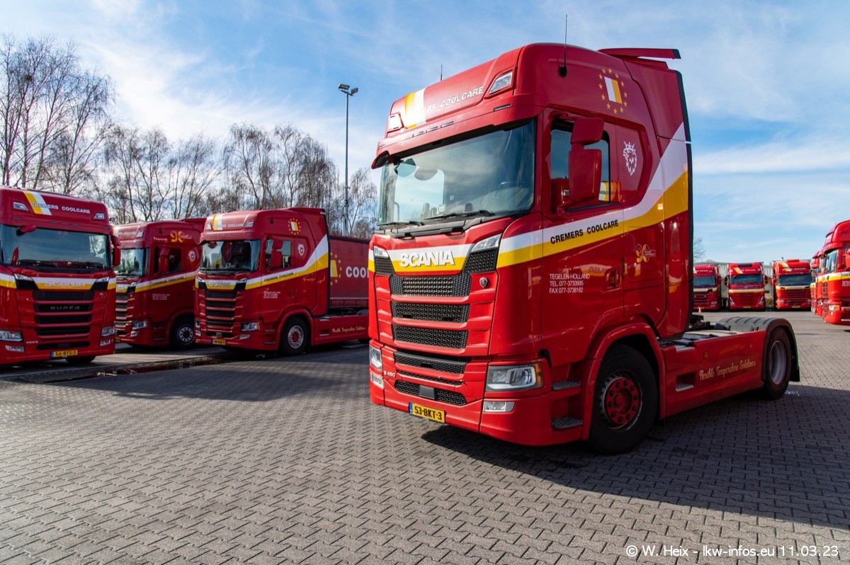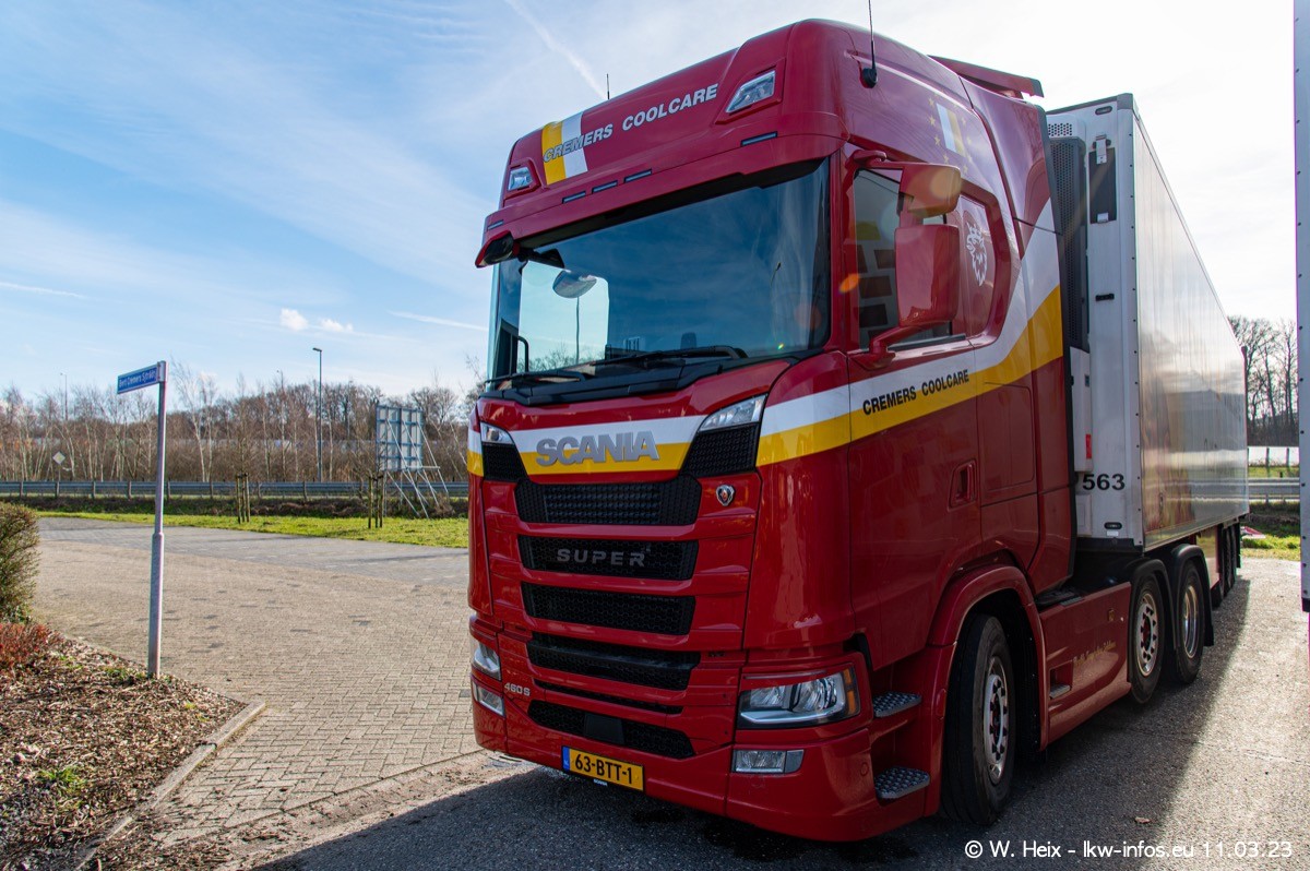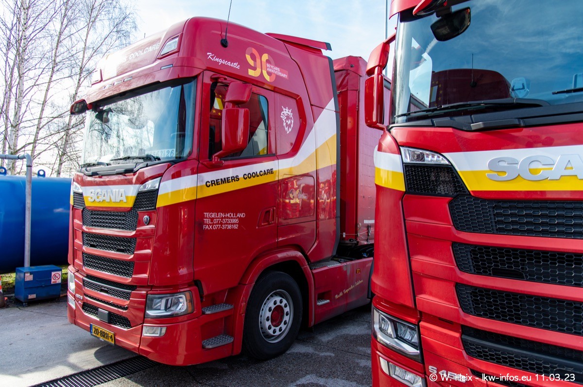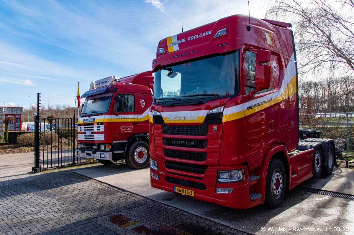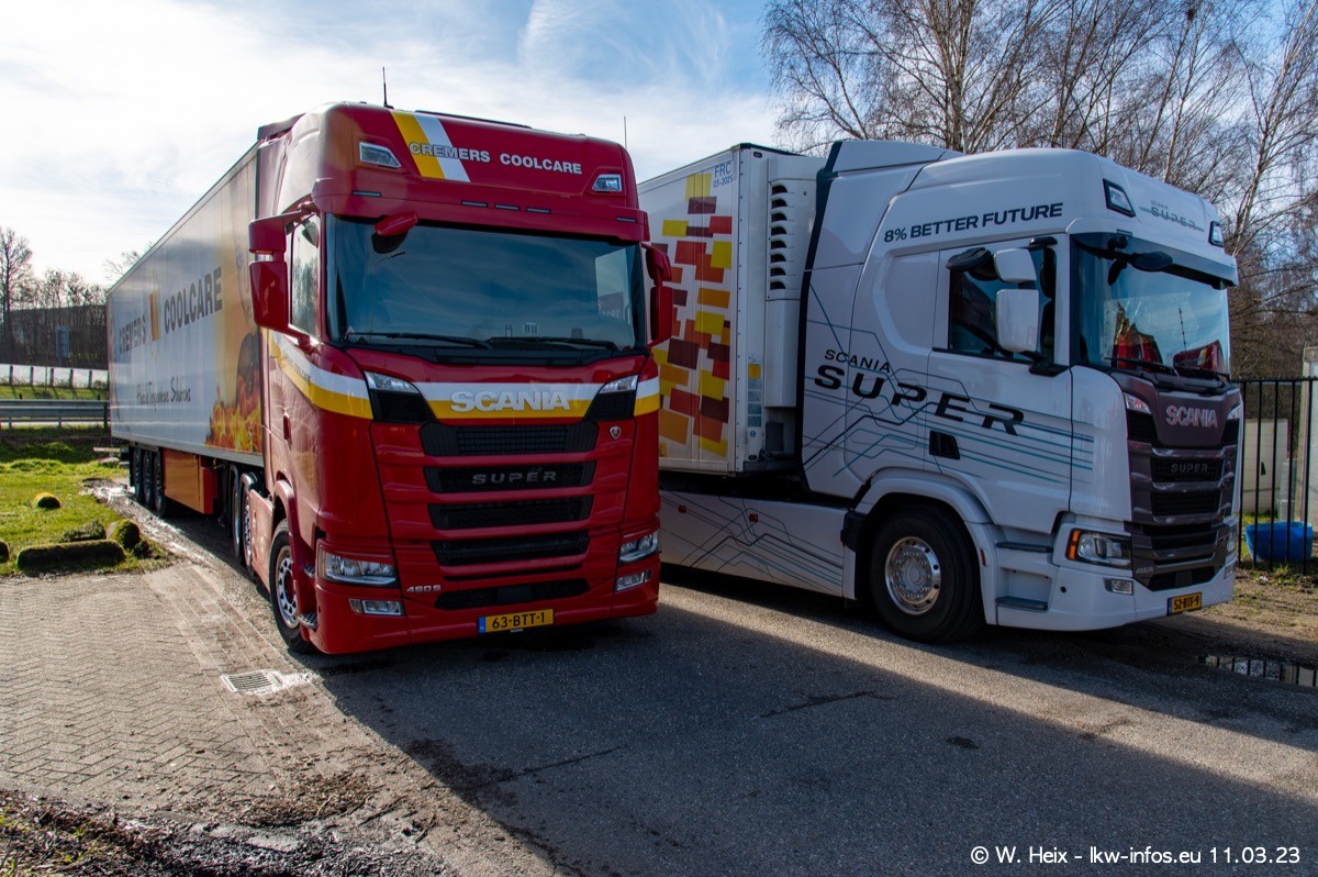 Anfang Februar und Anfang März wurden von SCANIA Venlo die nächsten zwei 460 S NextGen an Cremers geliefert. Beide waren zuhause. Zwei fehlen jetzt noch. Die restlichen Fahrzeuge sind bekannt. Die beiden neuen SCANIA haben die Kennzeichen "63 BTT 1" und "56 BTS 3".