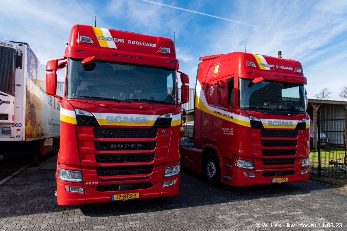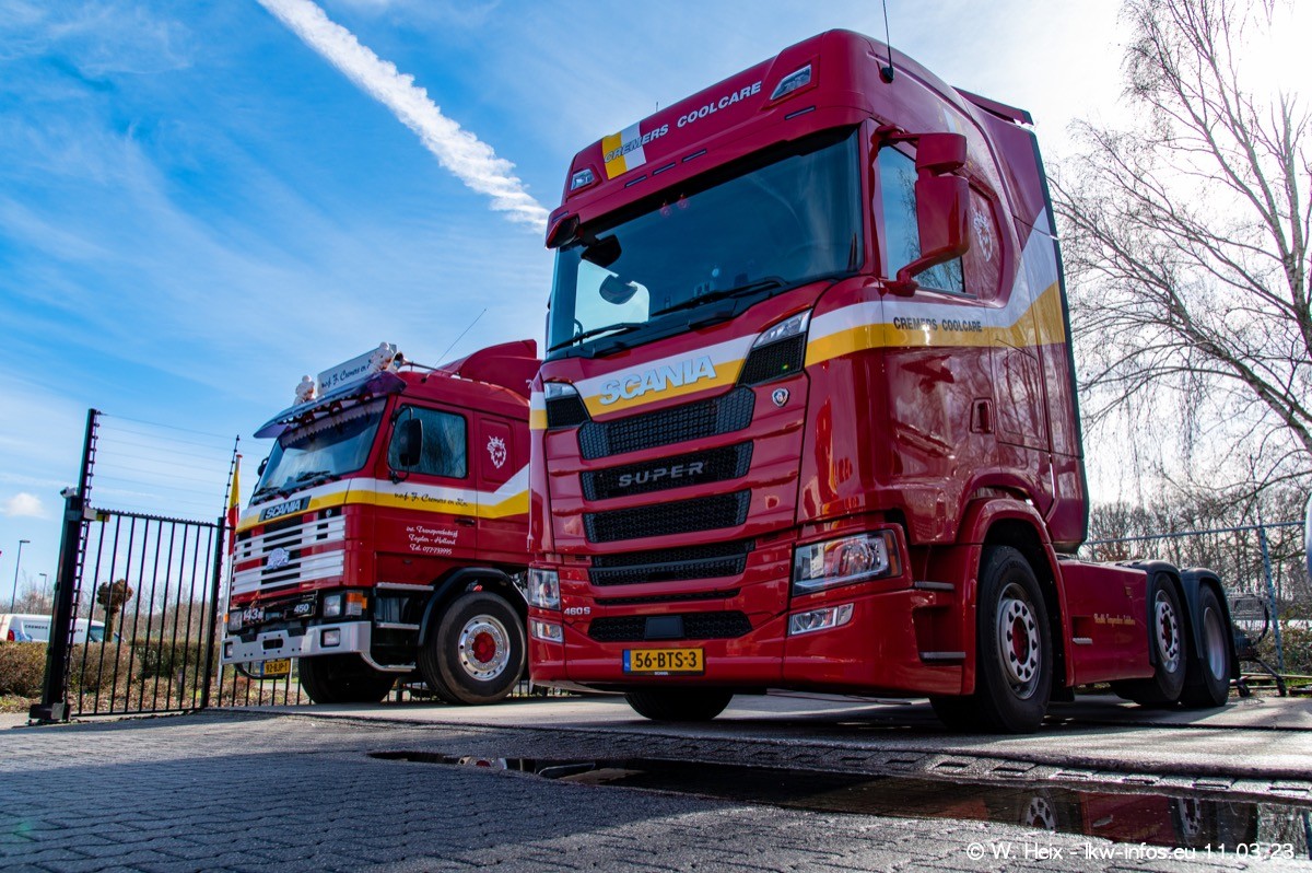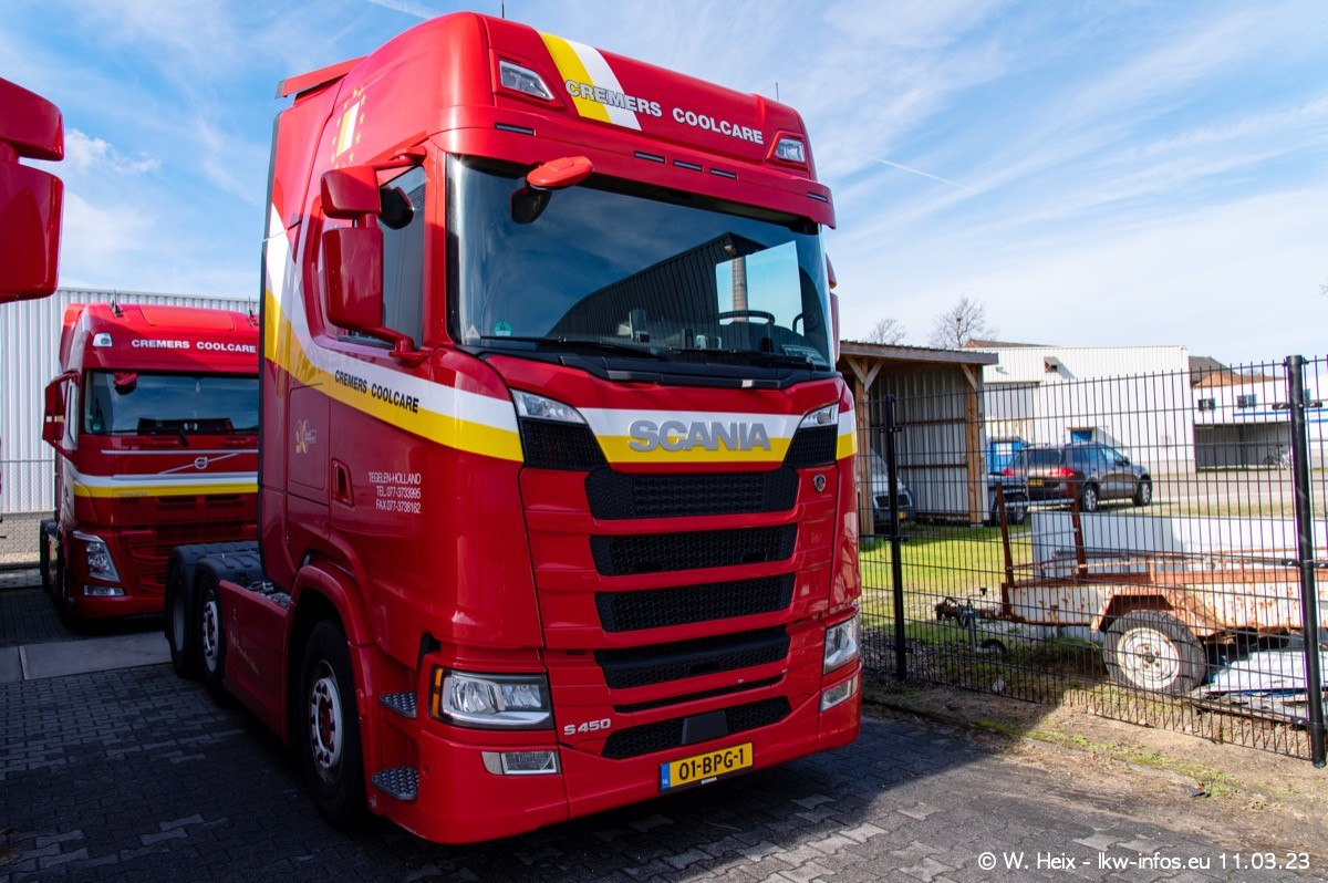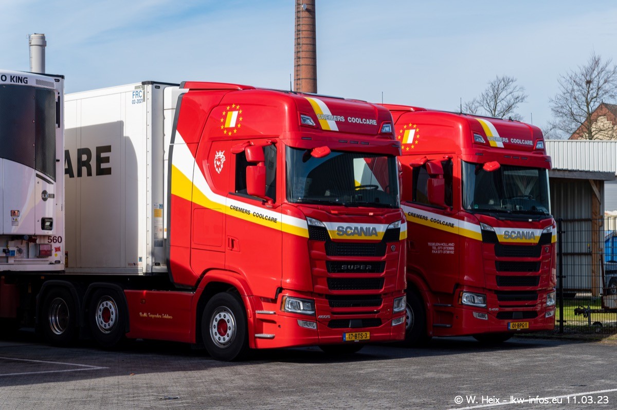Anfang Februar und Anfang März wurden von SCANIA Venlo die nächsten zwei 460 S NextGen an Cremers geliefert. Beide waren zuhause. Zwei fehlen jetzt noch. Die restlichen Fahrzeuge sind bekannt. Die beiden neuen SCANIA haben die Kennzeichen "63 BTT 1" und "56 BTS 3".