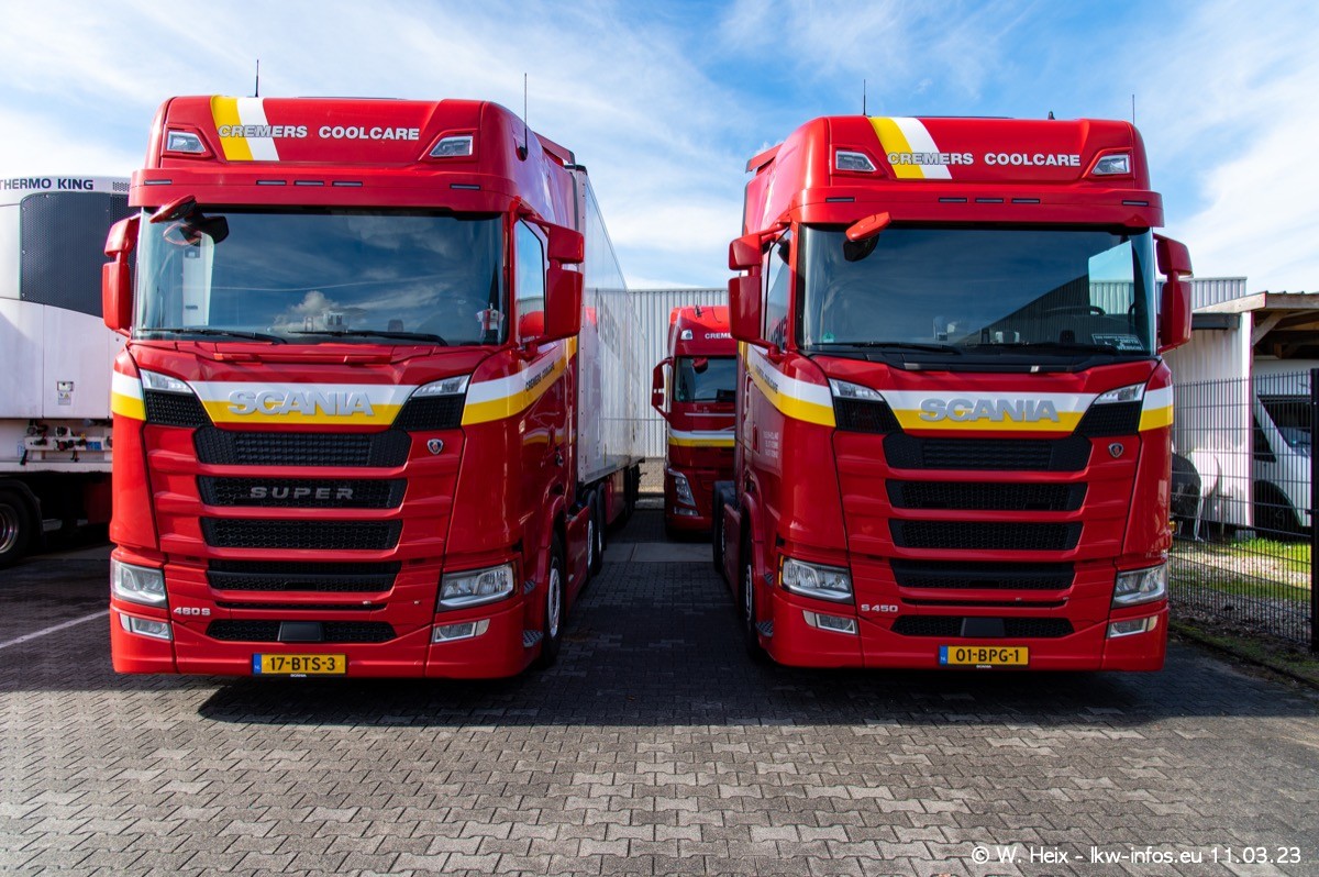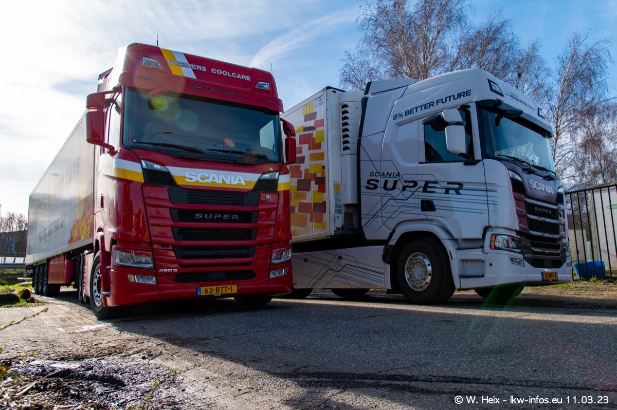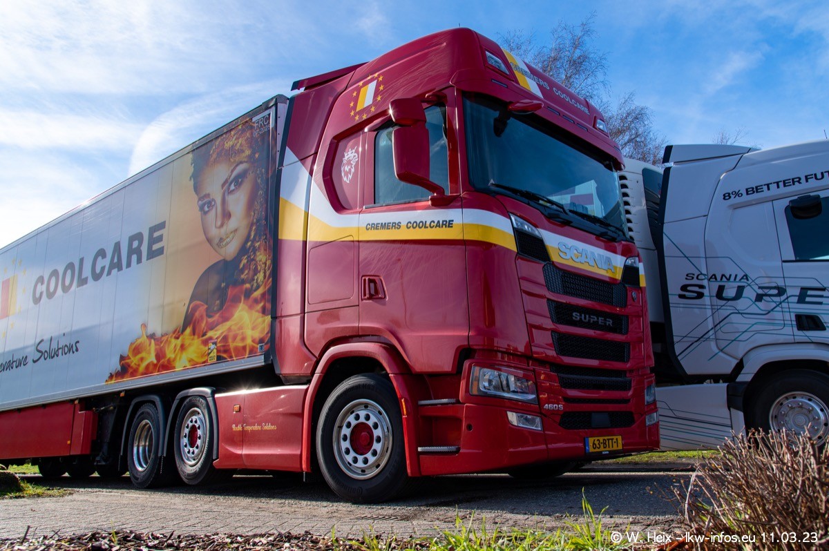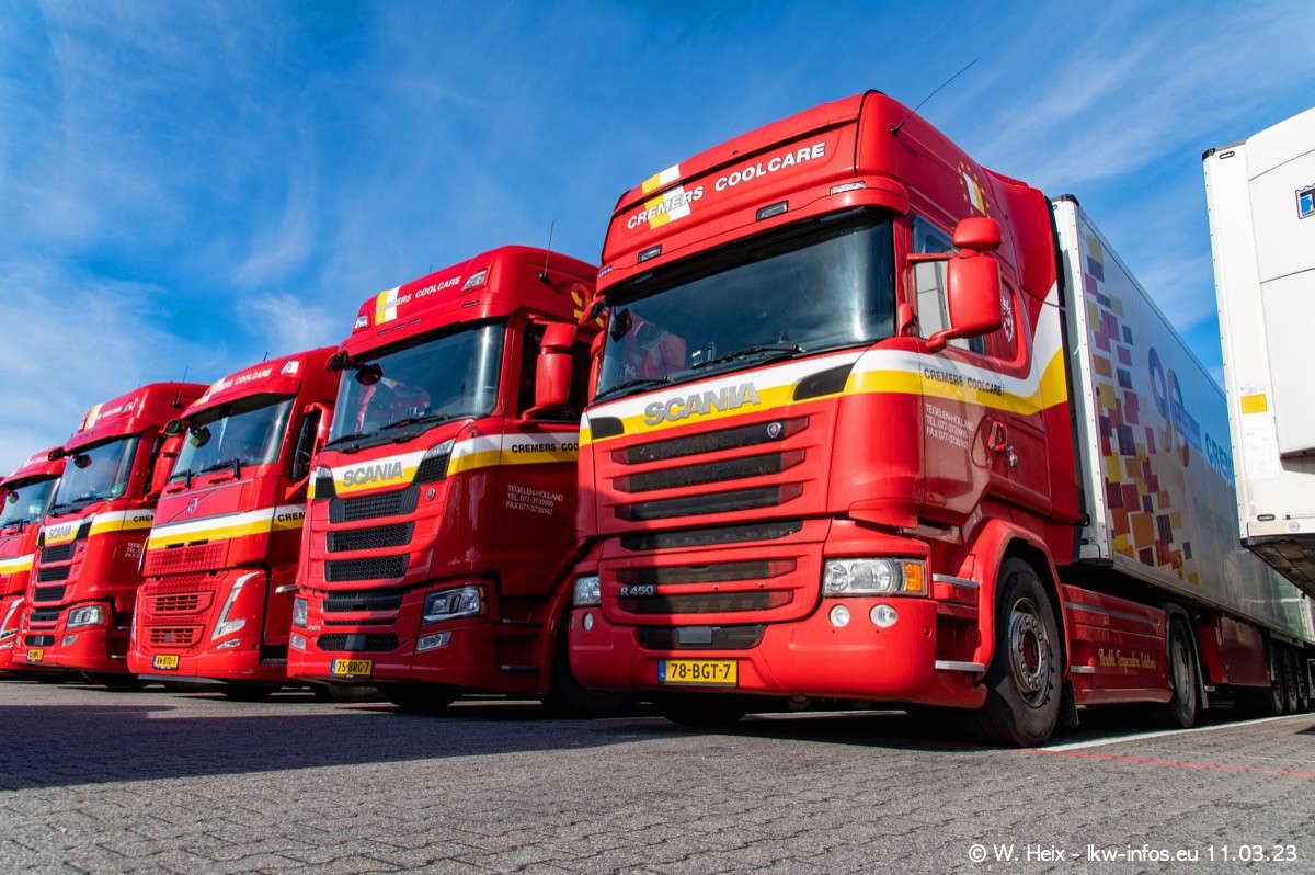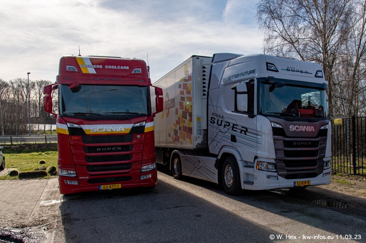 Anfang Februar und Anfang März wurden von SCANIA Venlo die nächsten zwei 460 S NextGen an Cremers geliefert. Beide waren zuhause. Zwei fehlen jetzt noch. Die restlichen Fahrzeuge sind bekannt. Die beiden neuen SCANIA haben die Kennzeichen "63 BTT 1" und "56 BTS 3".