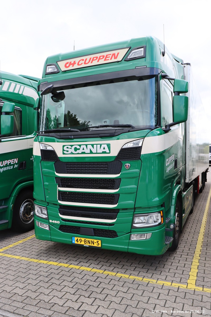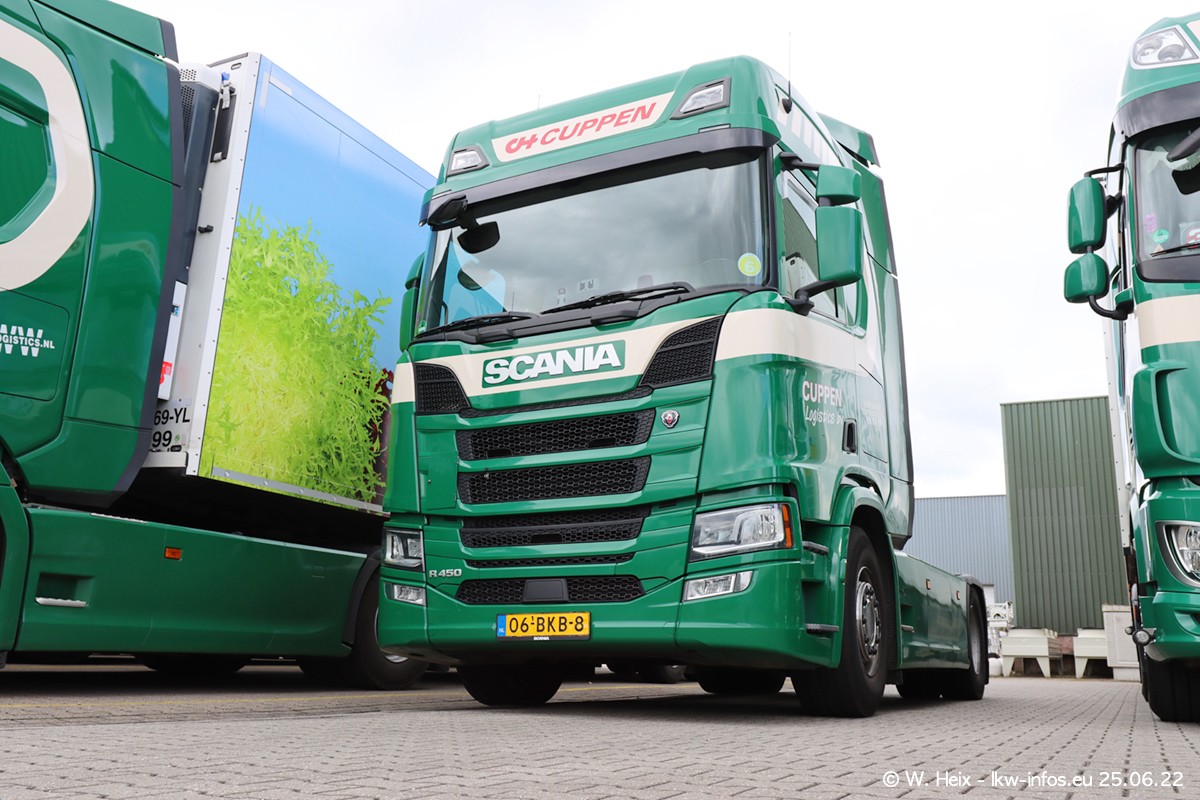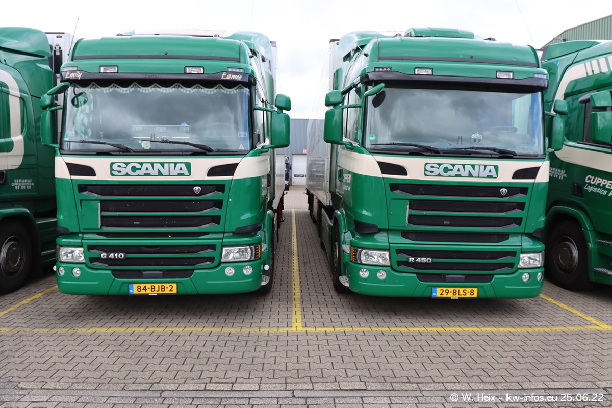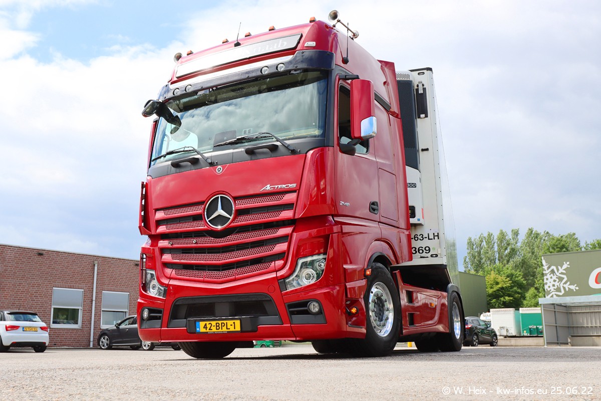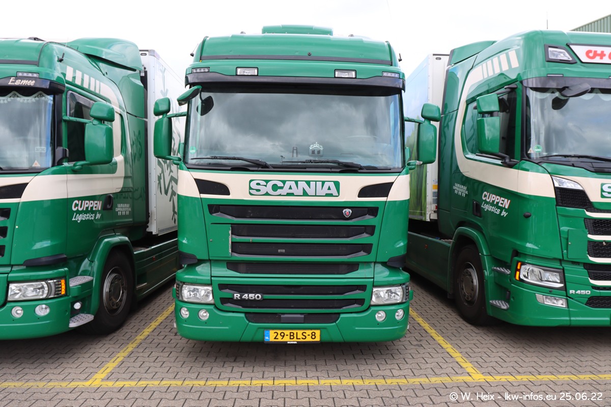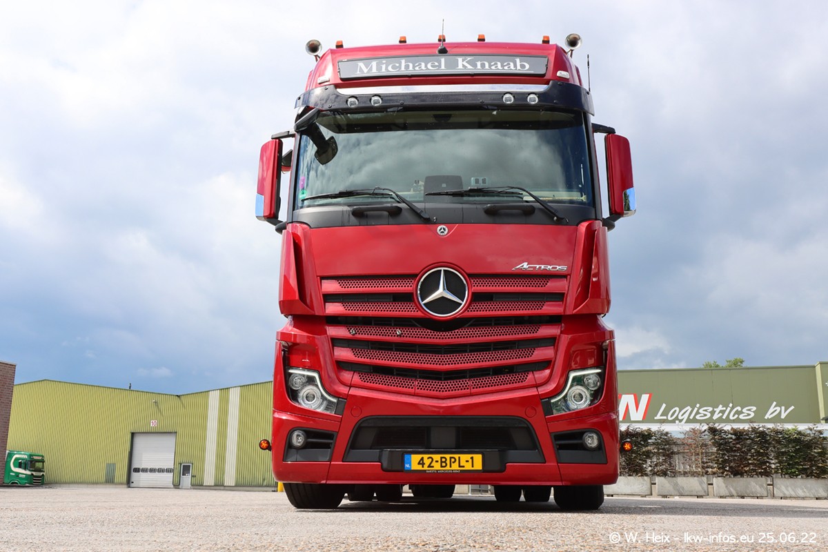 Neu im Fuhrpark ist ein weiterer SCANIA R 450 NextGen, zu erkennen an der Buchstabenkombination "BSZ" auf dem Kennzeichen. Weitere neue VOLVO FH5 habe ich (noch) nicht gesehen. Den Mercedes-Benz Actros vom Charter Michael Knaab konnte ich nochmals von allen Seiten frisch gewaschen auf dem Gelände fotografieren. Der Rest der Fahrzeuge ist bekannt.
