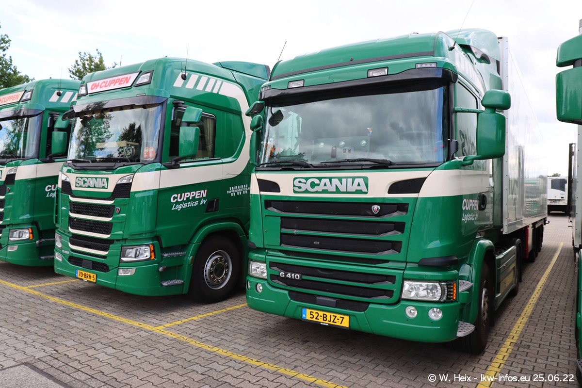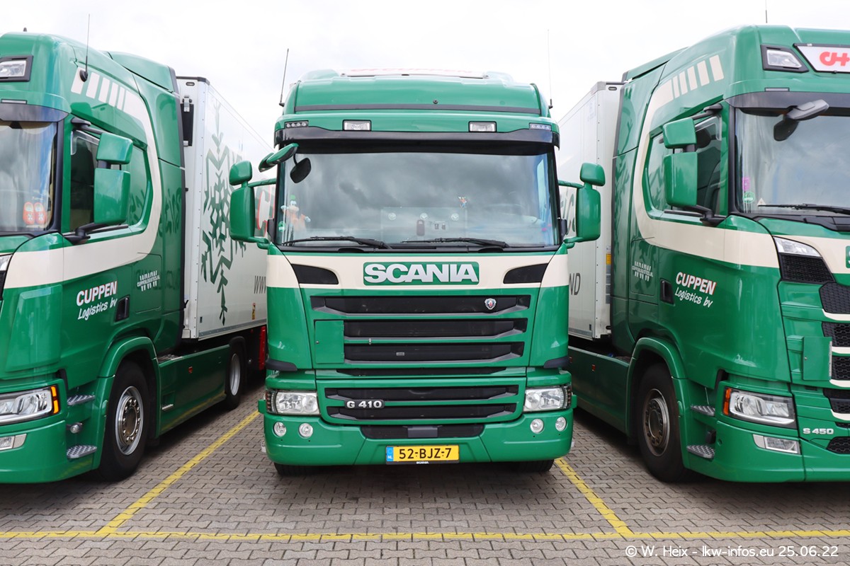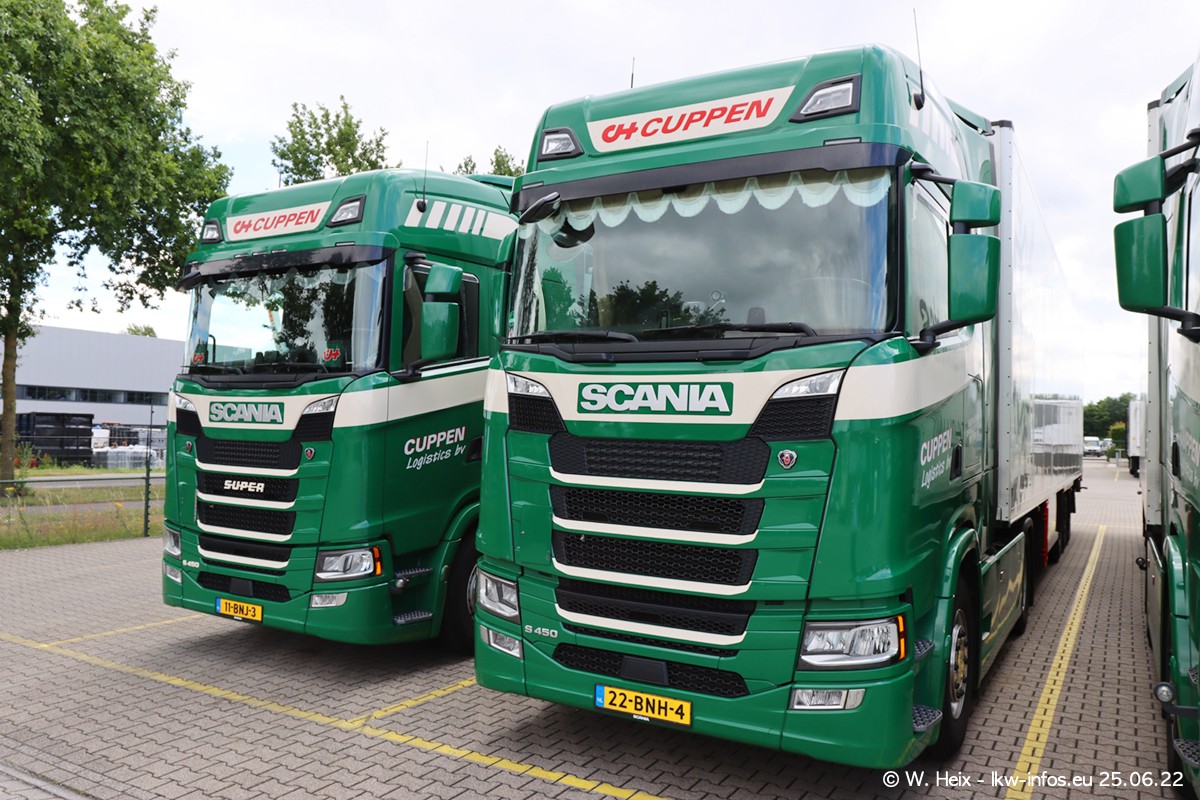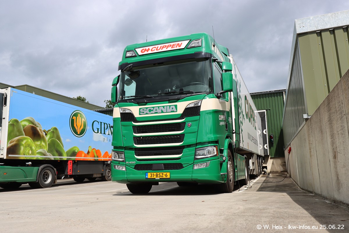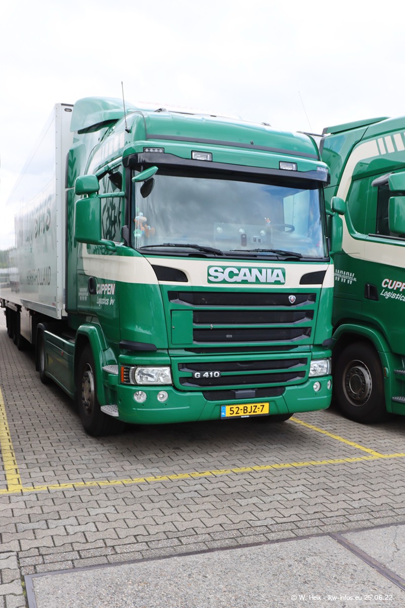 Neu im Fuhrpark ist ein weiterer SCANIA R 450 NextGen, zu erkennen an der Buchstabenkombination "BSZ" auf dem Kennzeichen. Weitere neue VOLVO FH5 habe ich (noch) nicht gesehen. Den Mercedes-Benz Actros vom Charter Michael Knaab konnte ich nochmals von allen Seiten frisch gewaschen auf dem Gelände fotografieren. Der Rest der Fahrzeuge ist bekannt.