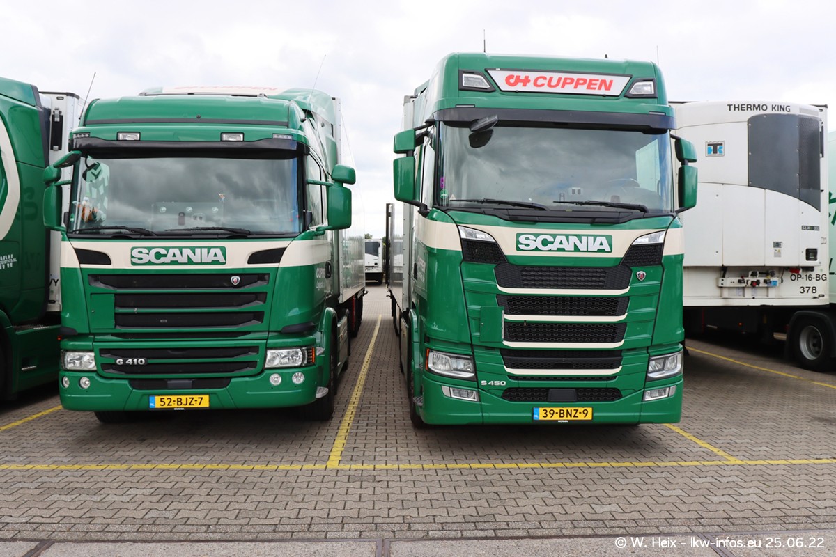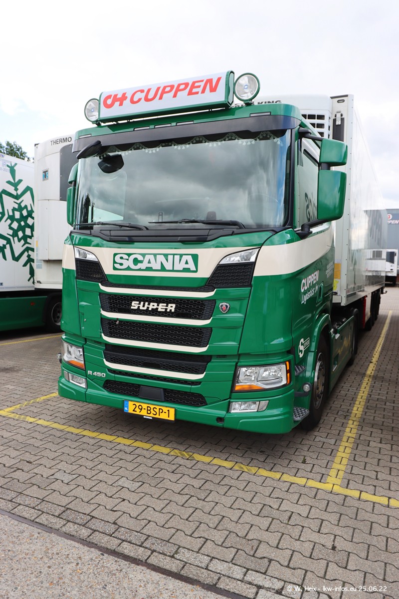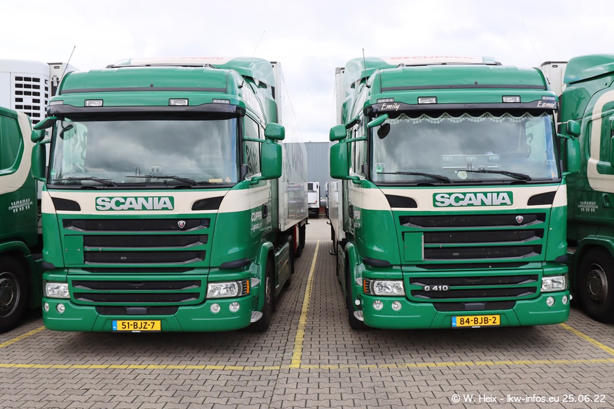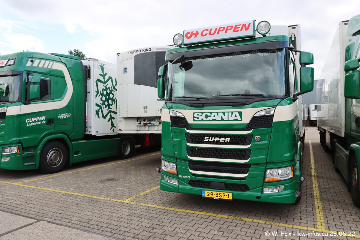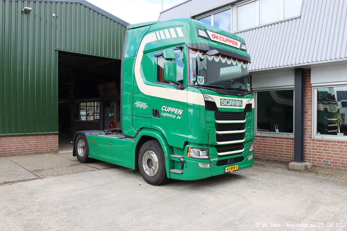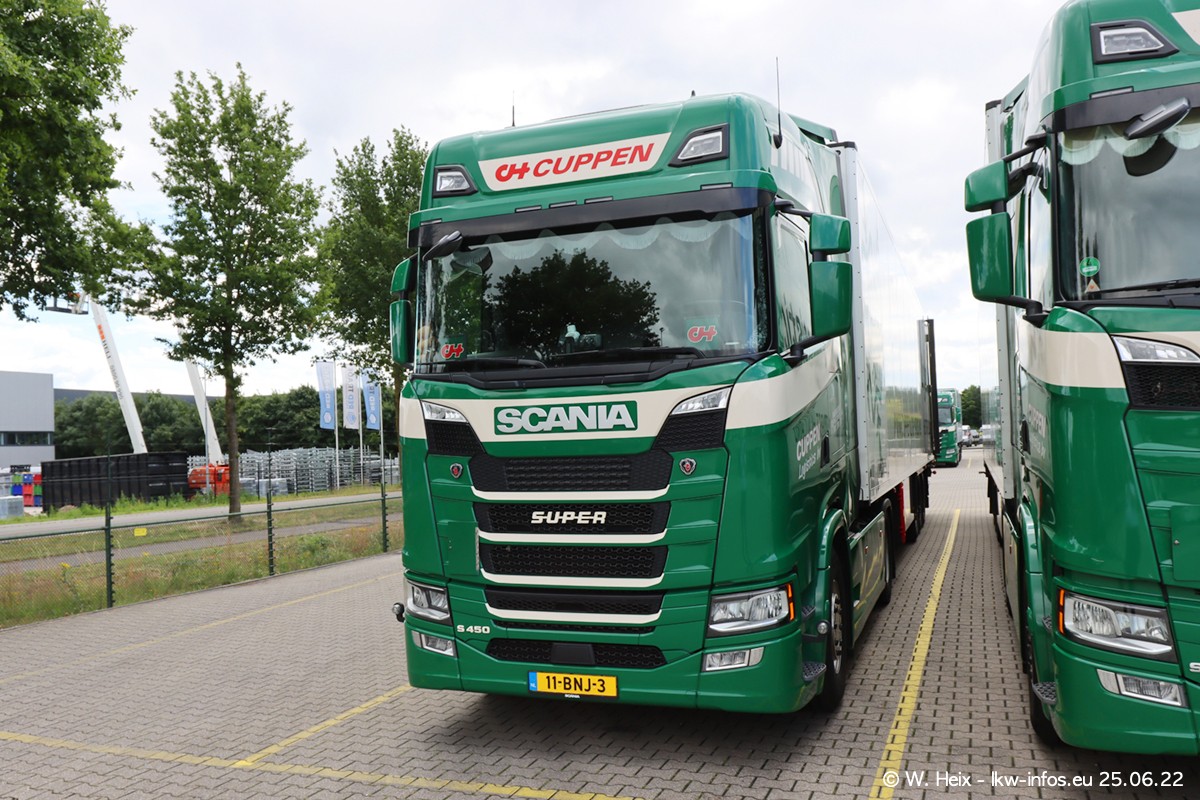 Neu im Fuhrpark ist ein weiterer SCANIA R 450 NextGen, zu erkennen an der Buchstabenkombination "BSZ" auf dem Kennzeichen. Weitere neue VOLVO FH5 habe ich (noch) nicht gesehen. Den Mercedes-Benz Actros vom Charter Michael Knaab konnte ich nochmals von allen Seiten frisch gewaschen auf dem Gelände fotografieren. Der Rest der Fahrzeuge ist bekannt.