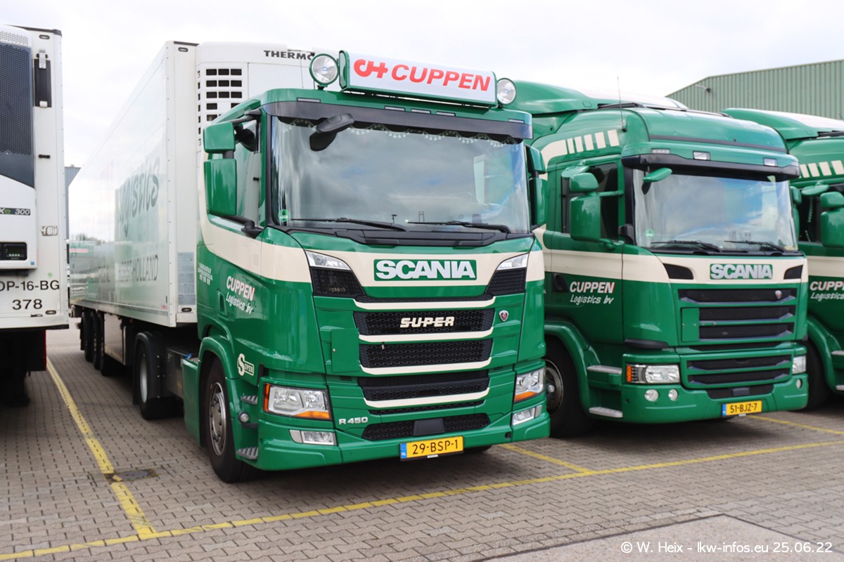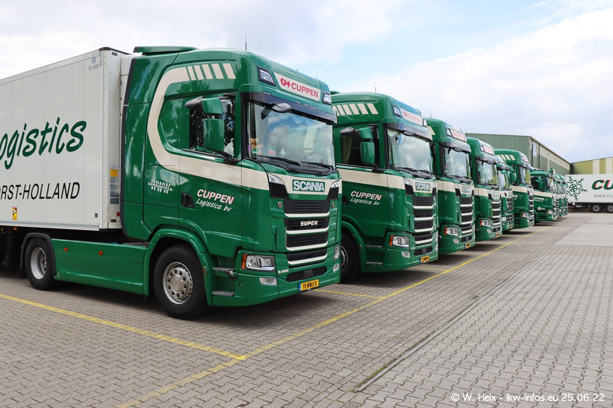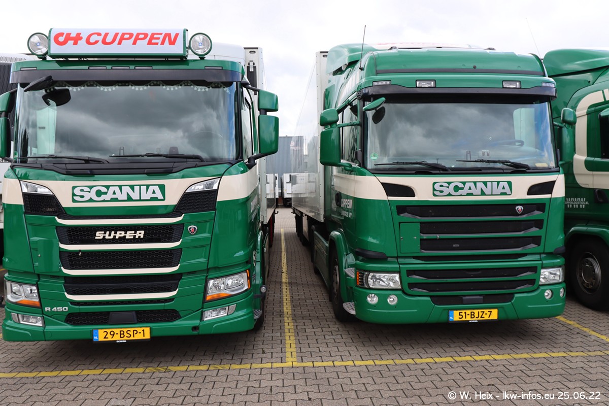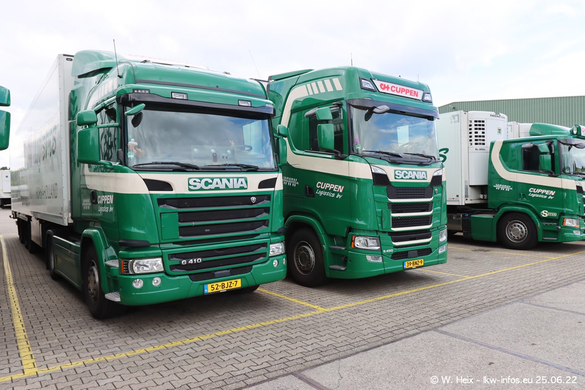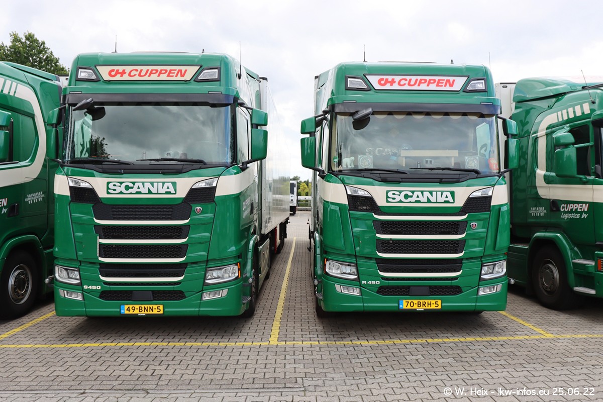 Neu im Fuhrpark ist ein weiterer SCANIA R 450 NextGen, zu erkennen an der Buchstabenkombination "BSZ" auf dem Kennzeichen. Weitere neue VOLVO FH5 habe ich (noch) nicht gesehen. Den Mercedes-Benz Actros vom Charter Michael Knaab konnte ich nochmals von allen Seiten frisch gewaschen auf dem Gelände fotografieren. Der Rest der Fahrzeuge ist bekannt.