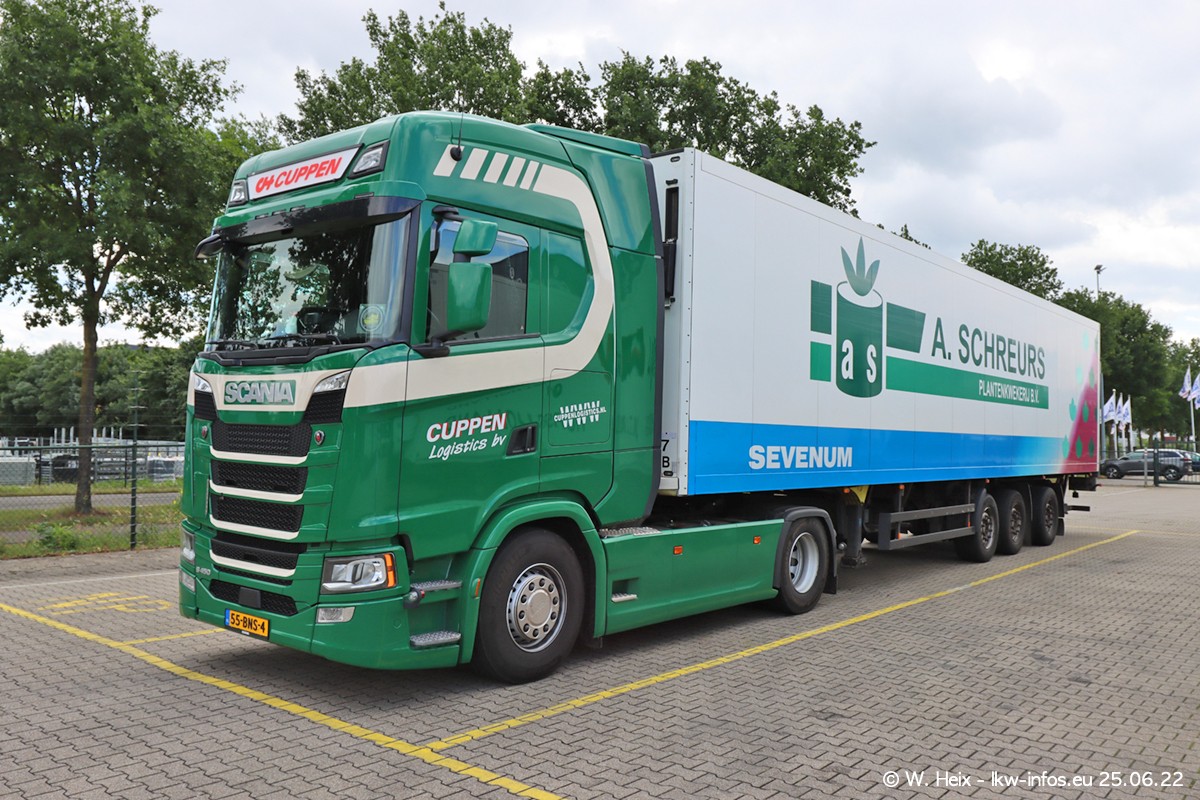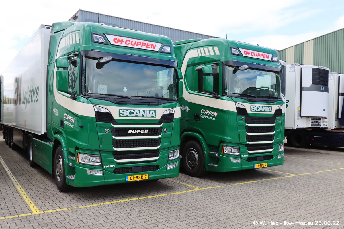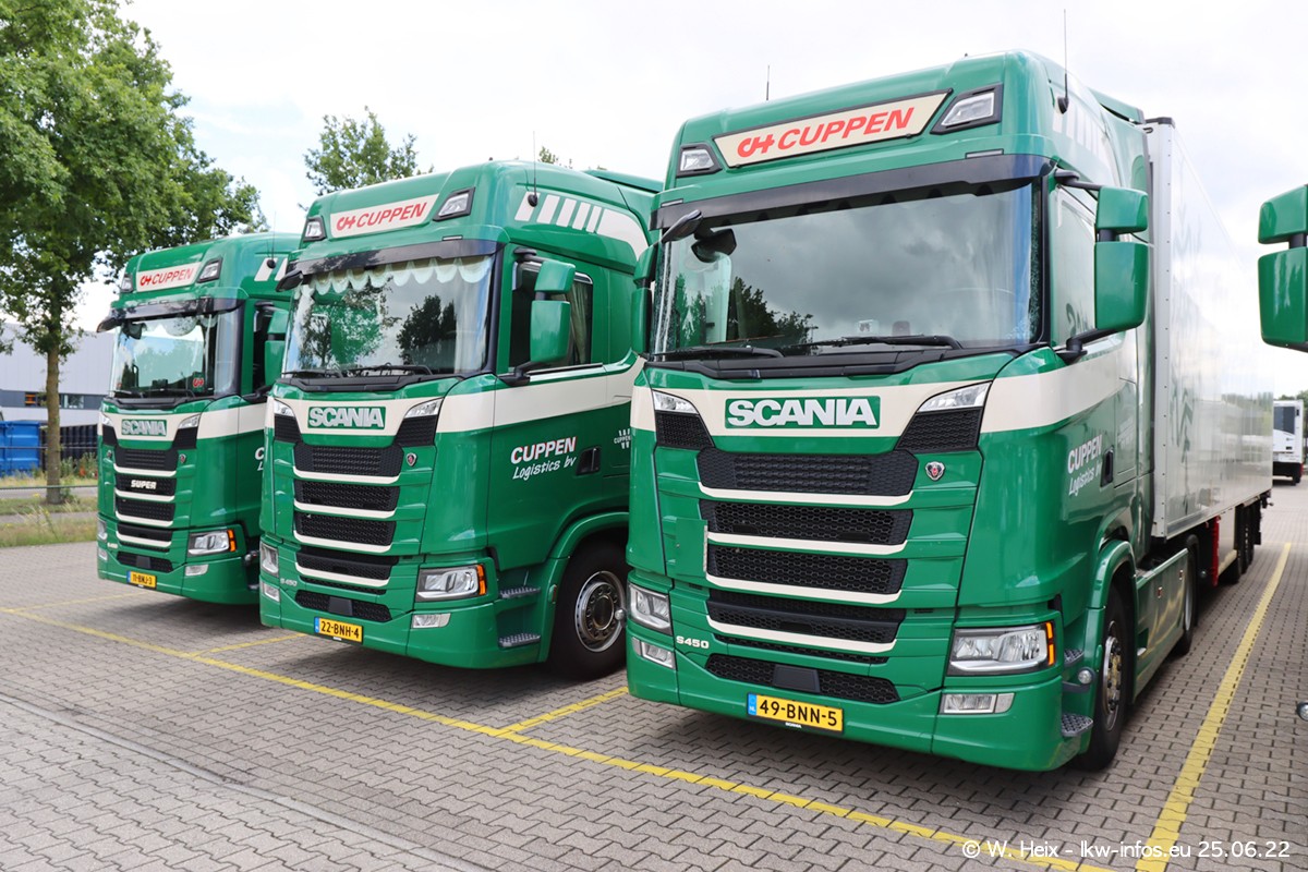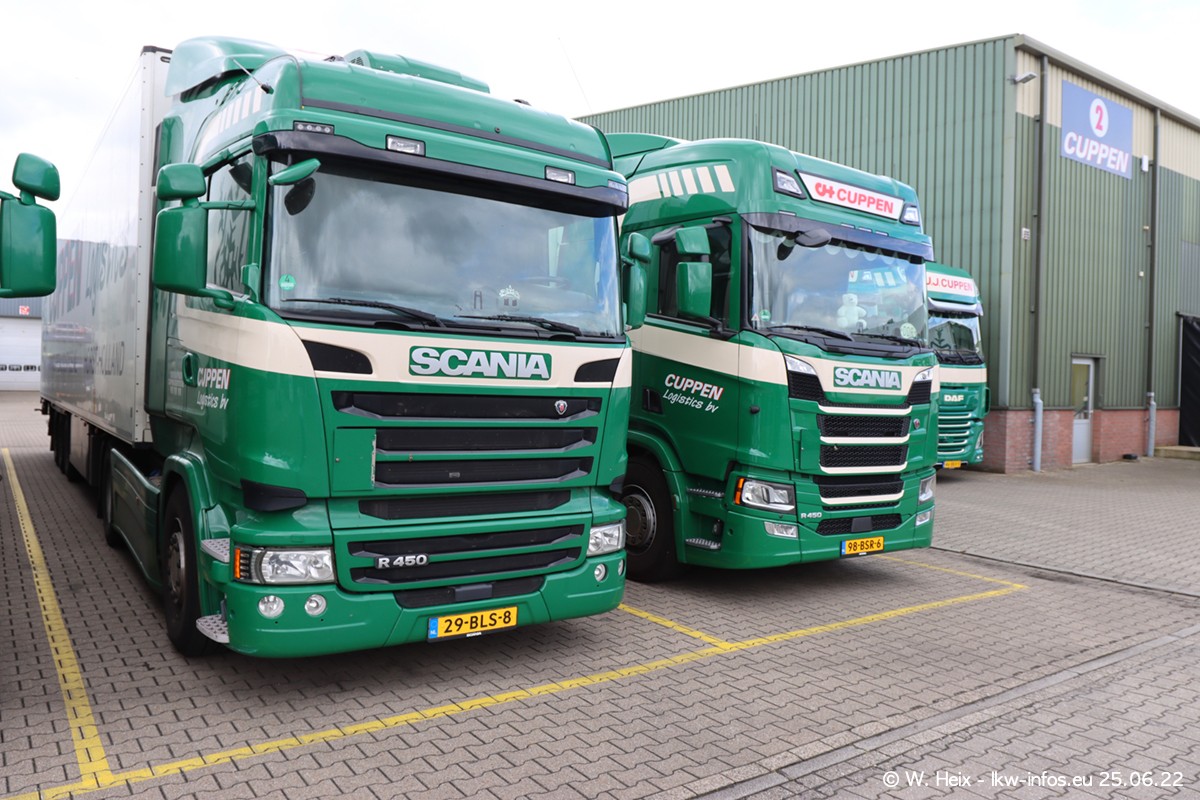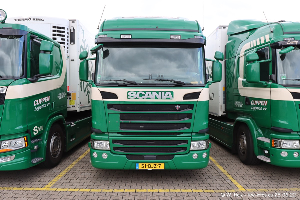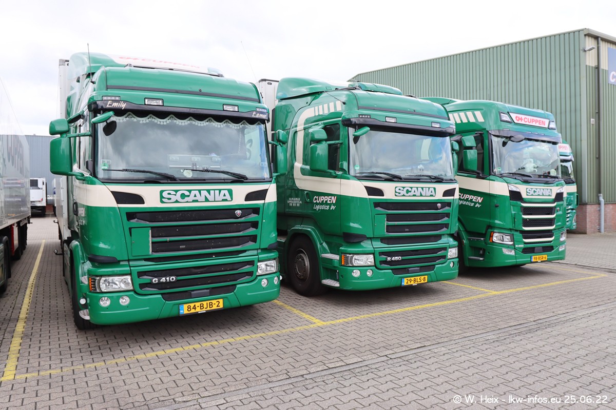 Neu im Fuhrpark ist ein weiterer SCANIA R 450 NextGen, zu erkennen an der Buchstabenkombination "BSZ" auf dem Kennzeichen. Weitere neue VOLVO FH5 habe ich (noch) nicht gesehen. Den Mercedes-Benz Actros vom Charter Michael Knaab konnte ich nochmals von allen Seiten frisch gewaschen auf dem Gelände fotografieren. Der Rest der Fahrzeuge ist bekannt.