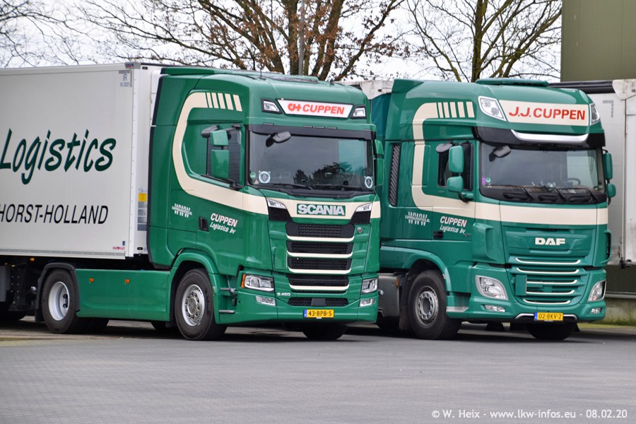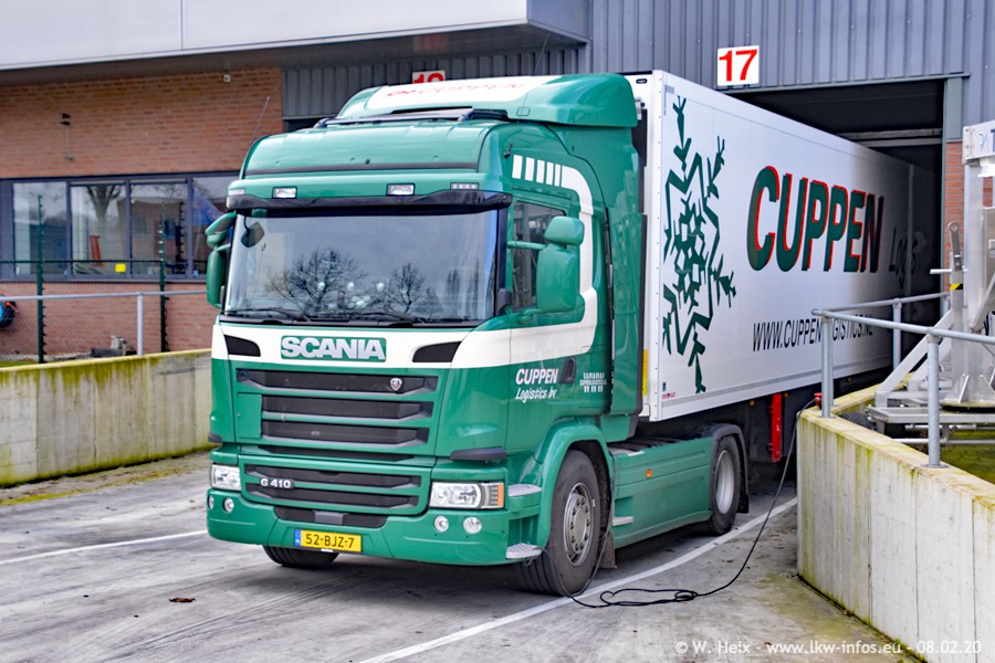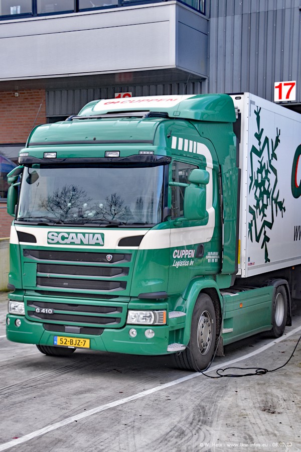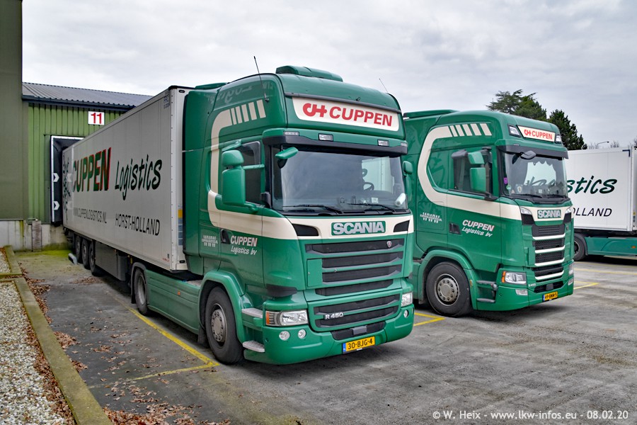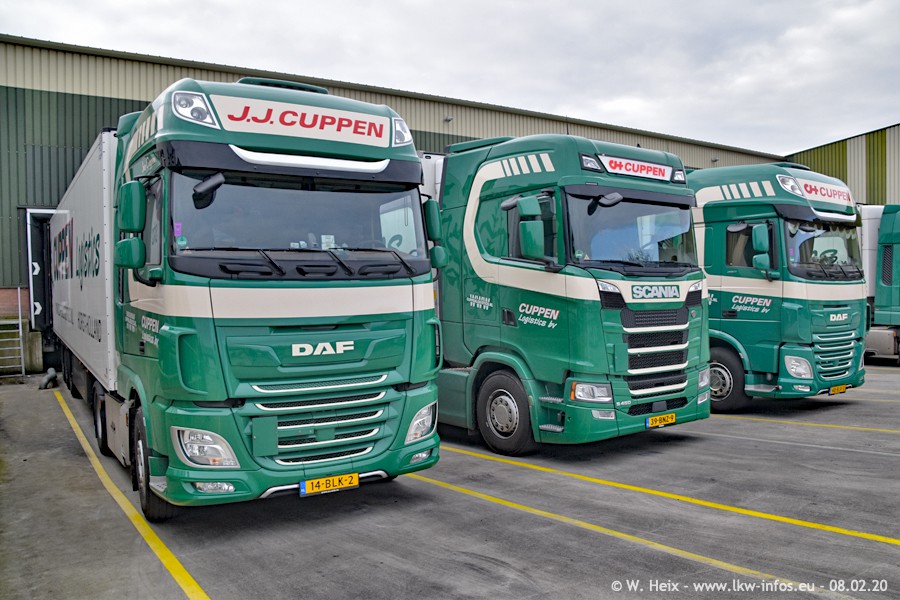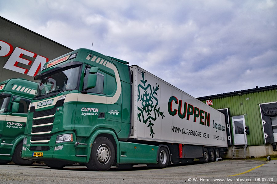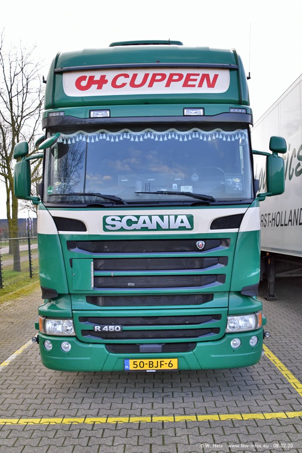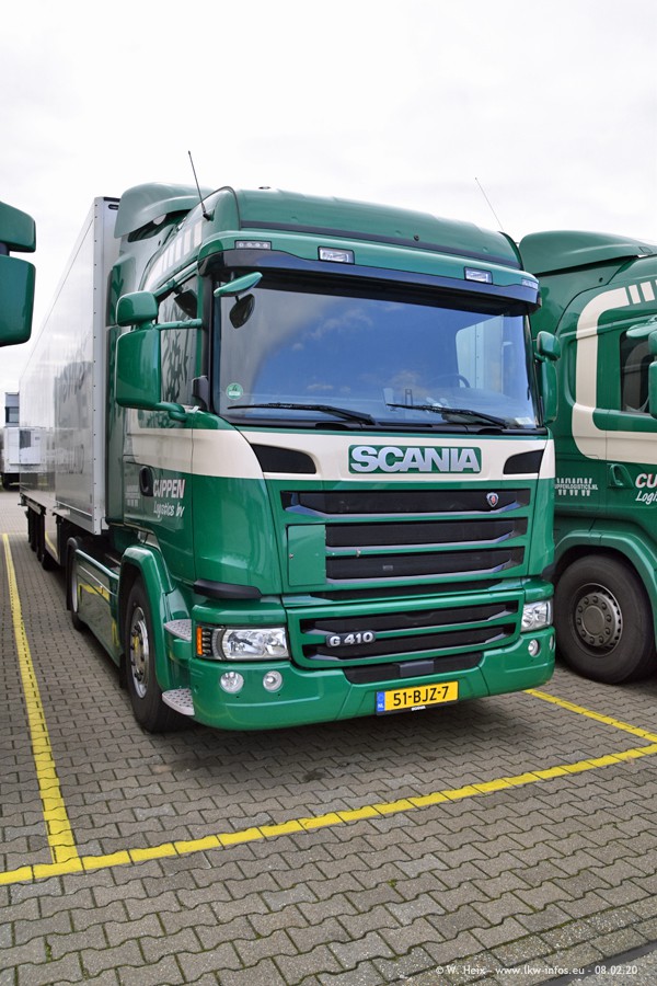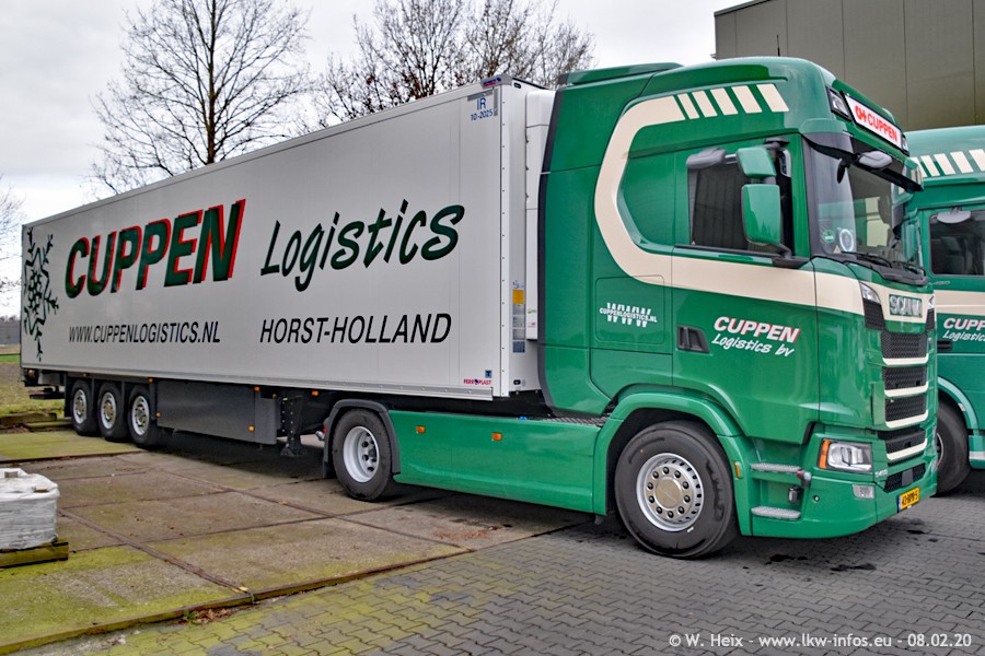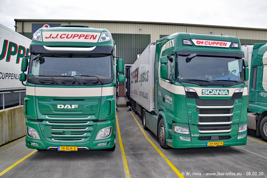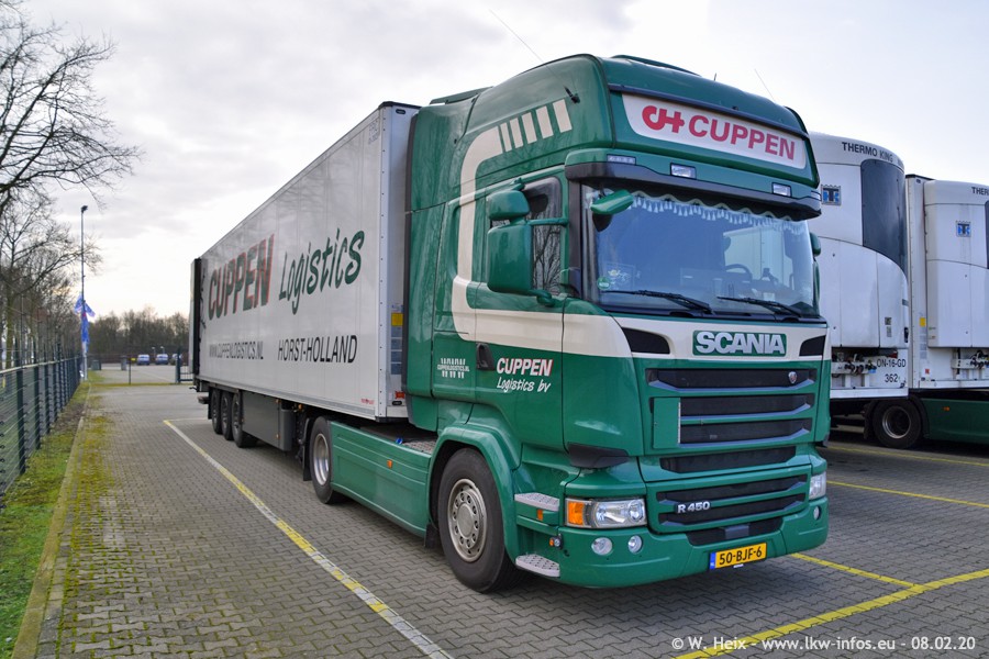 Kurz nach meinem ersten Besuch dieses Jahres im Januar hat Cuppen Logistics zwei weitere neue SCANIA S 450 NextGen bekommen. Die sind zu erkennen an der Buchstabenkombination "BPB" auf dem Kennzeichen. Stand Februar 2020 besteht der Fuhrpark aus 40 LKW der Marken DAF, SCANIA und VOLVO. Dazu kommen noch 5 Charter (Subunternehmer). Zwei davon stehen immer fest auf dem Gelände (v. d. Gun und Knoops). Diese habe ich aber nicht mit fotografiert.