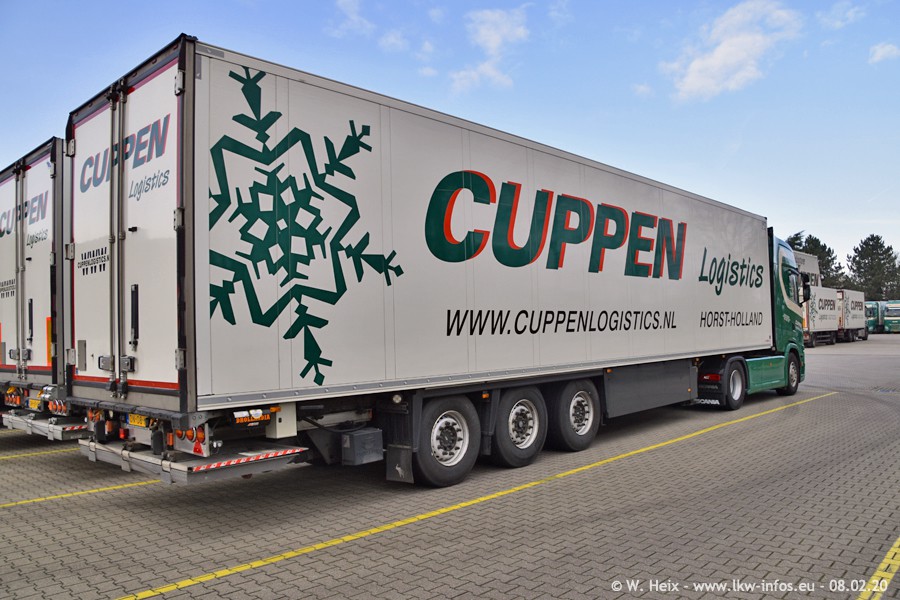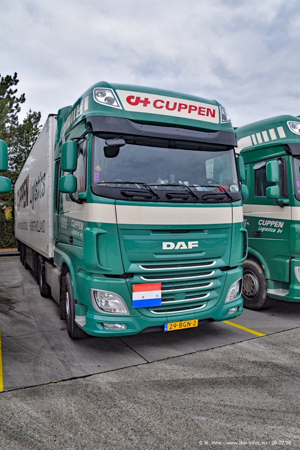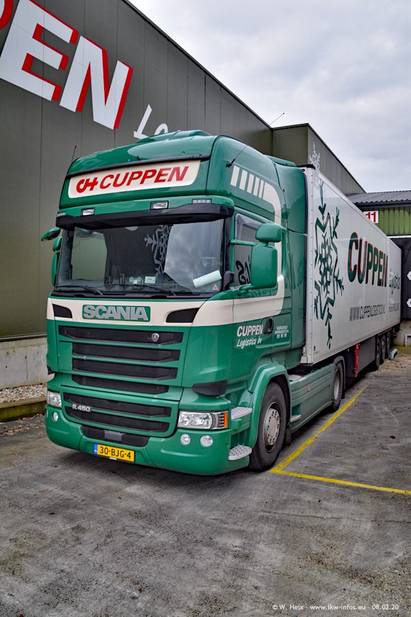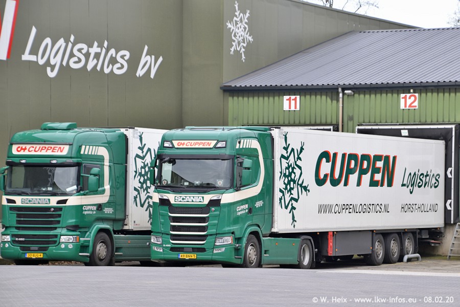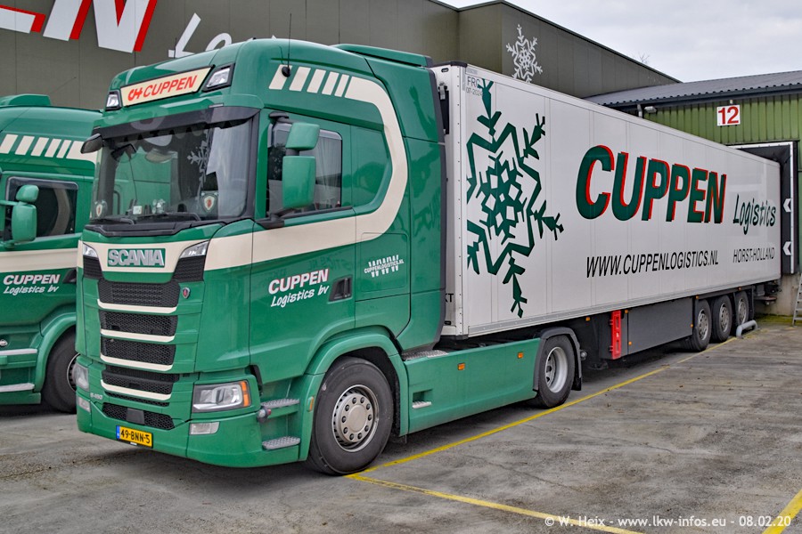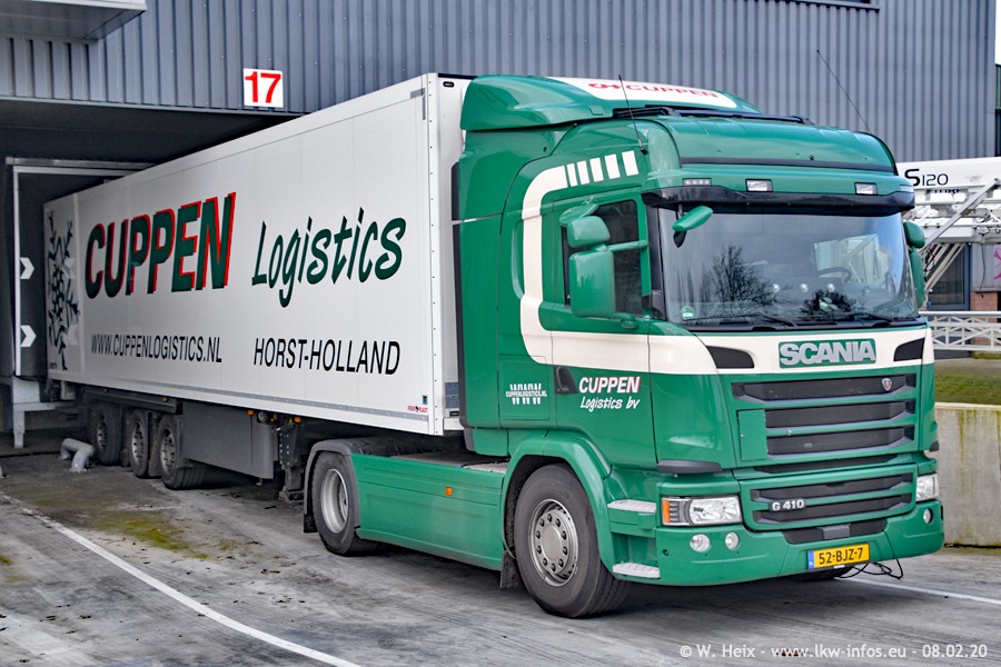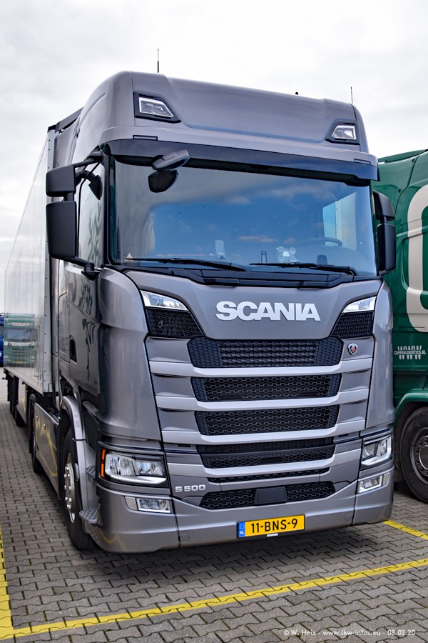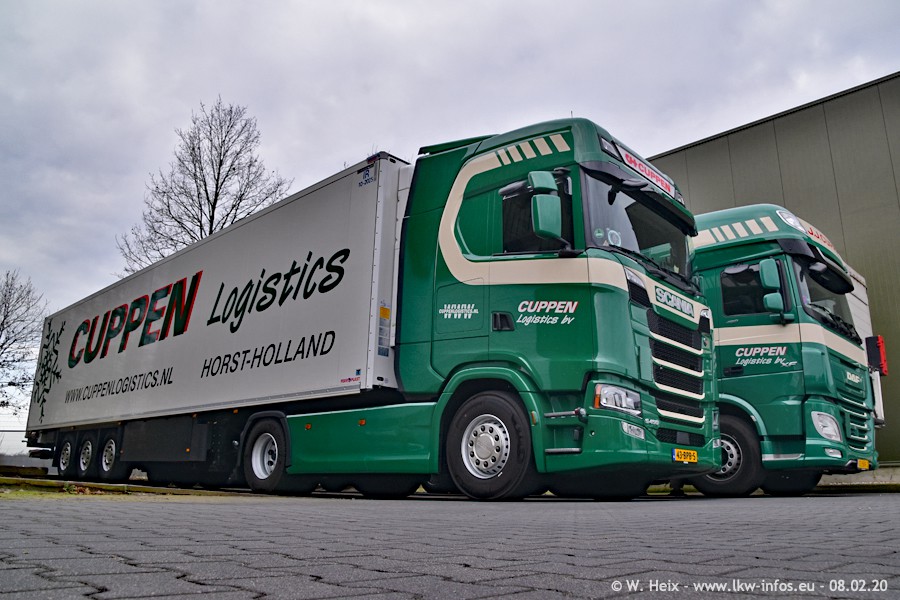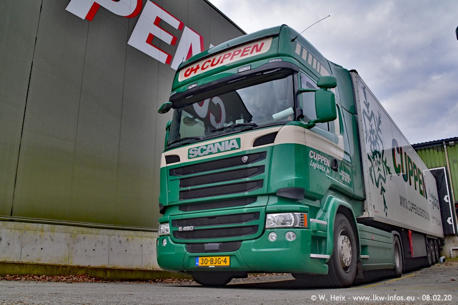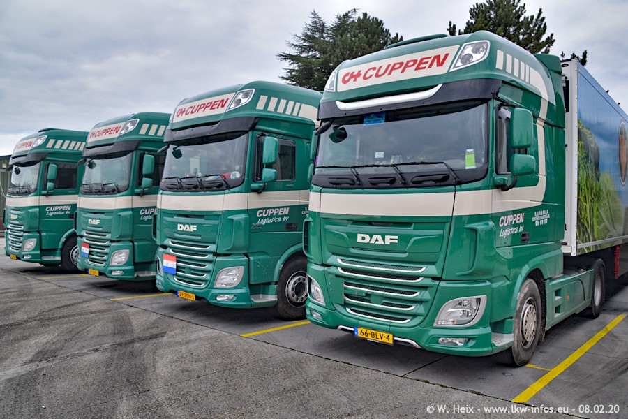 Kurz nach meinem ersten Besuch dieses Jahres im Januar hat Cuppen Logistics zwei weitere neue SCANIA S 450 NextGen bekommen. Die sind zu erkennen an der Buchstabenkombination "BPB" auf dem Kennzeichen. Stand Februar 2020 besteht der Fuhrpark aus 40 LKW der Marken DAF, SCANIA und VOLVO. Dazu kommen noch 5 Charter (Subunternehmer). Zwei davon stehen immer fest auf dem Gelände (v. d. Gun und Knoops). Diese habe ich aber nicht mit fotografiert.