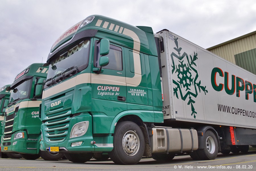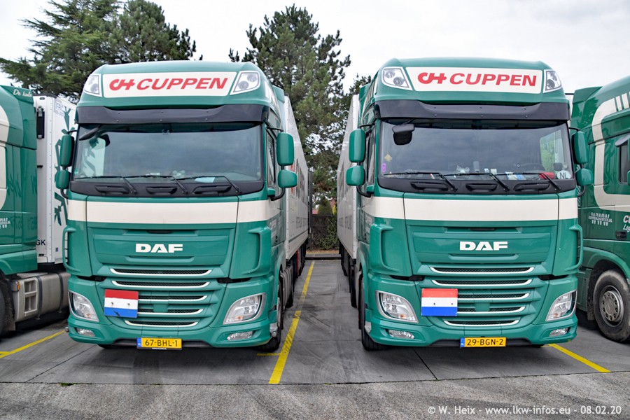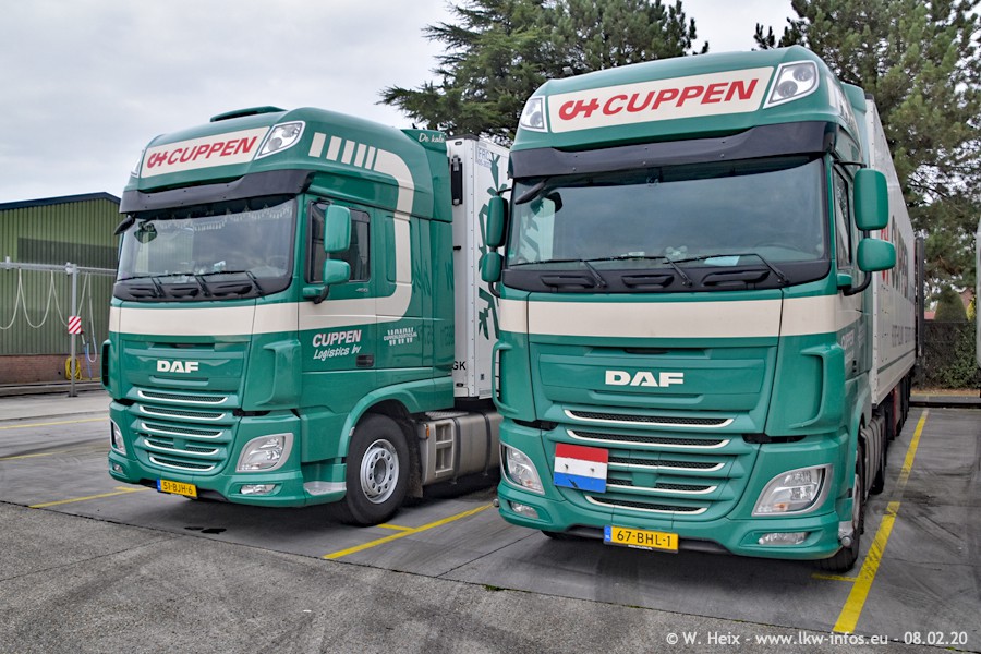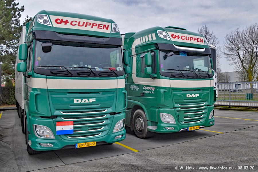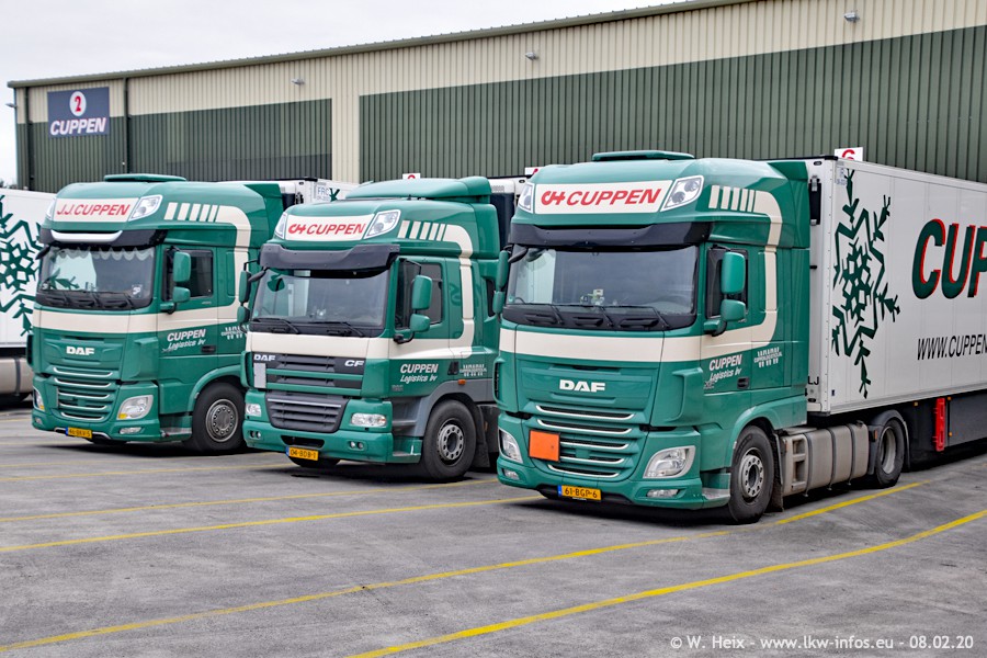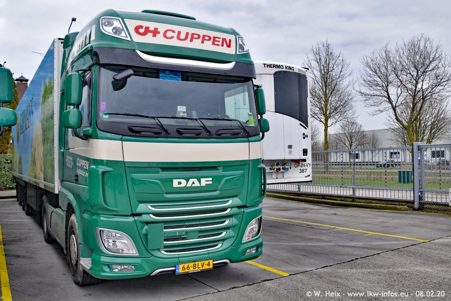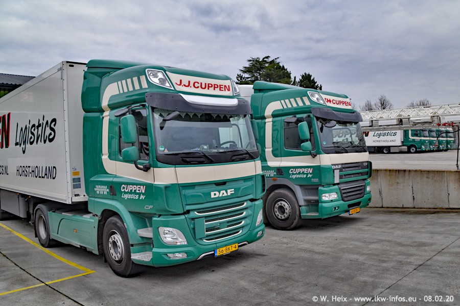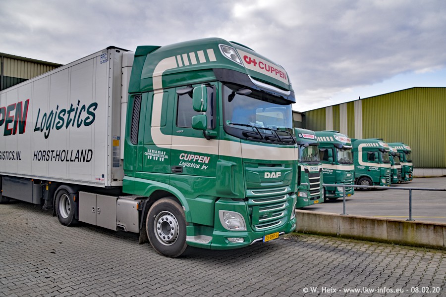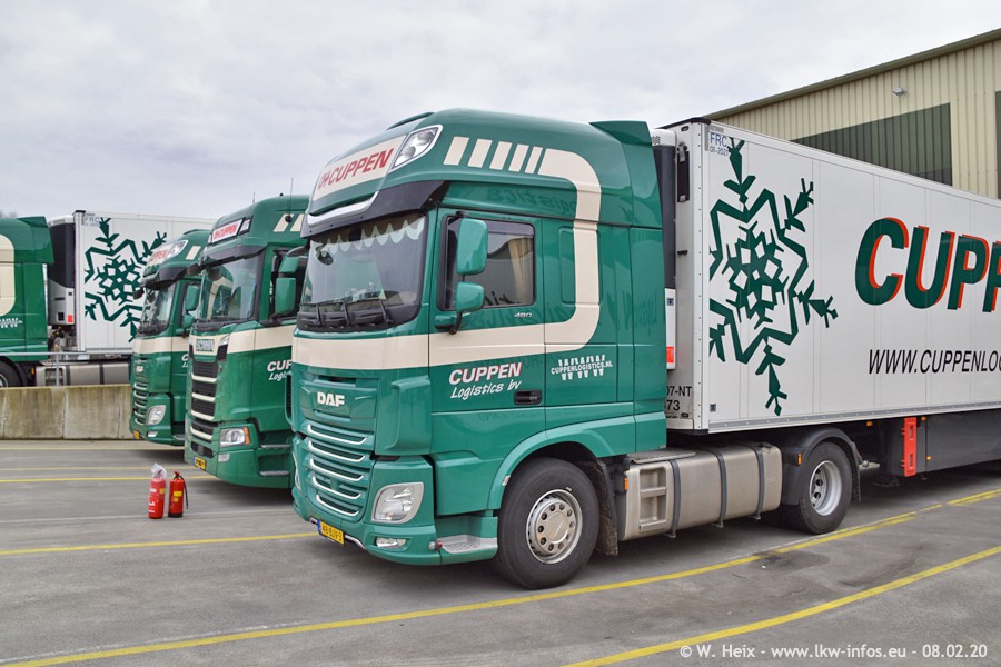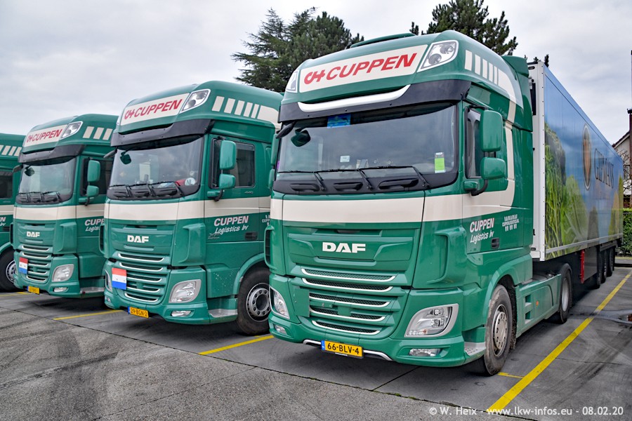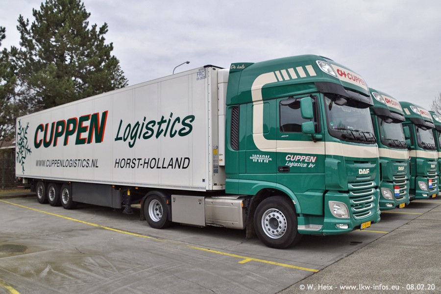 Kurz nach meinem ersten Besuch dieses Jahres im Januar hat Cuppen Logistics zwei weitere neue SCANIA S 450 NextGen bekommen. Die sind zu erkennen an der Buchstabenkombination "BPB" auf dem Kennzeichen. Stand Februar 2020 besteht der Fuhrpark aus 40 LKW der Marken DAF, SCANIA und VOLVO. Dazu kommen noch 5 Charter (Subunternehmer). Zwei davon stehen immer fest auf dem Gelände (v. d. Gun und Knoops). Diese habe ich aber nicht mit fotografiert.