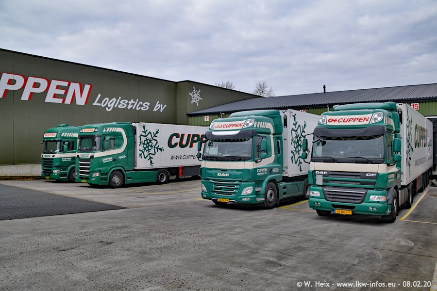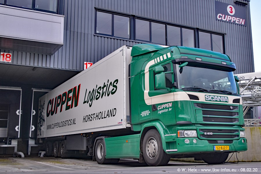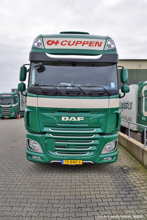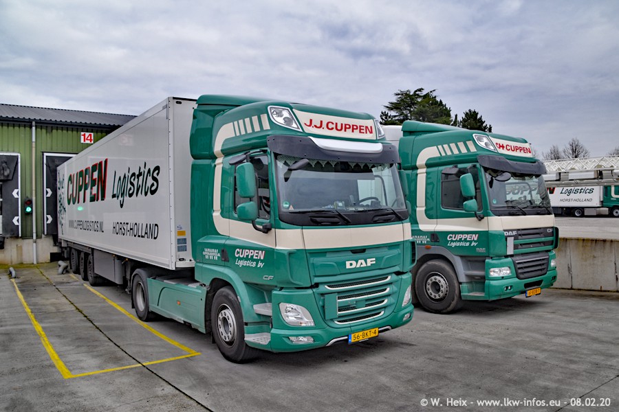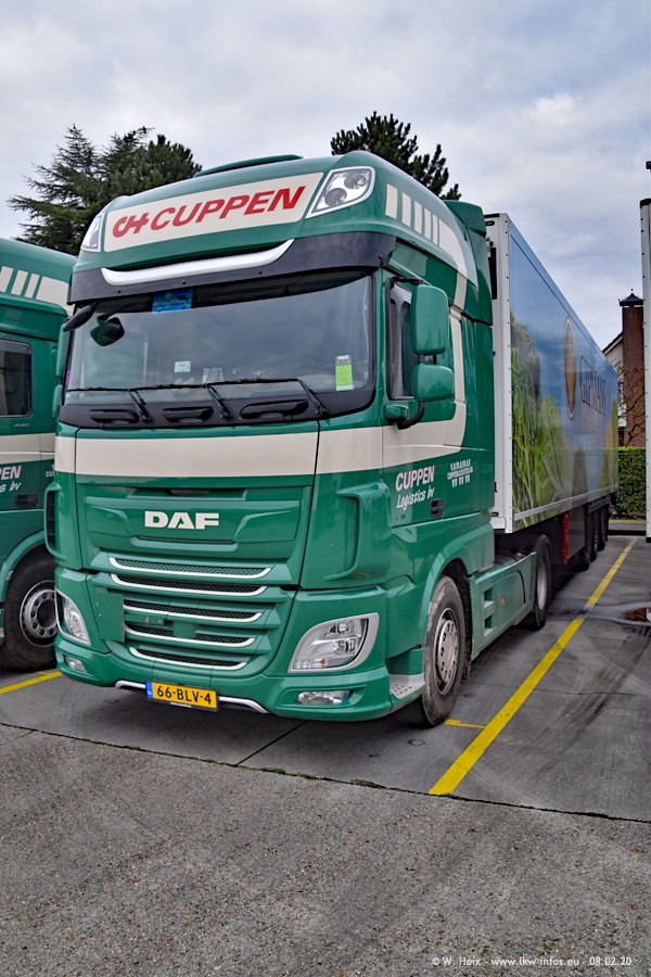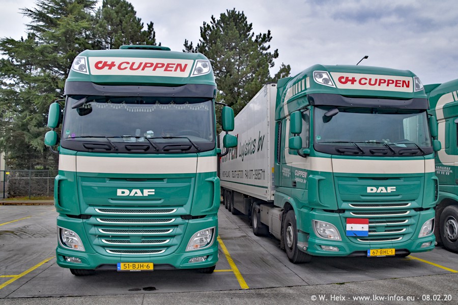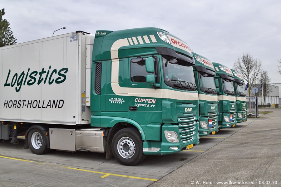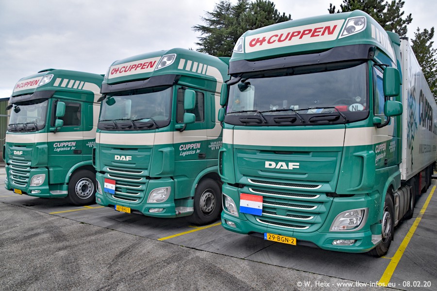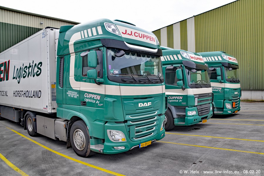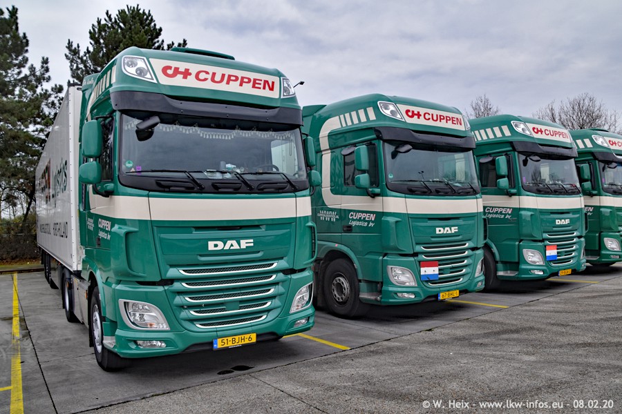 Kurz nach meinem ersten Besuch dieses Jahres im Januar hat Cuppen Logistics zwei weitere neue SCANIA S 450 NextGen bekommen. Die sind zu erkennen an der Buchstabenkombination "BPB" auf dem Kennzeichen. Stand Februar 2020 besteht der Fuhrpark aus 40 LKW der Marken DAF, SCANIA und VOLVO. Dazu kommen noch 5 Charter (Subunternehmer). Zwei davon stehen immer fest auf dem Gelände (v. d. Gun und Knoops). Diese habe ich aber nicht mit fotografiert.