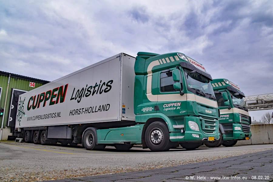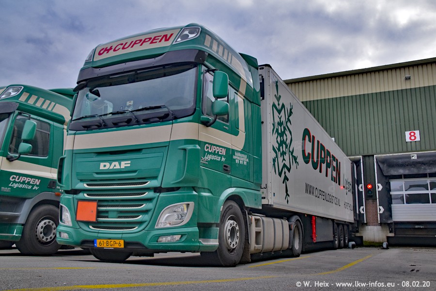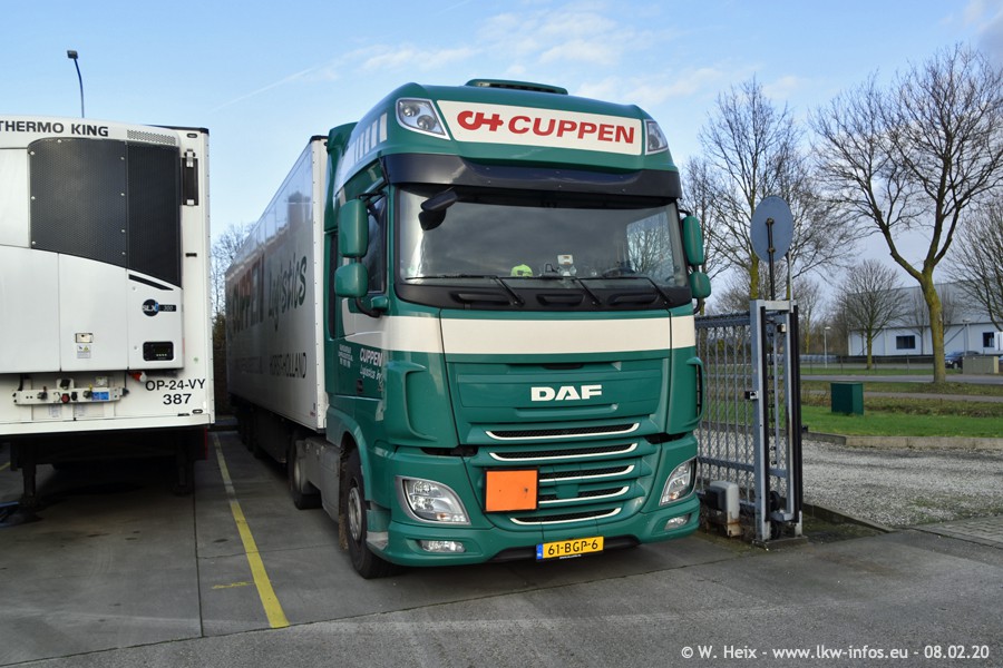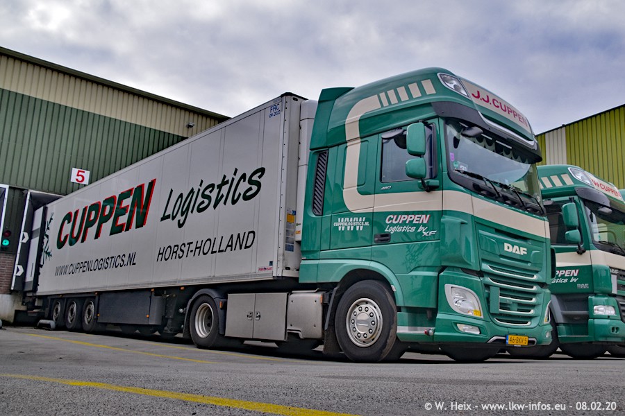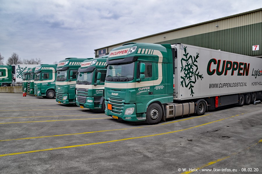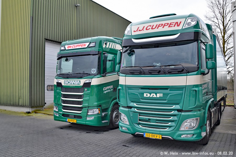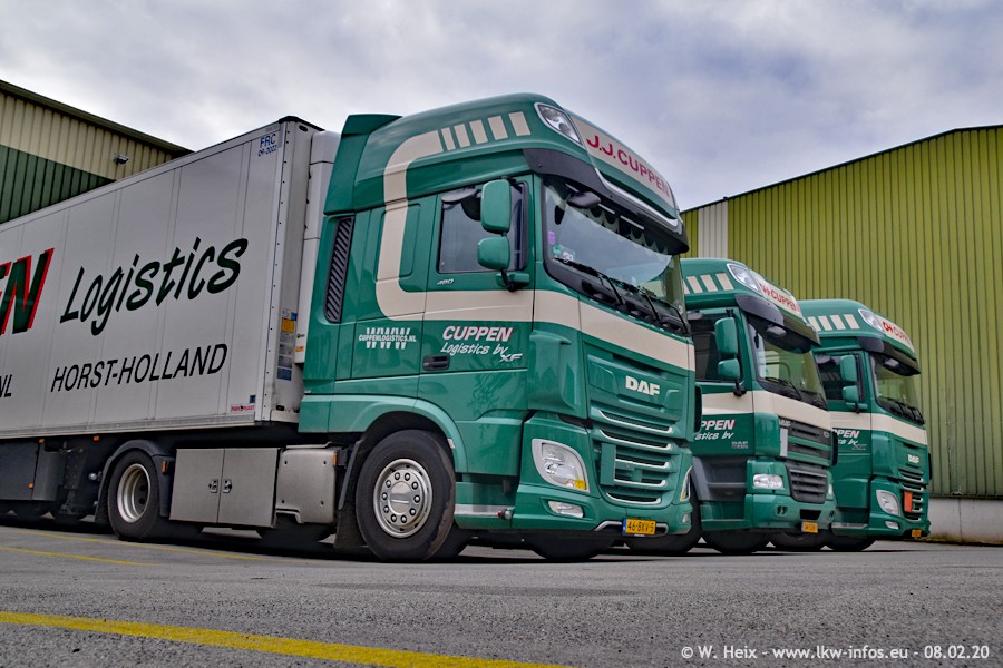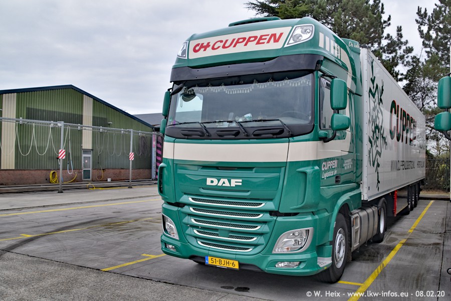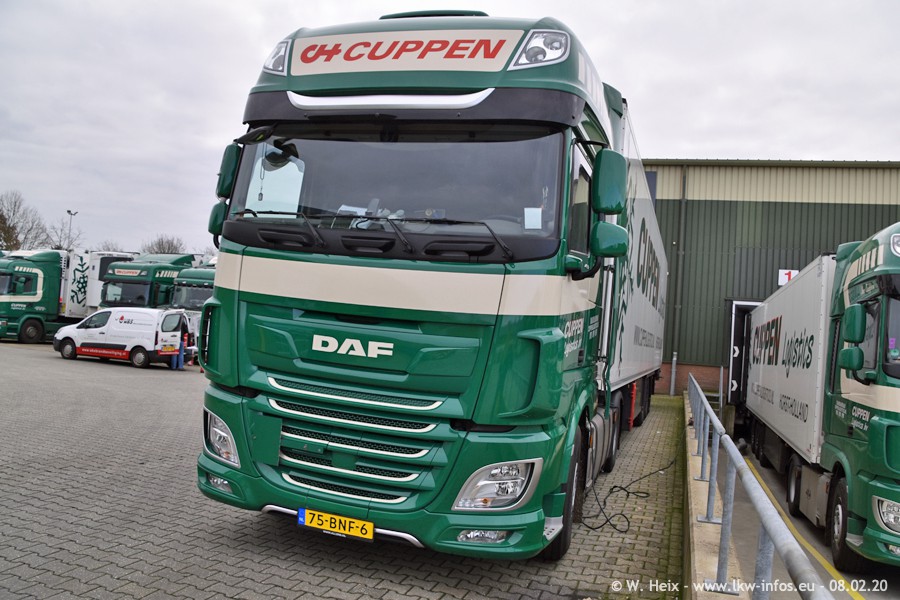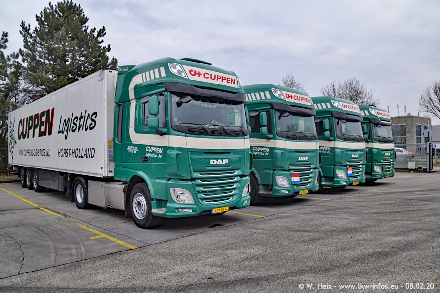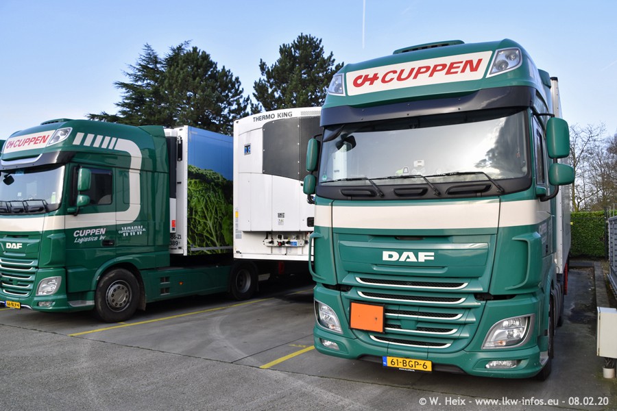 Kurz nach meinem ersten Besuch dieses Jahres im Januar hat Cuppen Logistics zwei weitere neue SCANIA S 450 NextGen bekommen. Die sind zu erkennen an der Buchstabenkombination "BPB" auf dem Kennzeichen. Stand Februar 2020 besteht der Fuhrpark aus 40 LKW der Marken DAF, SCANIA und VOLVO. Dazu kommen noch 5 Charter (Subunternehmer). Zwei davon stehen immer fest auf dem Gelände (v. d. Gun und Knoops). Diese habe ich aber nicht mit fotografiert.