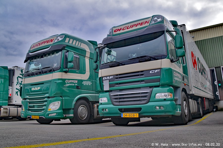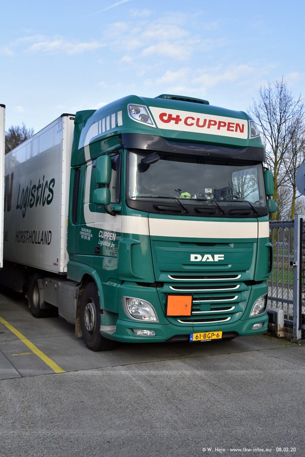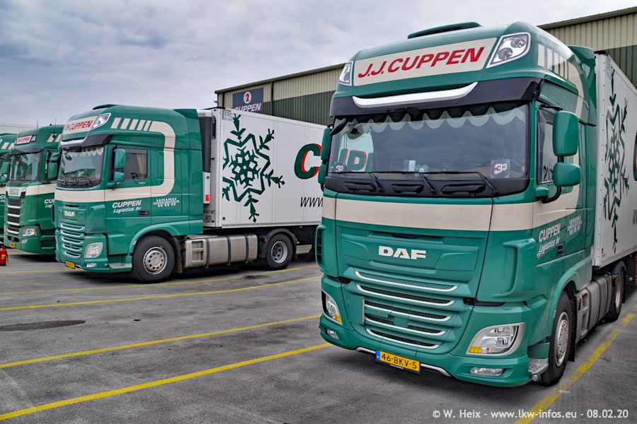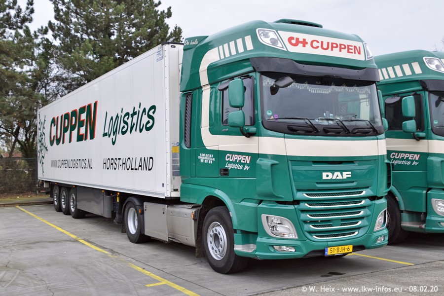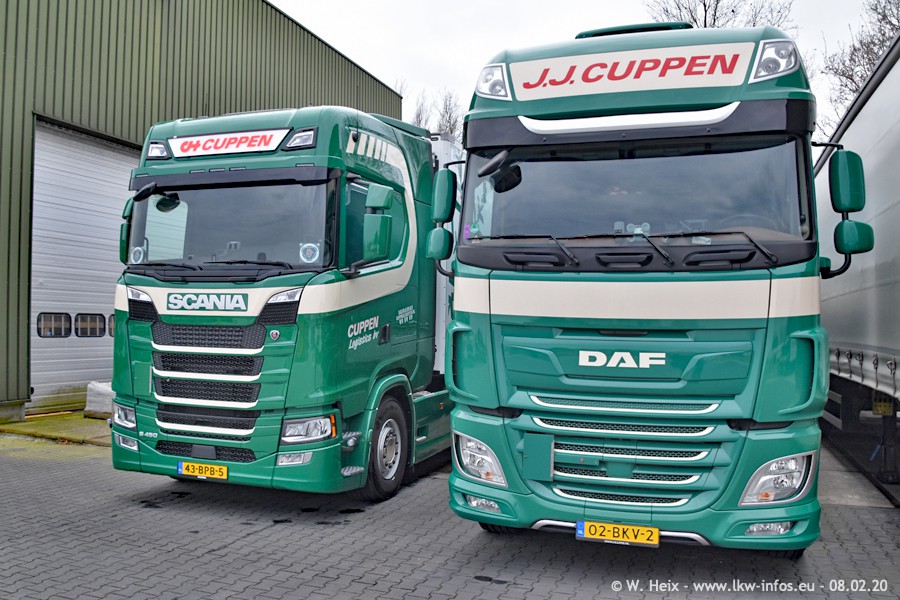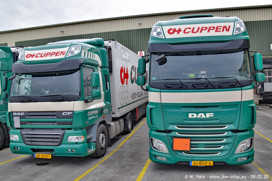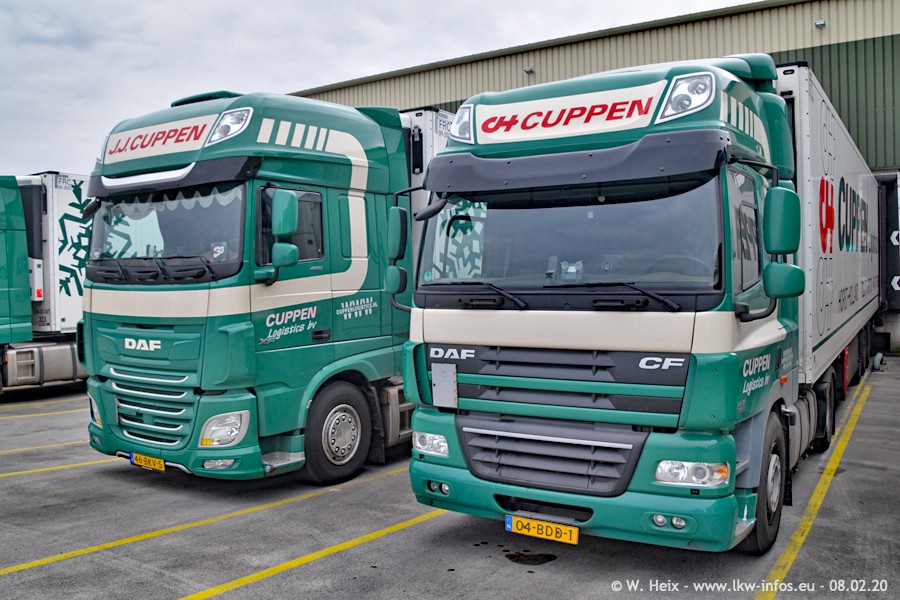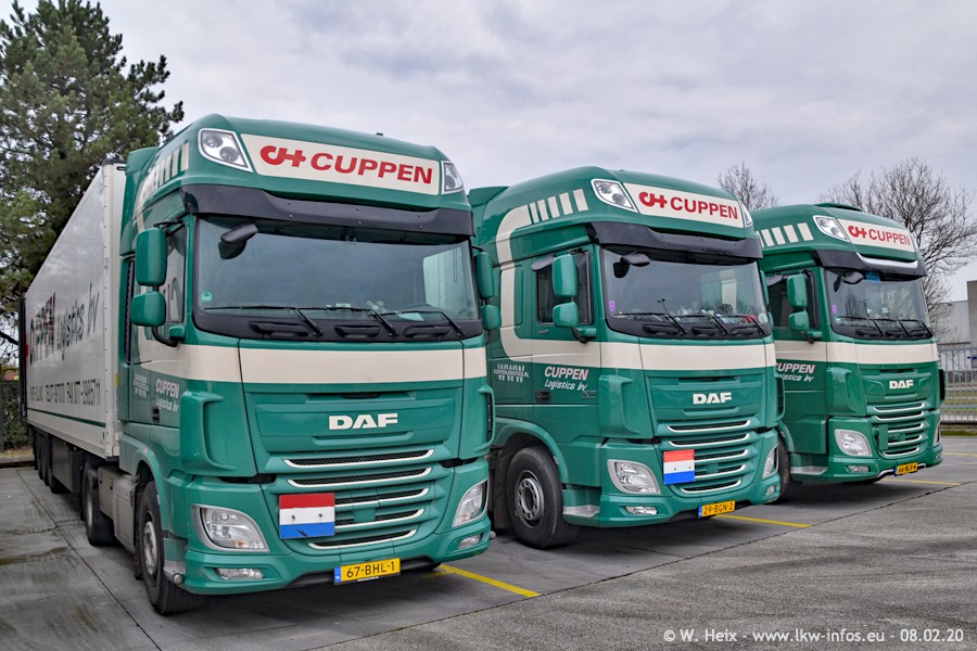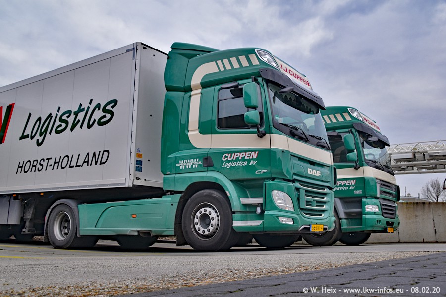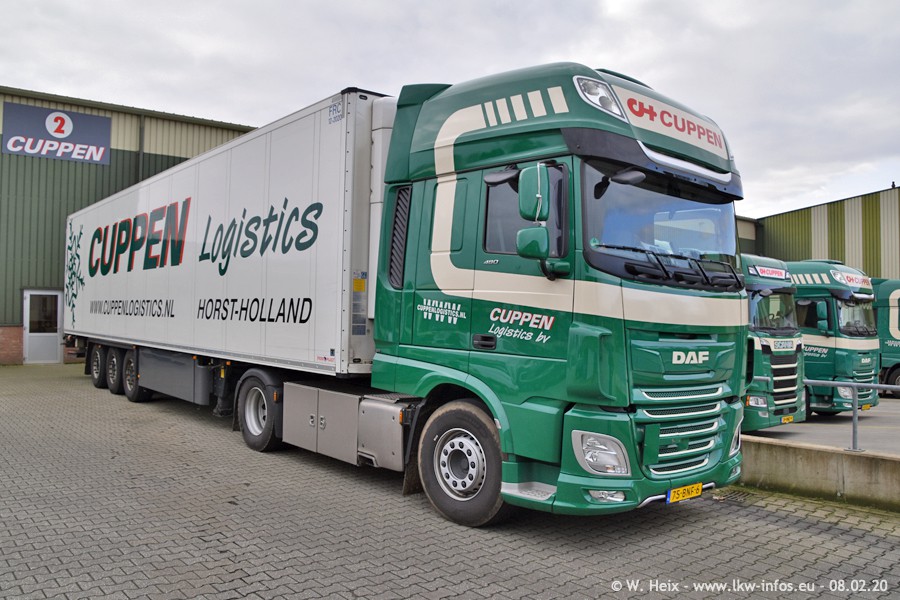 Kurz nach meinem ersten Besuch dieses Jahres im Januar hat Cuppen Logistics zwei weitere neue SCANIA S 450 NextGen bekommen. Die sind zu erkennen an der Buchstabenkombination "BPB" auf dem Kennzeichen. Stand Februar 2020 besteht der Fuhrpark aus 40 LKW der Marken DAF, SCANIA und VOLVO. Dazu kommen noch 5 Charter (Subunternehmer). Zwei davon stehen immer fest auf dem Gelände (v. d. Gun und Knoops). Diese habe ich aber nicht mit fotografiert.