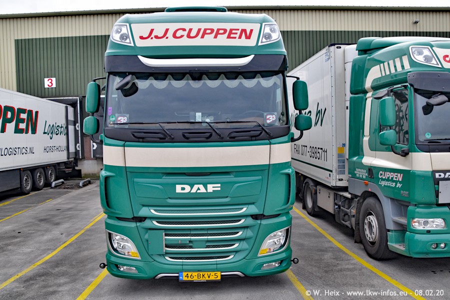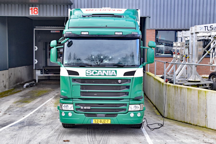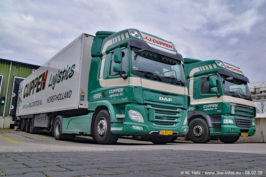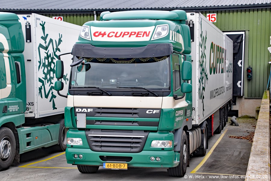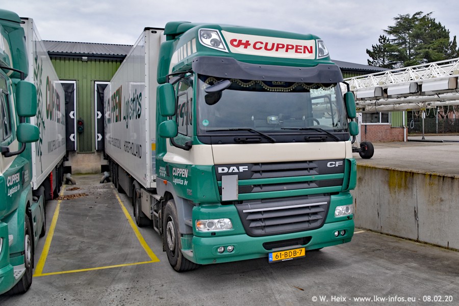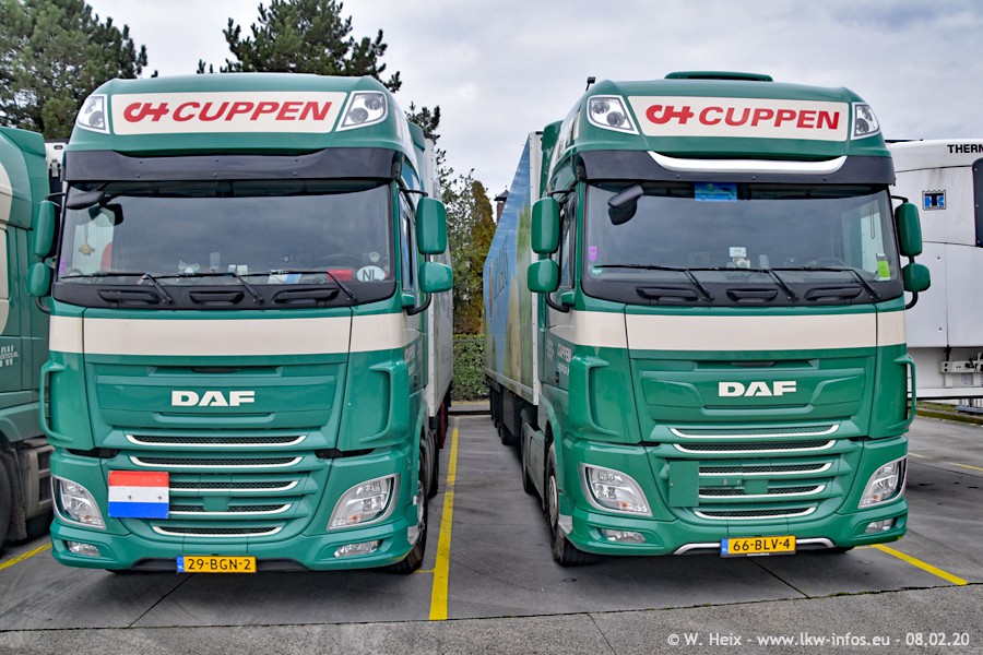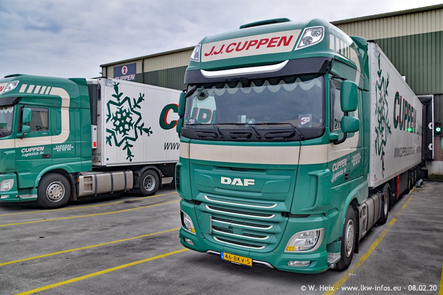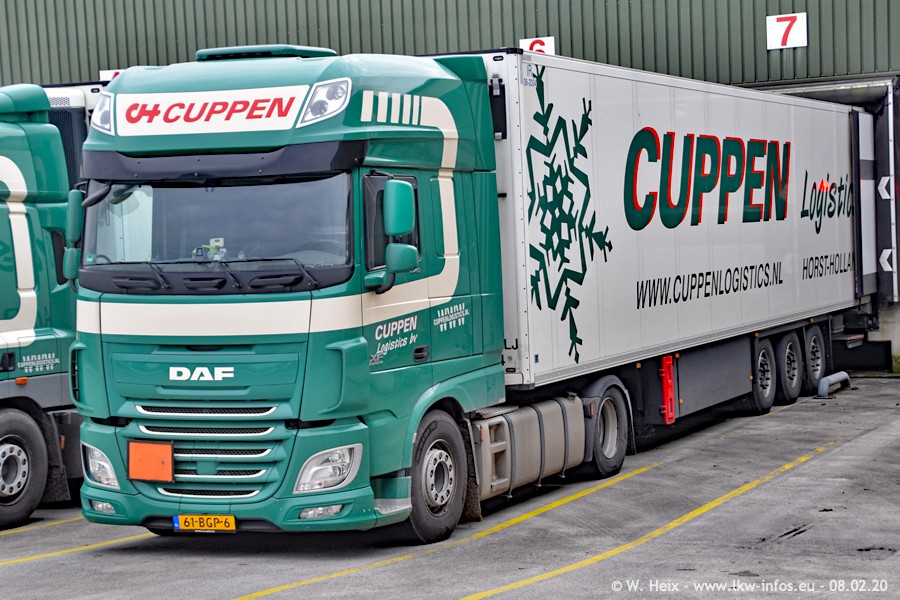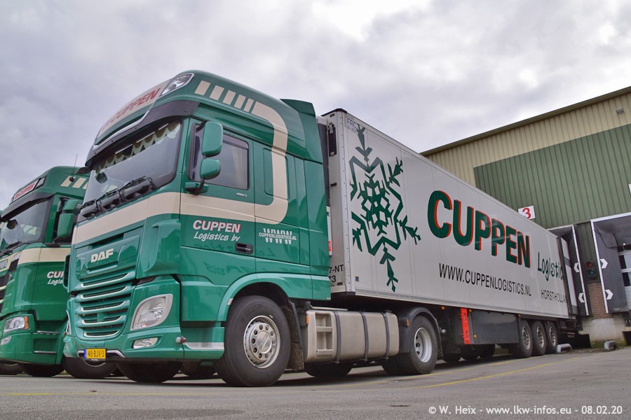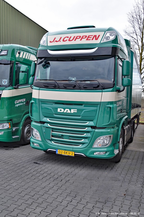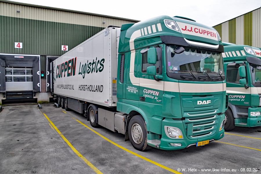 Kurz nach meinem ersten Besuch dieses Jahres im Januar hat Cuppen Logistics zwei weitere neue SCANIA S 450 NextGen bekommen. Die sind zu erkennen an der Buchstabenkombination "BPB" auf dem Kennzeichen. Stand Februar 2020 besteht der Fuhrpark aus 40 LKW der Marken DAF, SCANIA und VOLVO. Dazu kommen noch 5 Charter (Subunternehmer). Zwei davon stehen immer fest auf dem Gelände (v. d. Gun und Knoops). Diese habe ich aber nicht mit fotografiert.