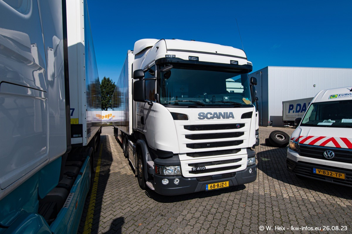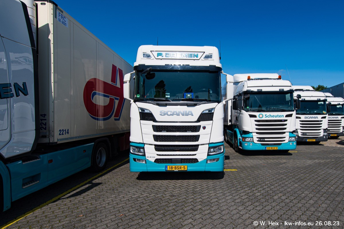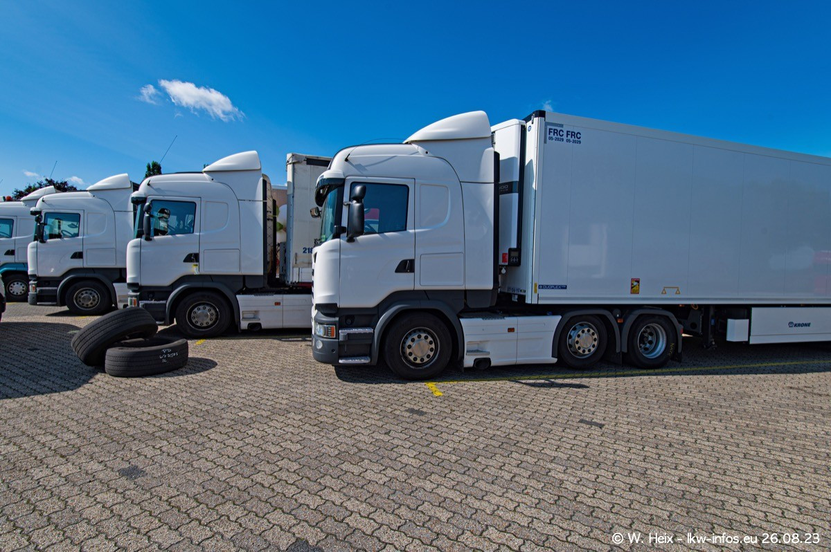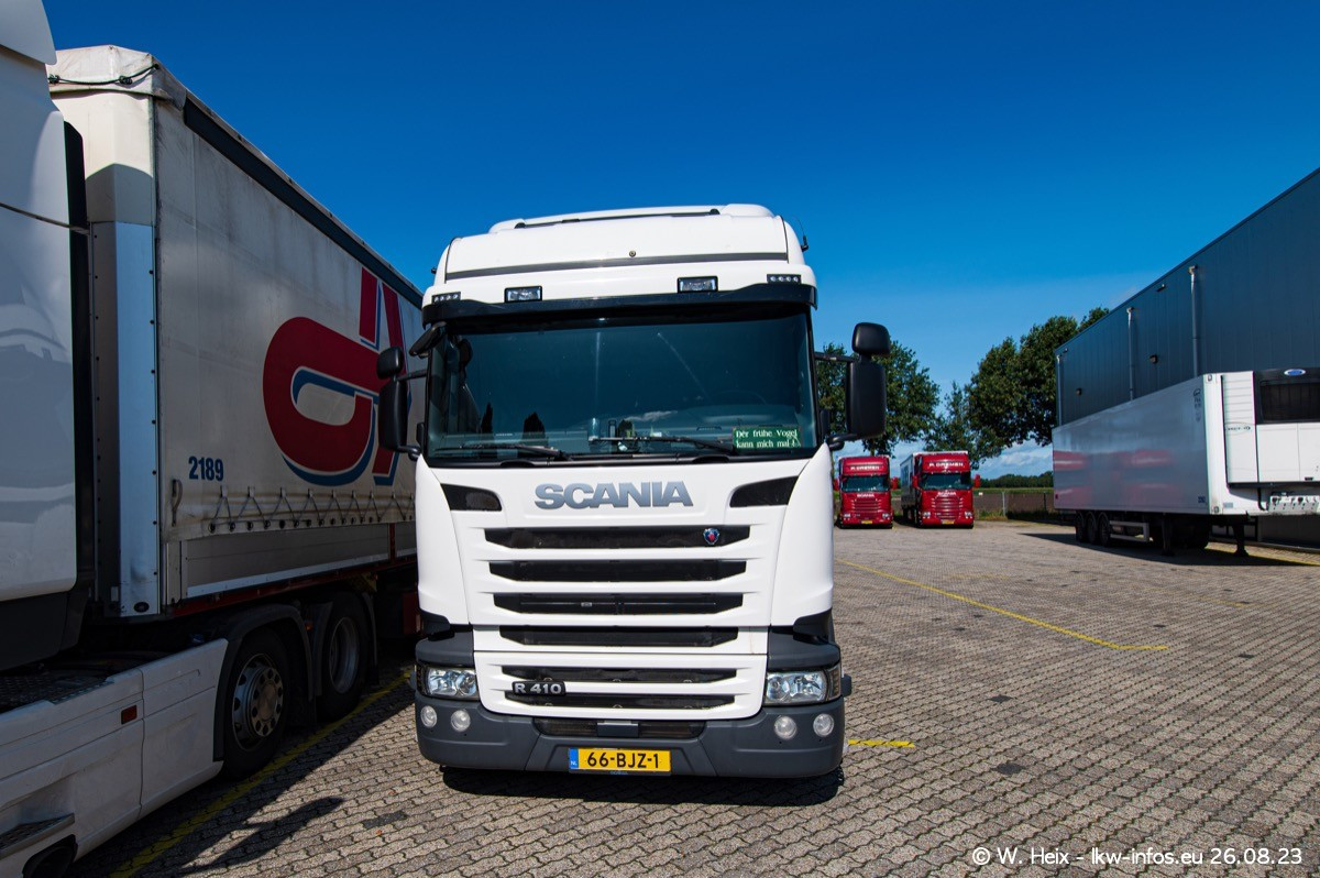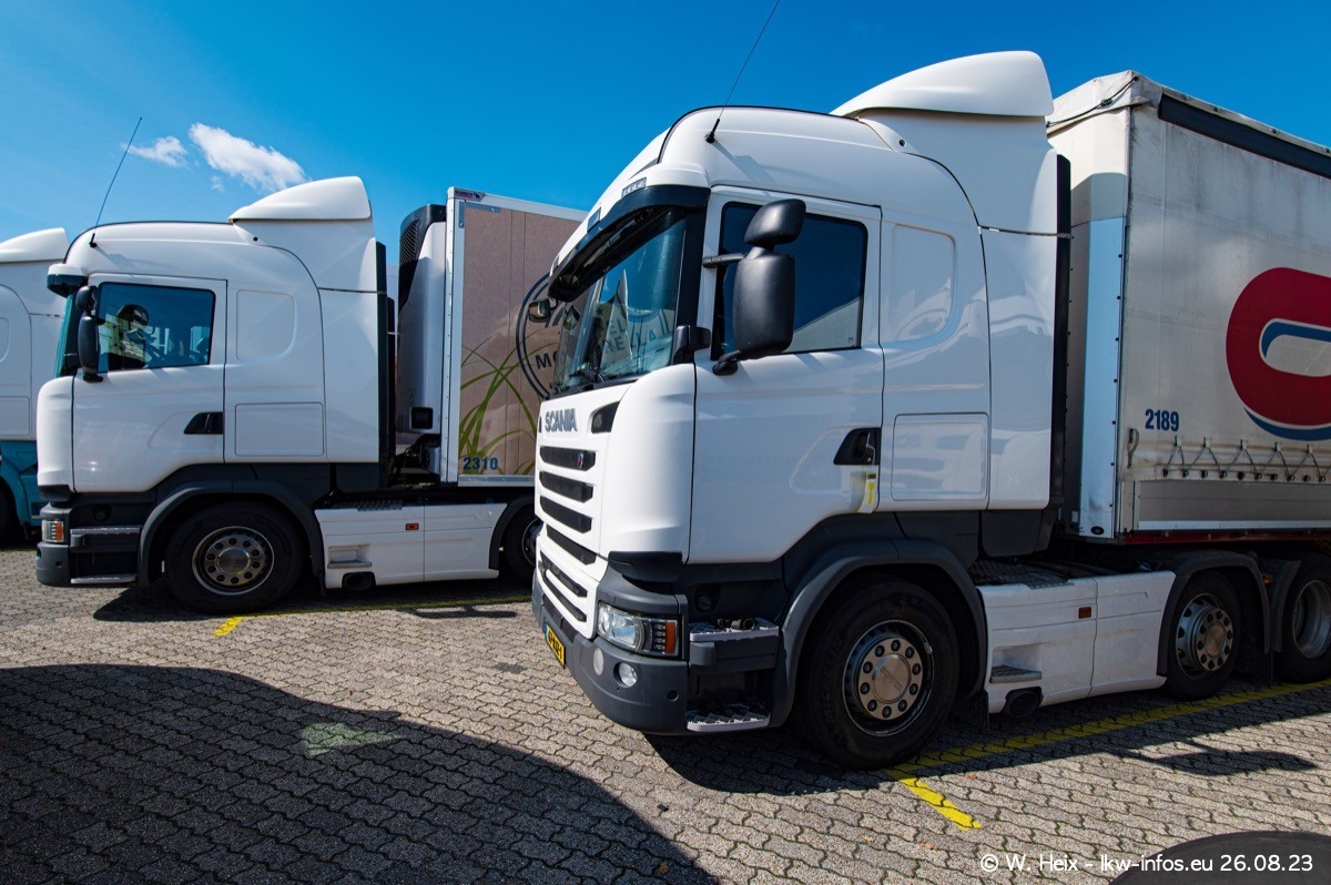 Neu im Fuhrpark sind sechs SCANIA R und S NextGen, zu erkennen an den Buchstabenkombinationen BVK und BVL auf den Kennzeichen. Vier weitere neue SCANIA R und S NextGen stehen bei einem Kunden, die konnte ich leider nicht fotografieren.