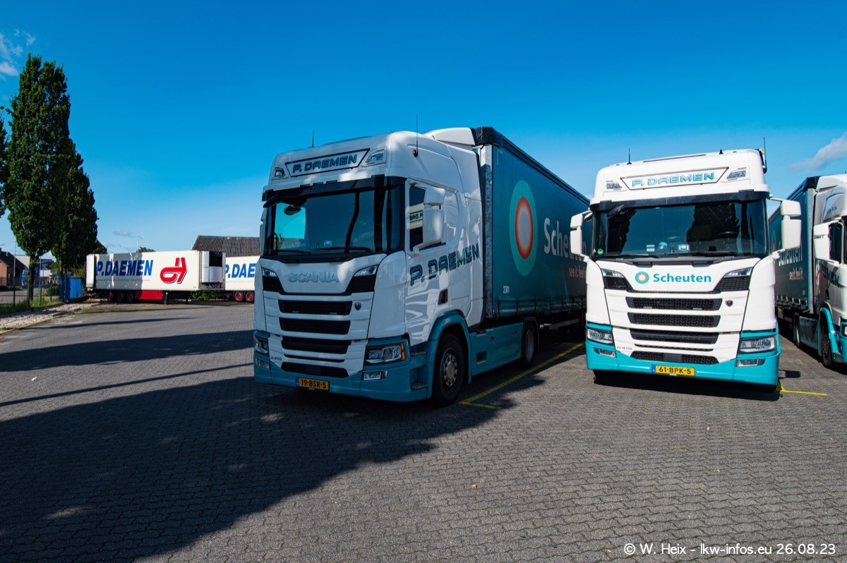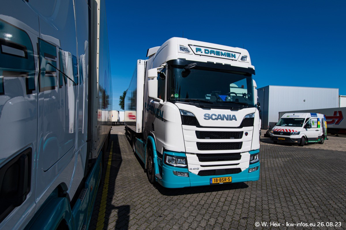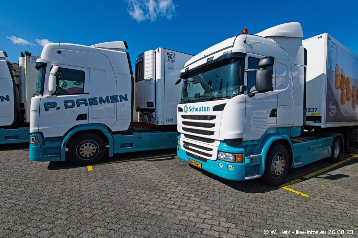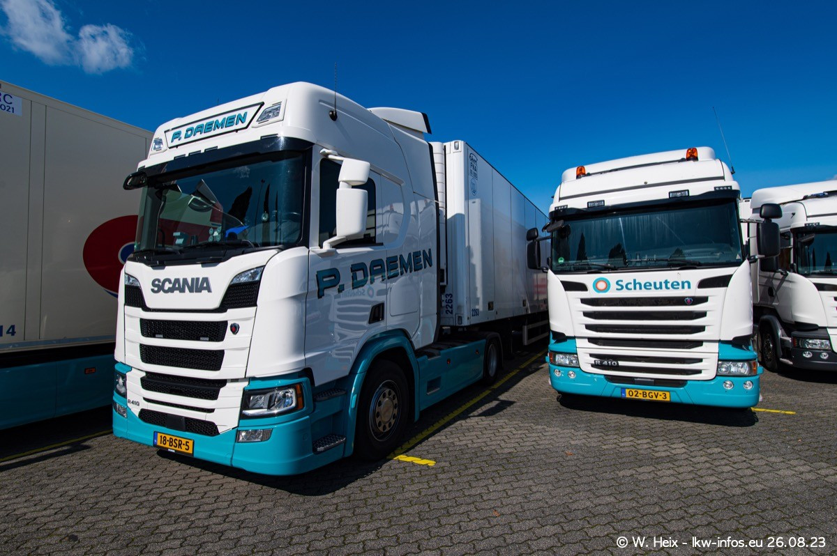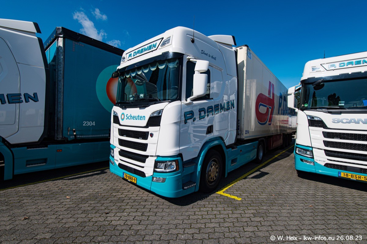 Neu im Fuhrpark sind sechs SCANIA R und S NextGen, zu erkennen an den Buchstabenkombinationen BVK und BVL auf den Kennzeichen. Vier weitere neue SCANIA R und S NextGen stehen bei einem Kunden, die konnte ich leider nicht fotografieren.