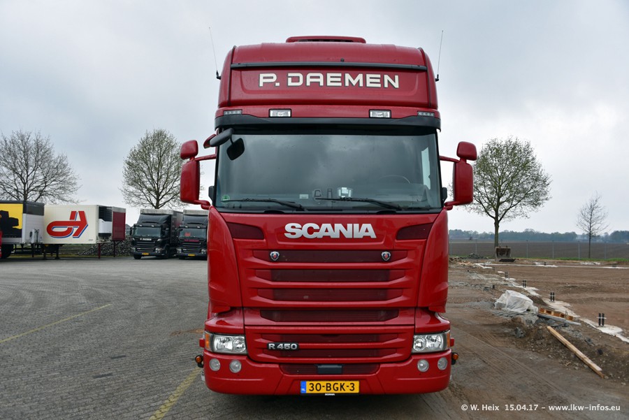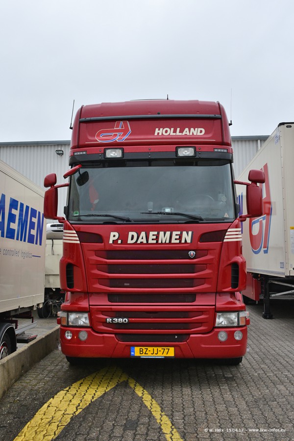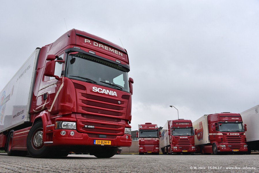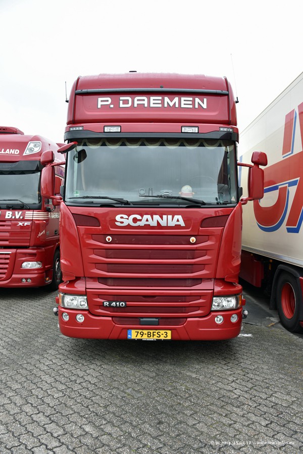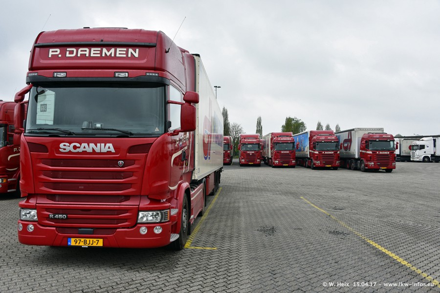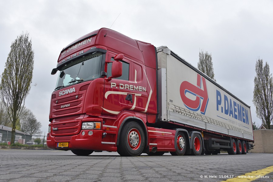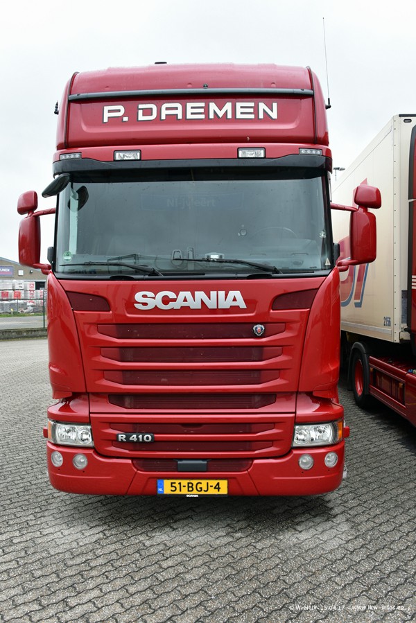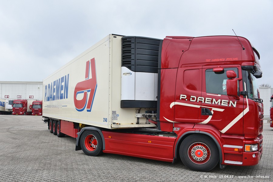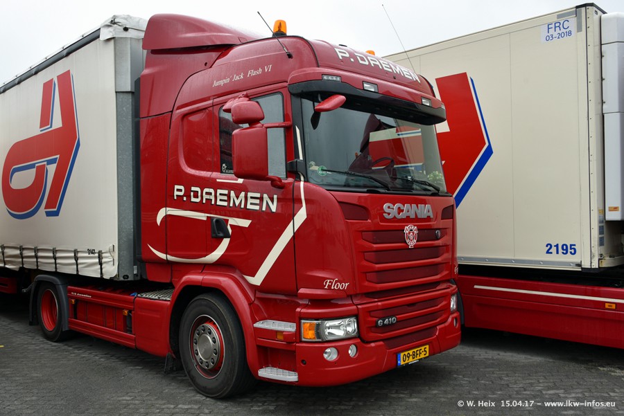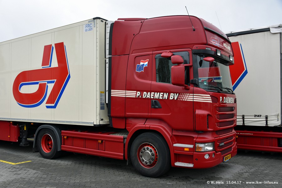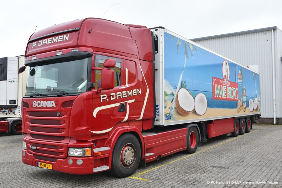 In den letzten Wochen wurde der Furhpark bei Daemen weiter modernisiert. Neu sind zwei DAF XF Euro 6 und mehrere Scania R 410 und R 450 Streamline (alte Baureihe). Und ich konnte einen neuen Auflieger entdecken, der wieder im Design eines Kunden gestaltet ist. Alle neuen Zugmaschinen sind an denn Kennzeichen mit den Buchstabenkombinationen "BJ" zu erkennen.