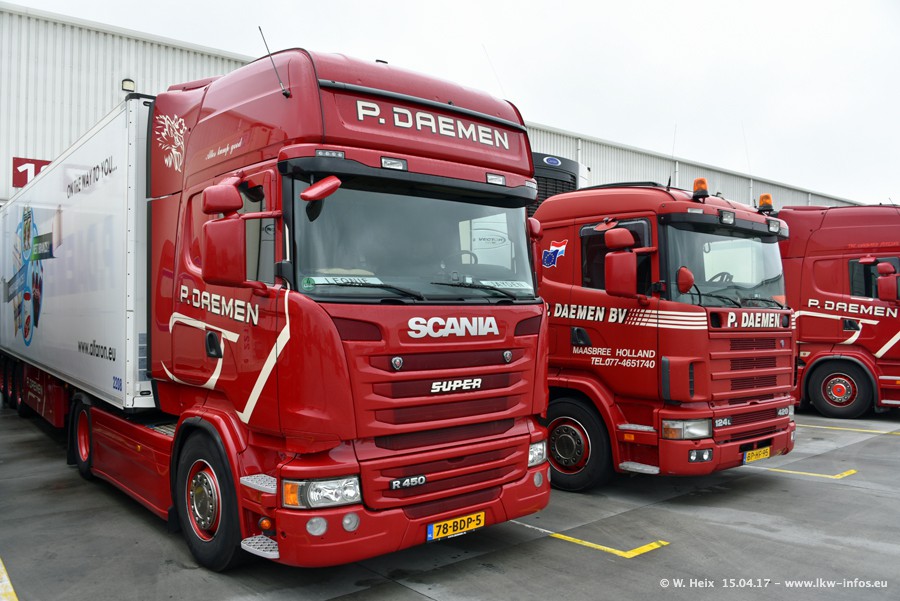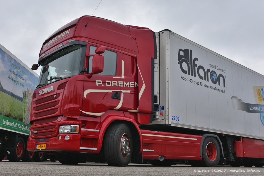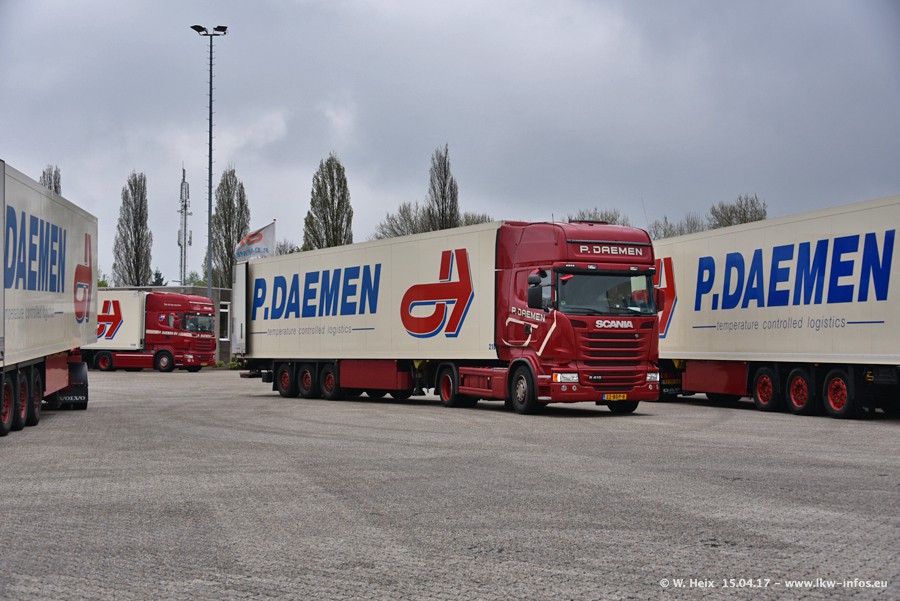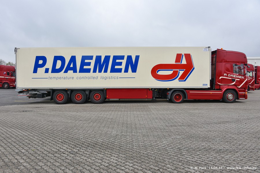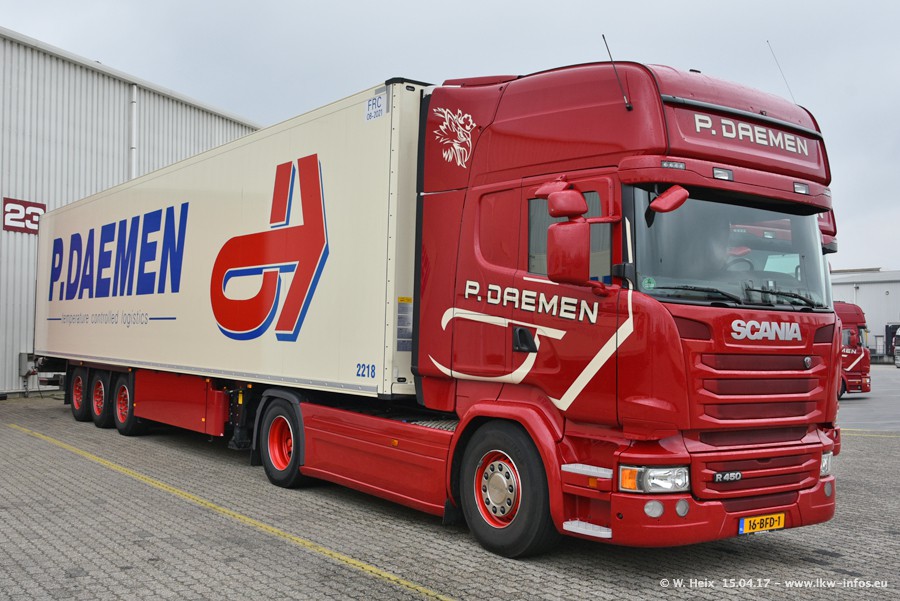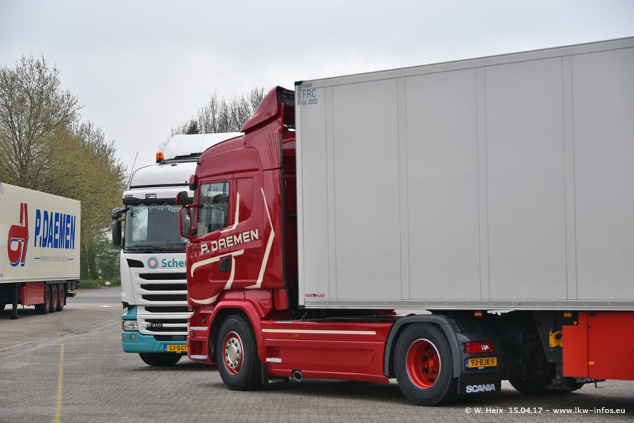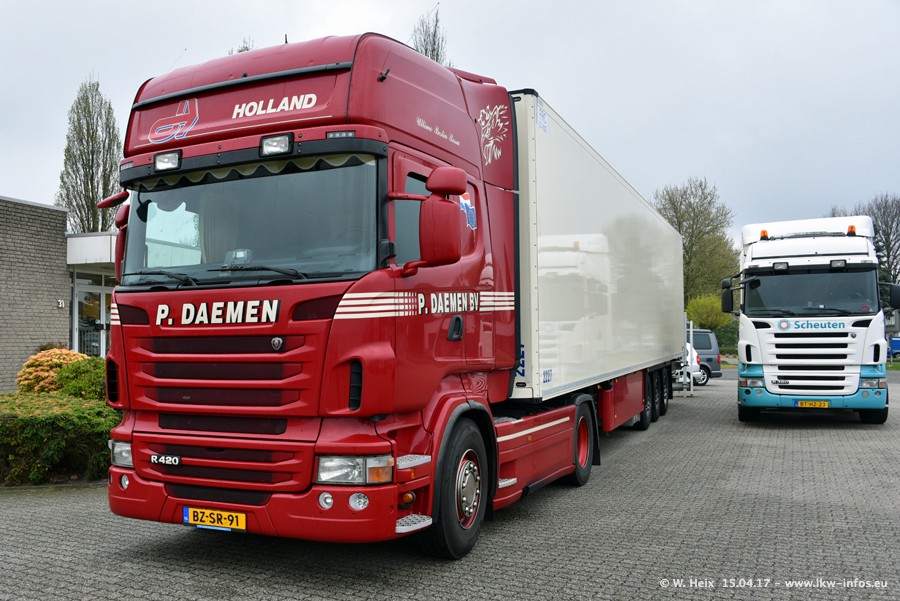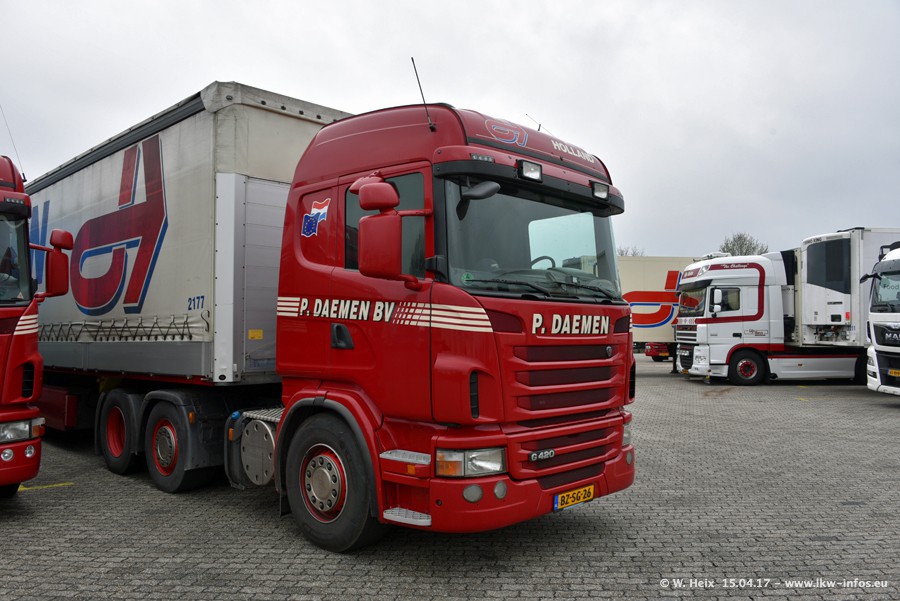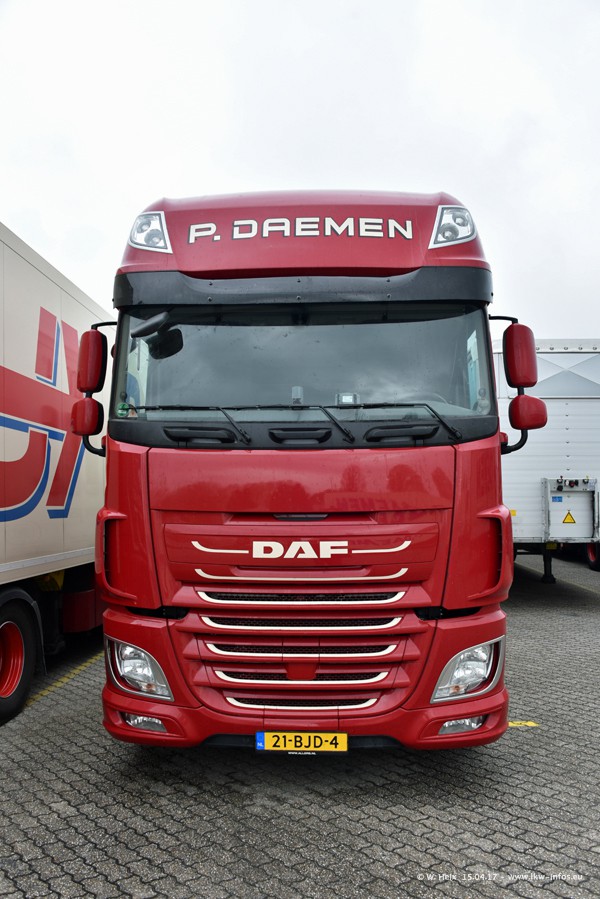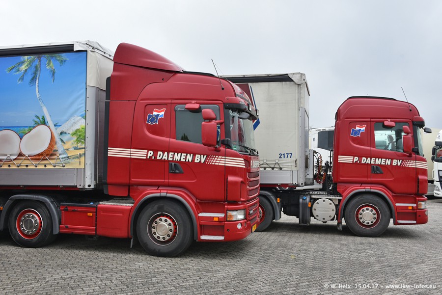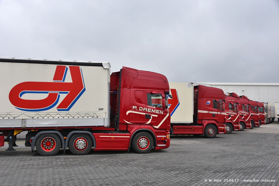 In den letzten Wochen wurde der Furhpark bei Daemen weiter modernisiert. Neu sind zwei DAF XF Euro 6 und mehrere Scania R 410 und R 450 Streamline (alte Baureihe). Und ich konnte einen neuen Auflieger entdecken, der wieder im Design eines Kunden gestaltet ist. Alle neuen Zugmaschinen sind an denn Kennzeichen mit den Buchstabenkombinationen "BJ" zu erkennen.
