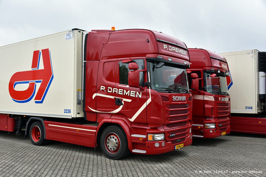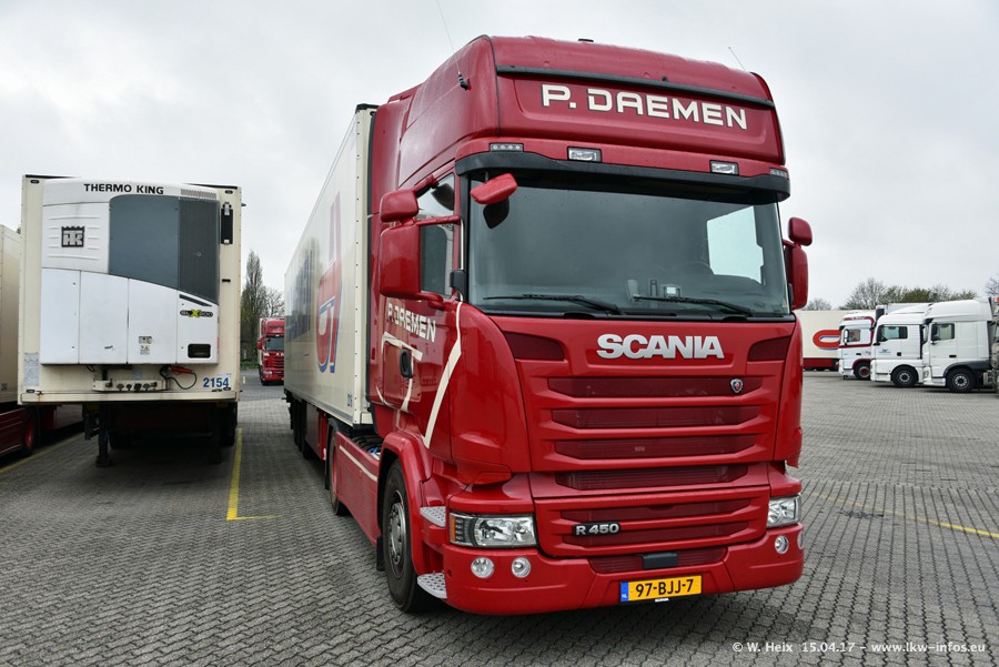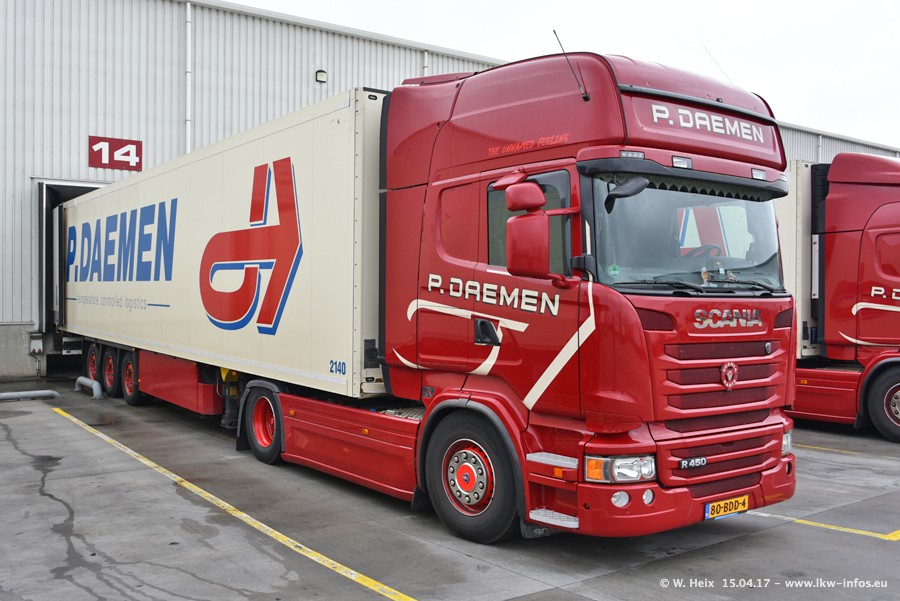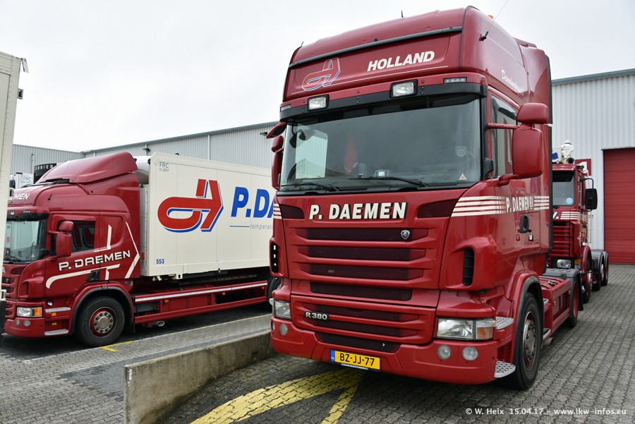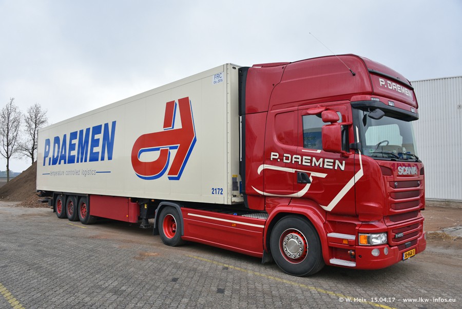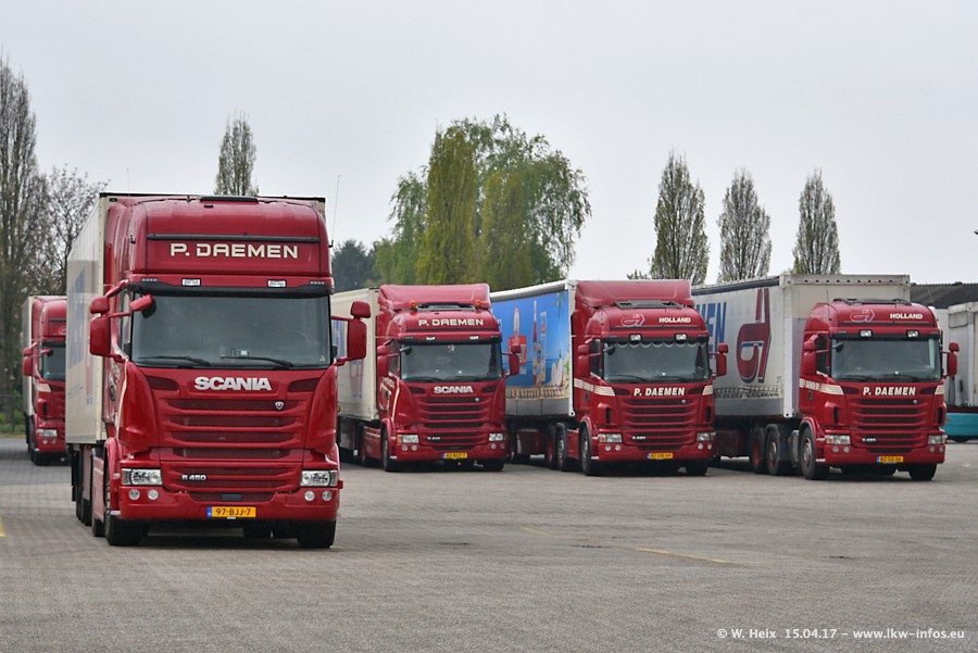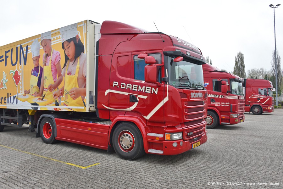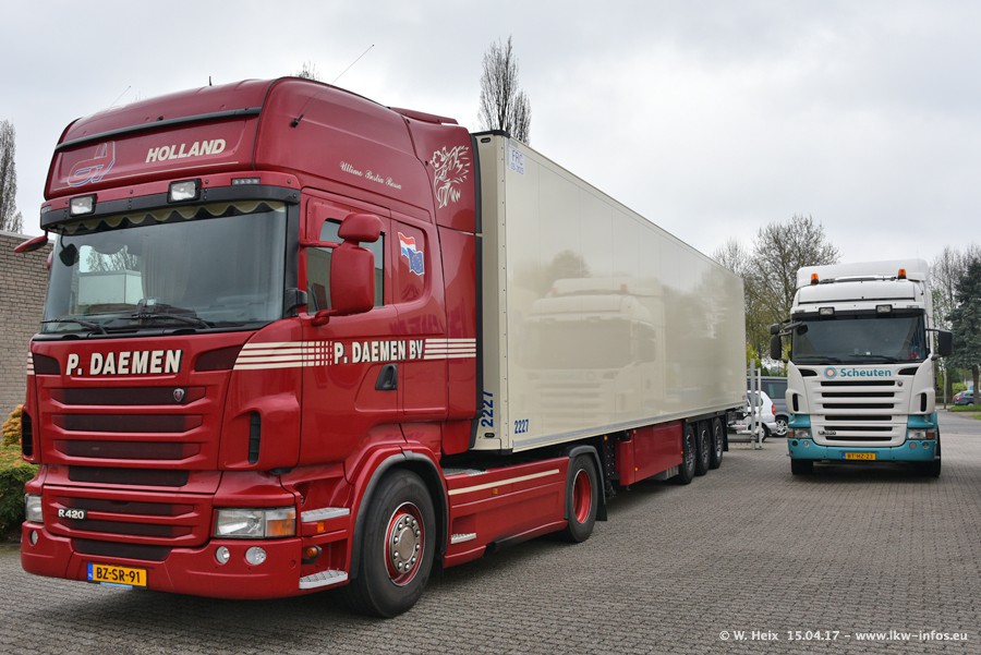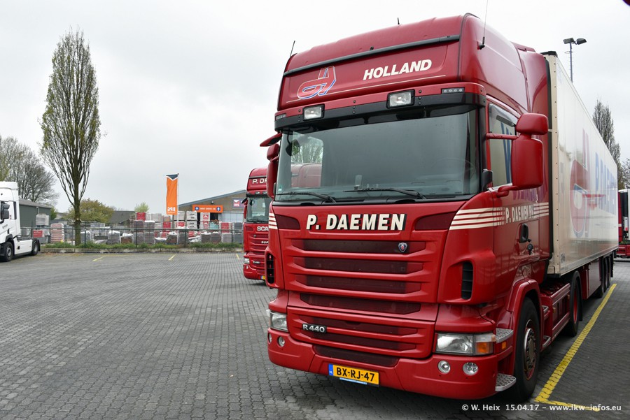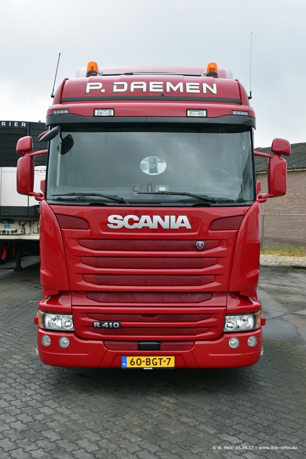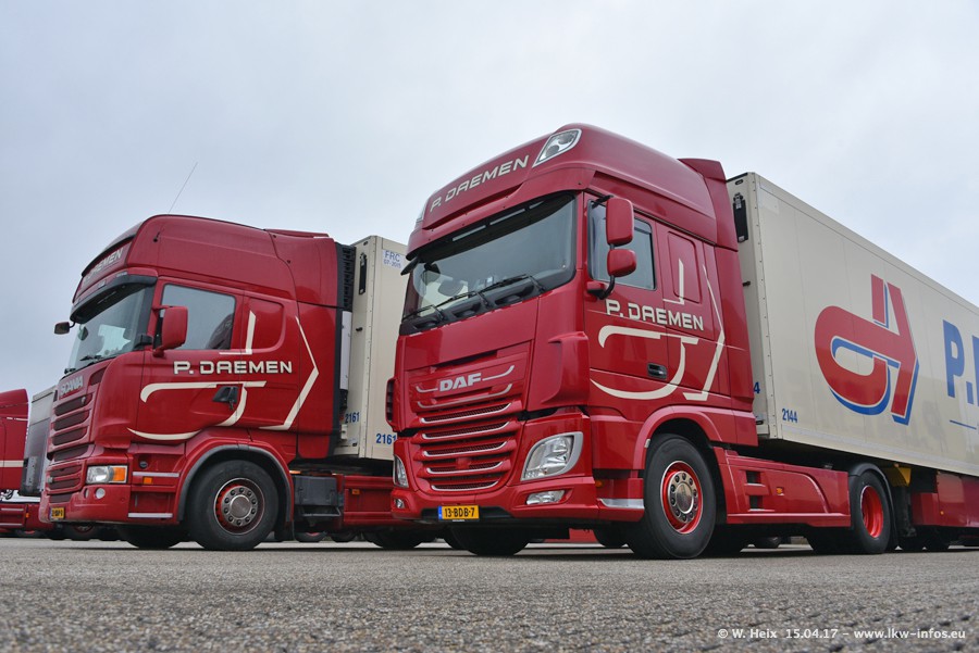 In den letzten Wochen wurde der Furhpark bei Daemen weiter modernisiert. Neu sind zwei DAF XF Euro 6 und mehrere Scania R 410 und R 450 Streamline (alte Baureihe). Und ich konnte einen neuen Auflieger entdecken, der wieder im Design eines Kunden gestaltet ist. Alle neuen Zugmaschinen sind an denn Kennzeichen mit den Buchstabenkombinationen "BJ" zu erkennen.