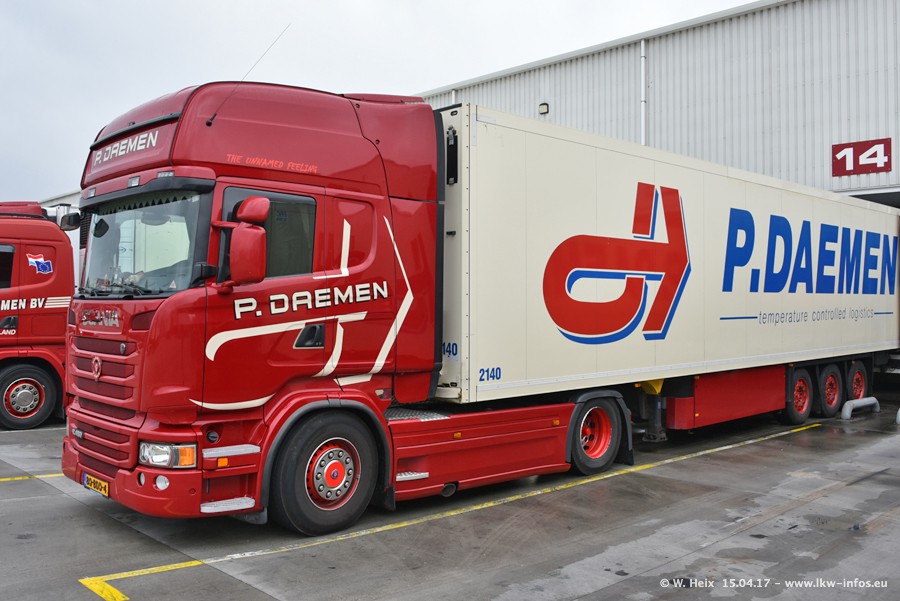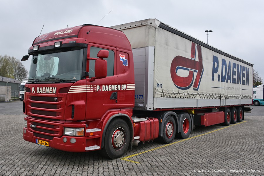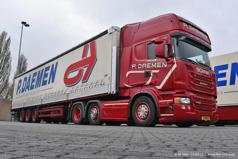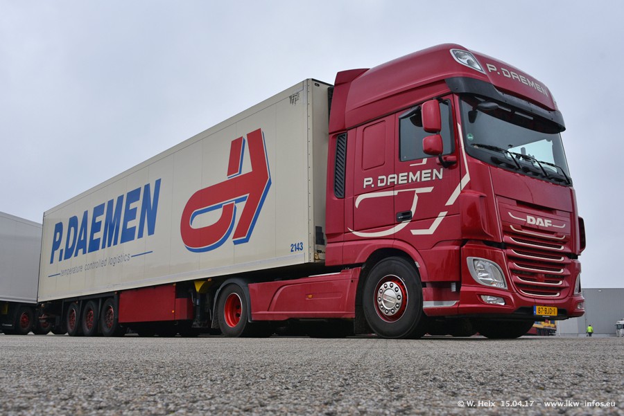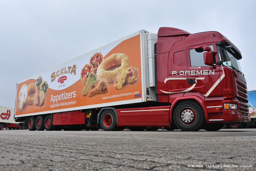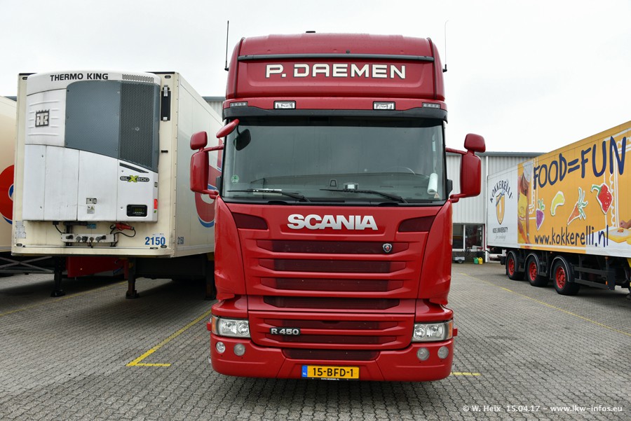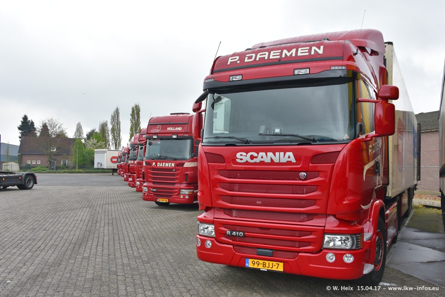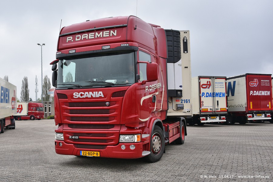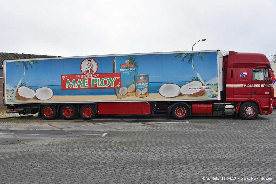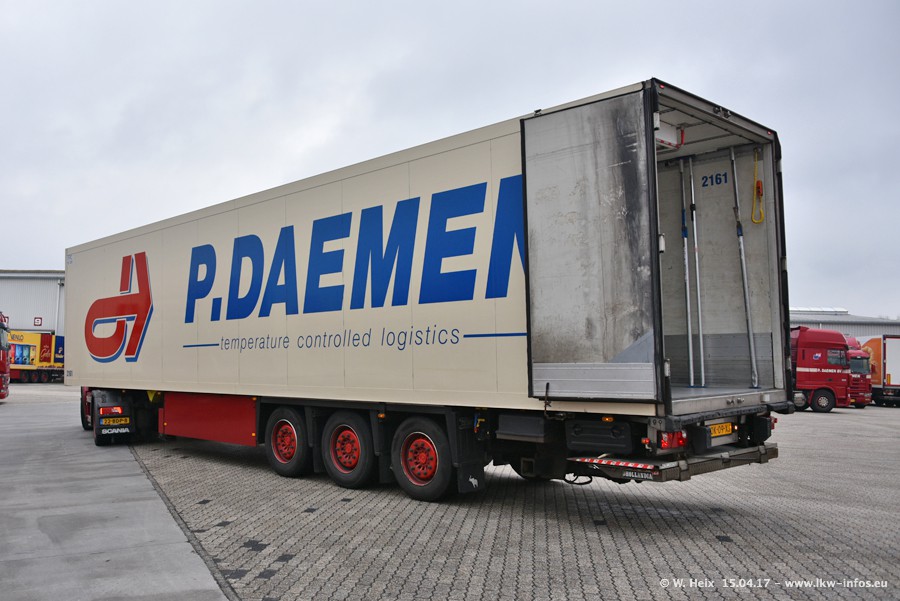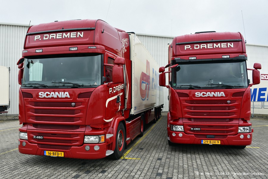 In den letzten Wochen wurde der Furhpark bei Daemen weiter modernisiert. Neu sind zwei DAF XF Euro 6 und mehrere Scania R 410 und R 450 Streamline (alte Baureihe). Und ich konnte einen neuen Auflieger entdecken, der wieder im Design eines Kunden gestaltet ist. Alle neuen Zugmaschinen sind an denn Kennzeichen mit den Buchstabenkombinationen "BJ" zu erkennen.