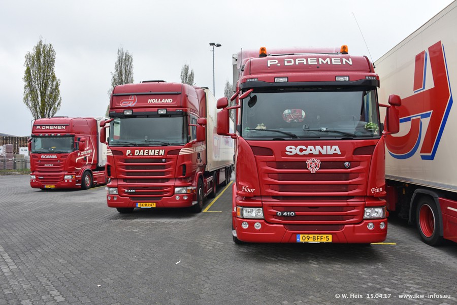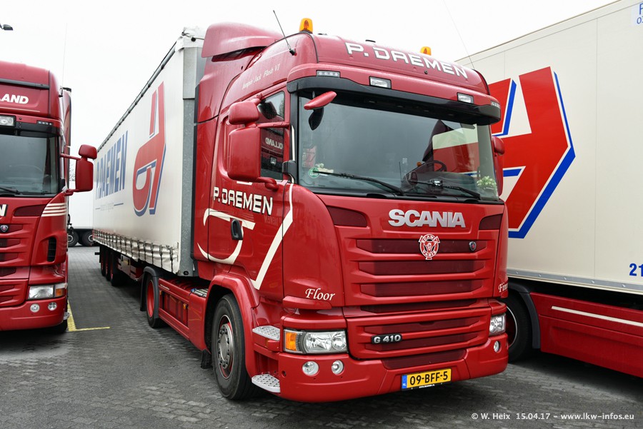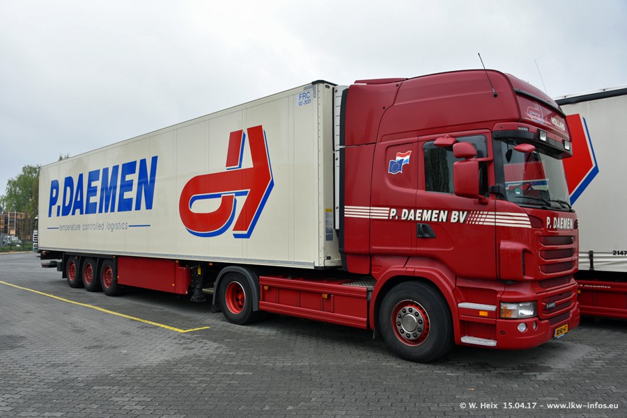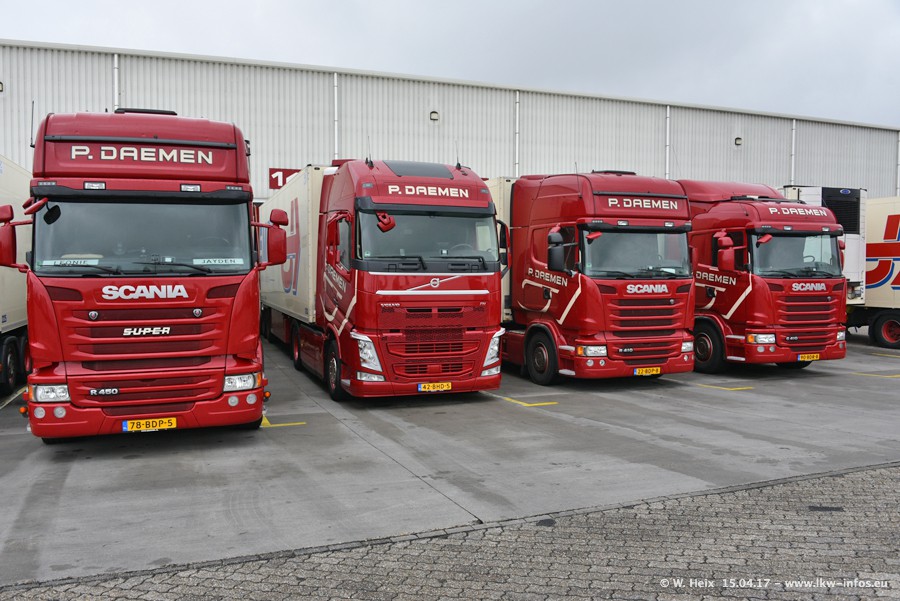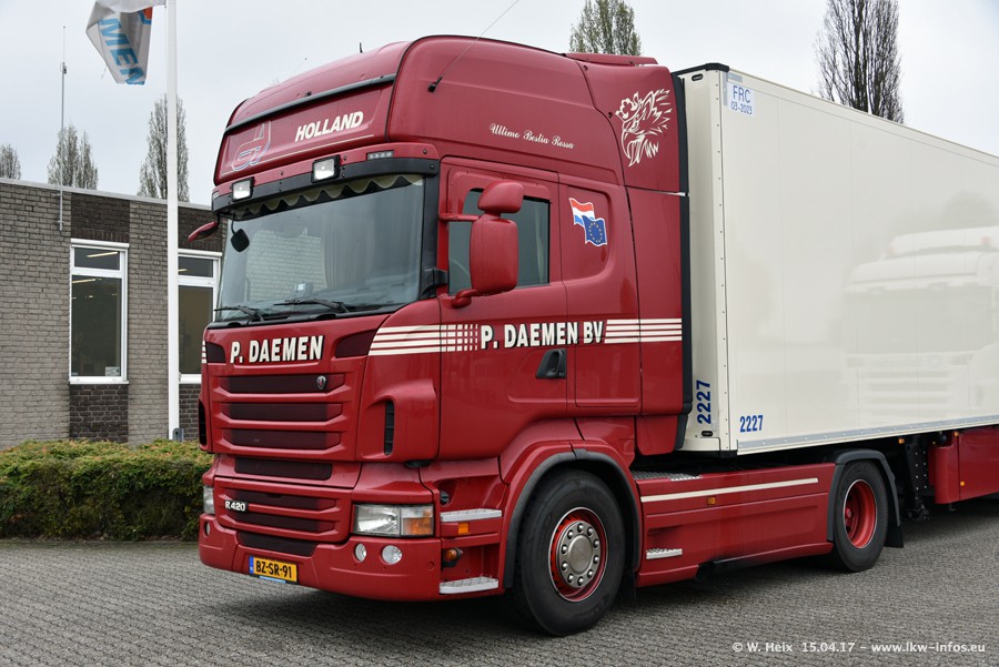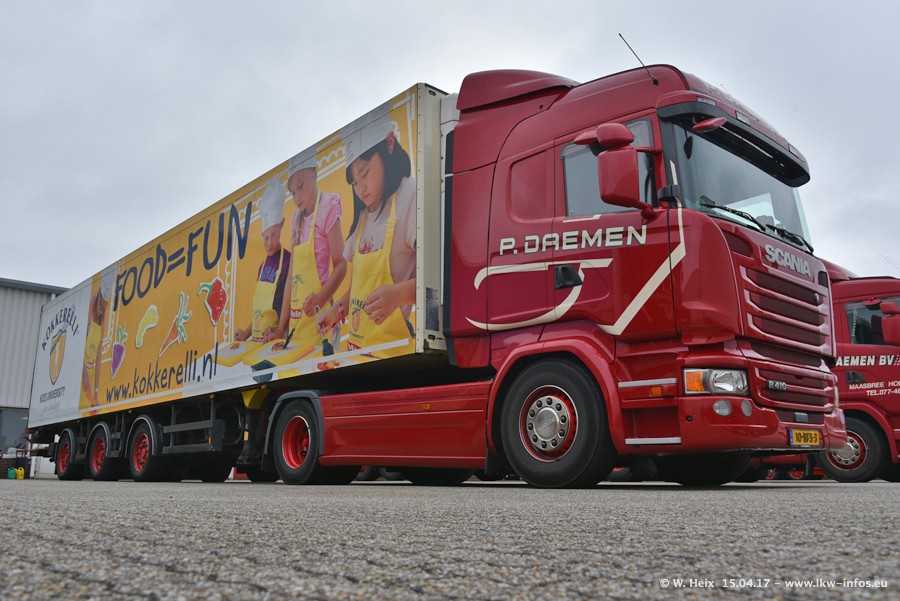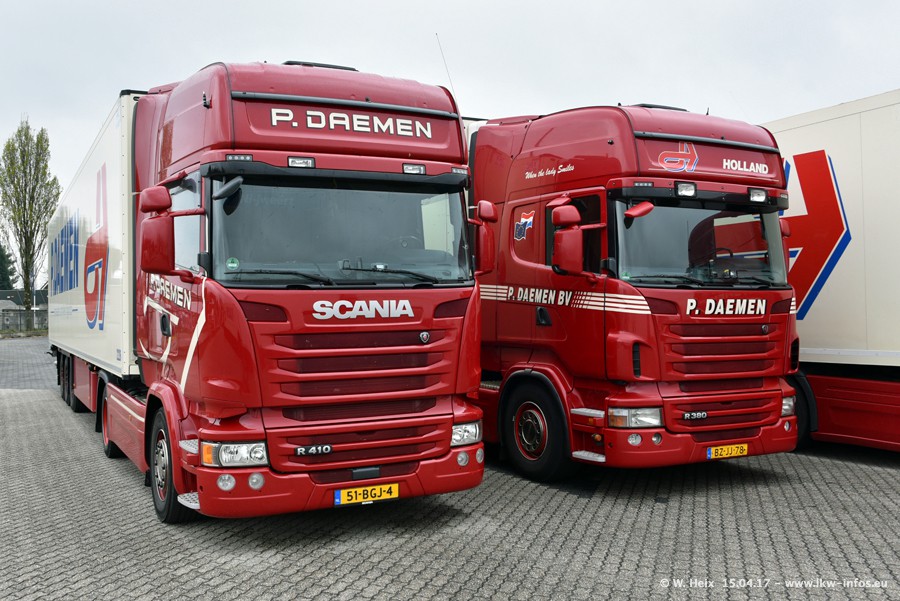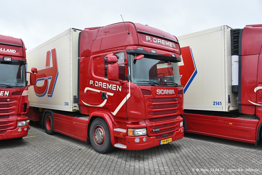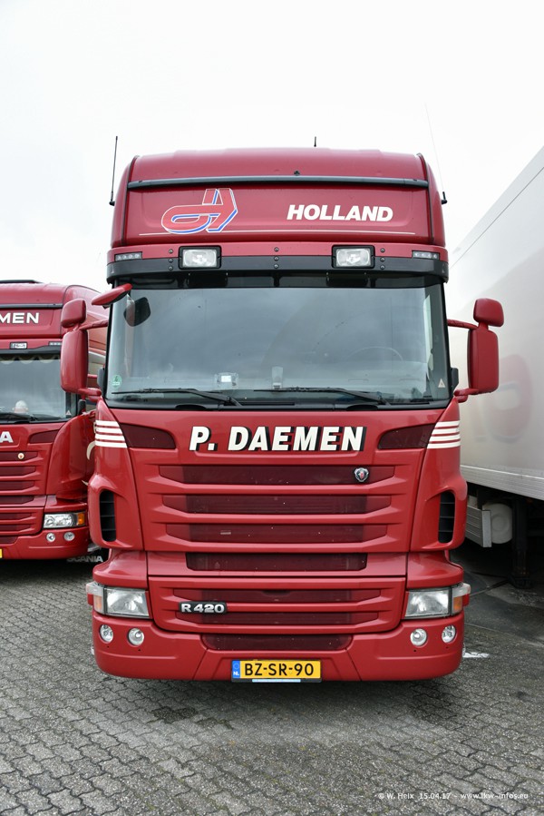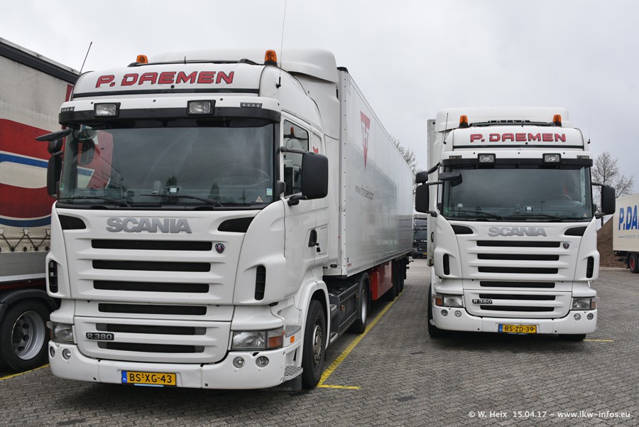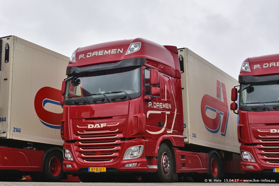 In den letzten Wochen wurde der Furhpark bei Daemen weiter modernisiert. Neu sind zwei DAF XF Euro 6 und mehrere Scania R 410 und R 450 Streamline (alte Baureihe). Und ich konnte einen neuen Auflieger entdecken, der wieder im Design eines Kunden gestaltet ist. Alle neuen Zugmaschinen sind an denn Kennzeichen mit den Buchstabenkombinationen "BJ" zu erkennen.
