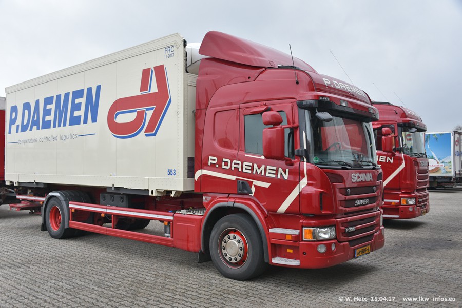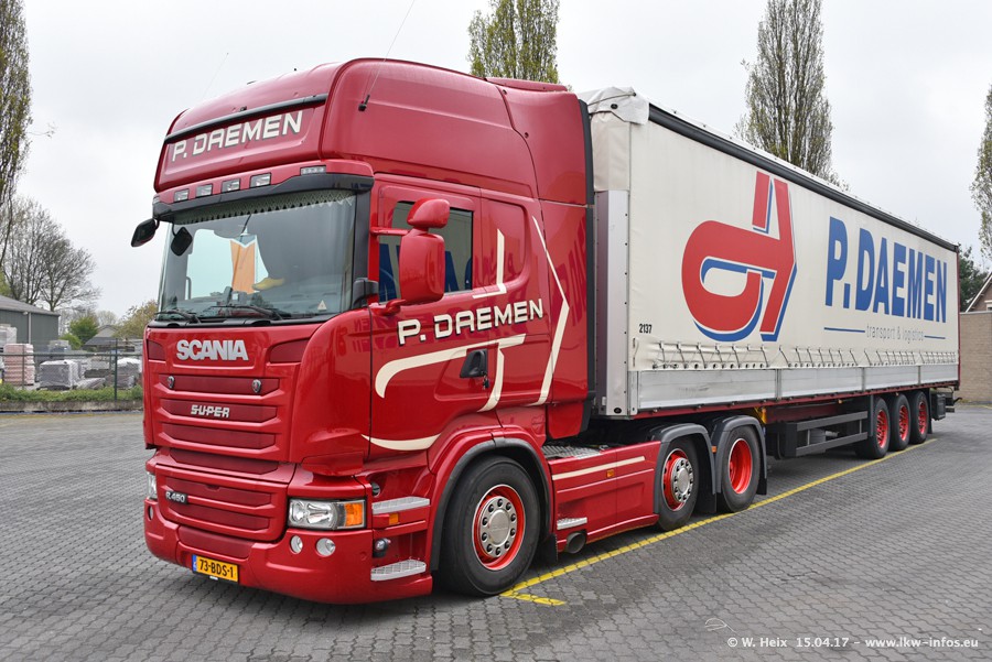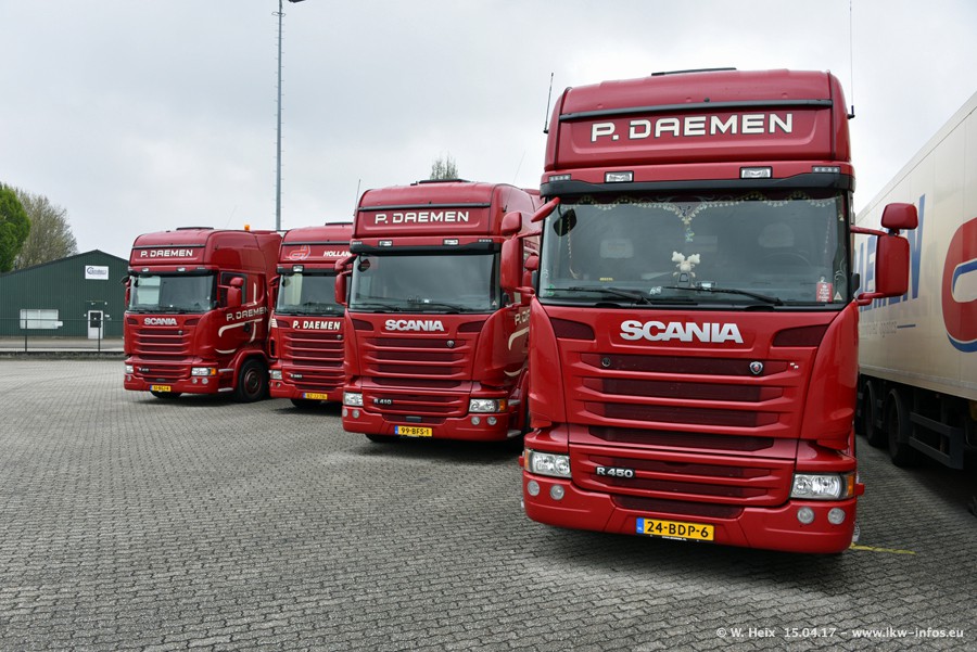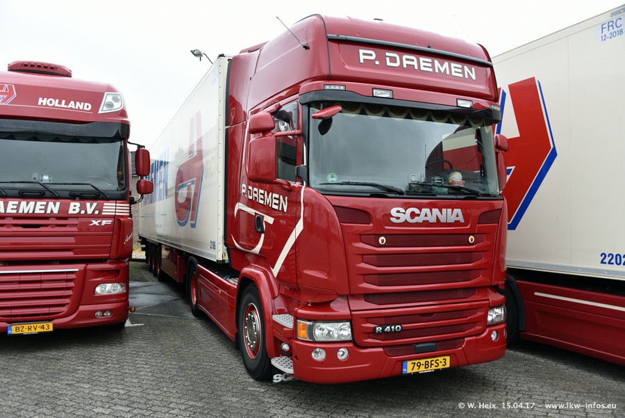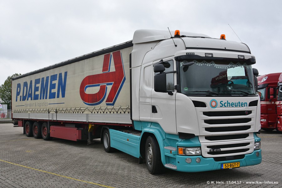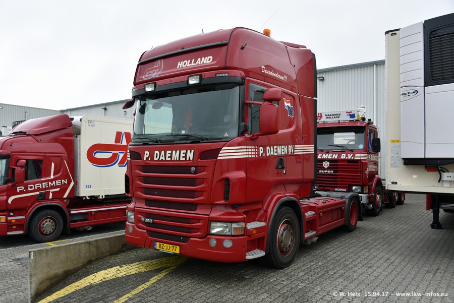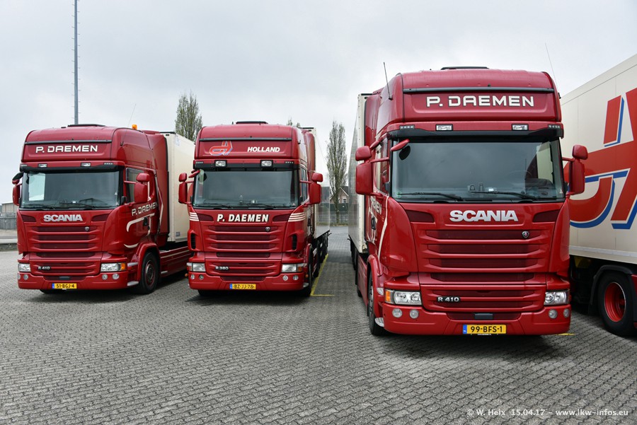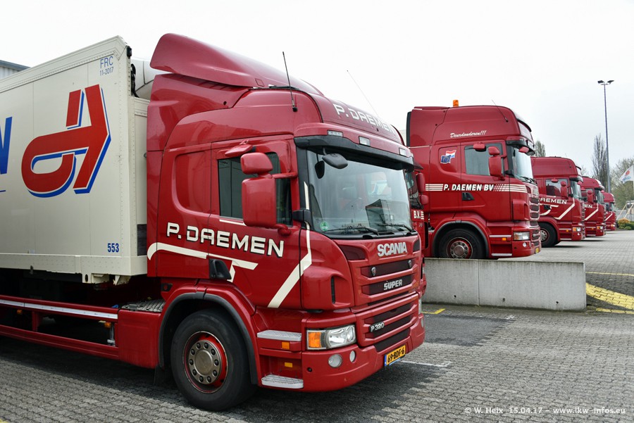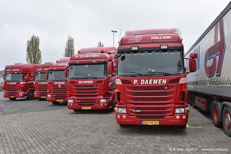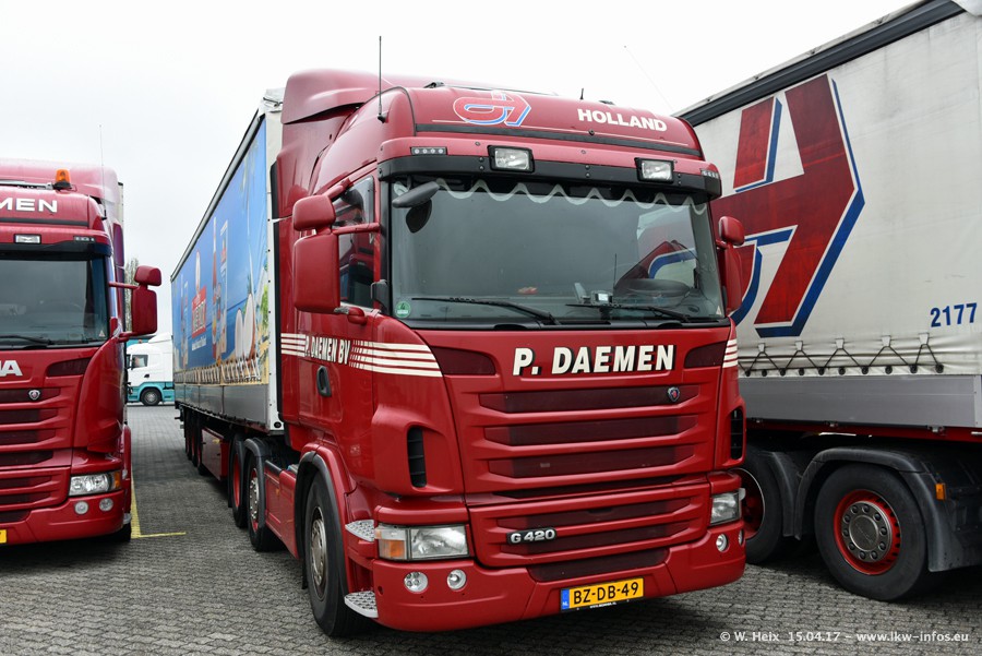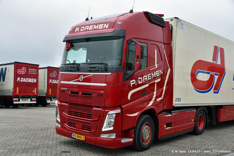 In den letzten Wochen wurde der Furhpark bei Daemen weiter modernisiert. Neu sind zwei DAF XF Euro 6 und mehrere Scania R 410 und R 450 Streamline (alte Baureihe). Und ich konnte einen neuen Auflieger entdecken, der wieder im Design eines Kunden gestaltet ist. Alle neuen Zugmaschinen sind an denn Kennzeichen mit den Buchstabenkombinationen "BJ" zu erkennen.