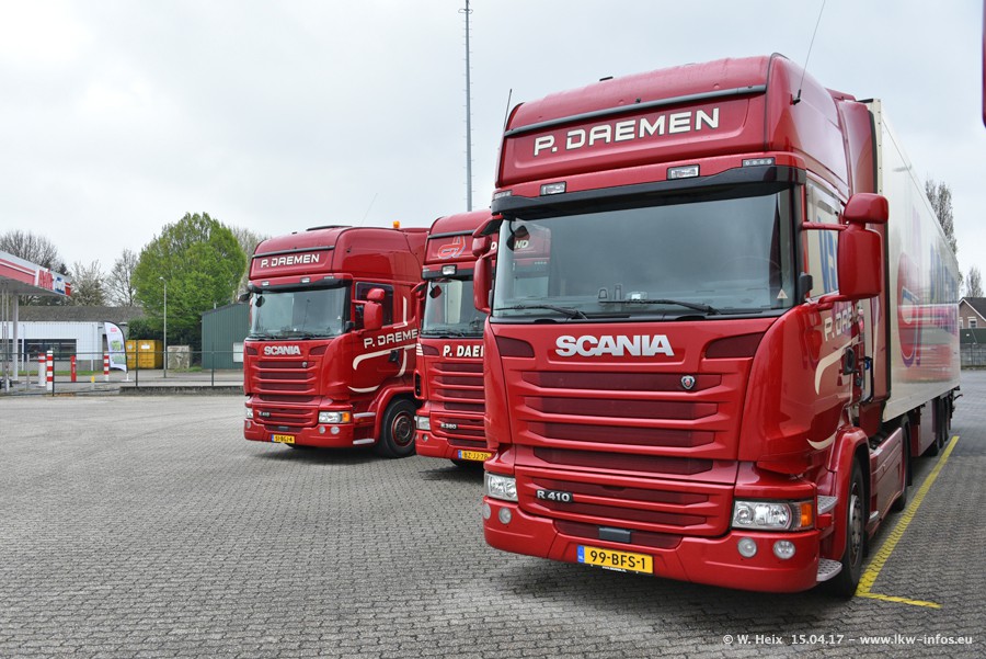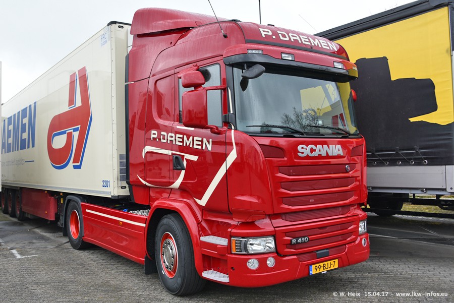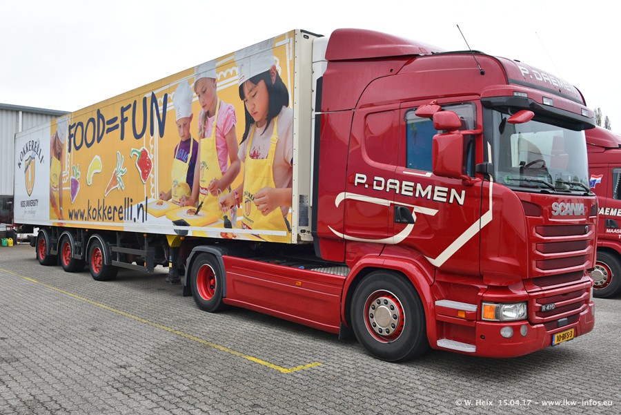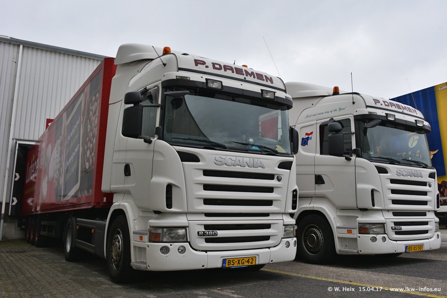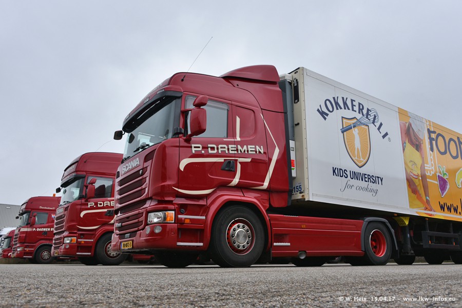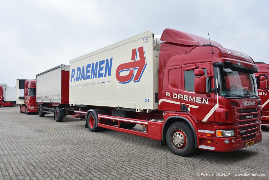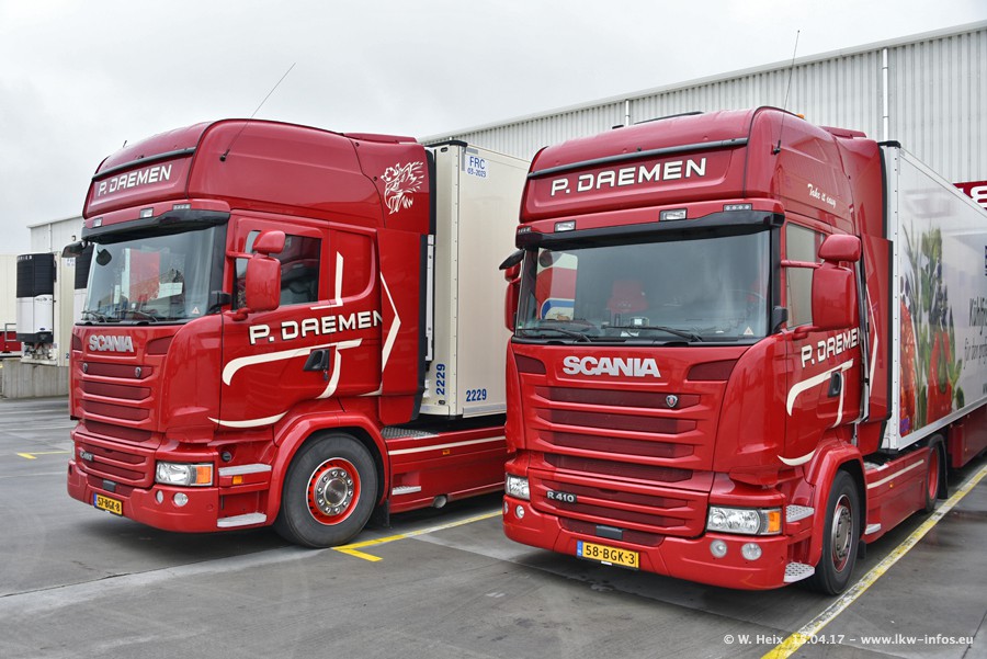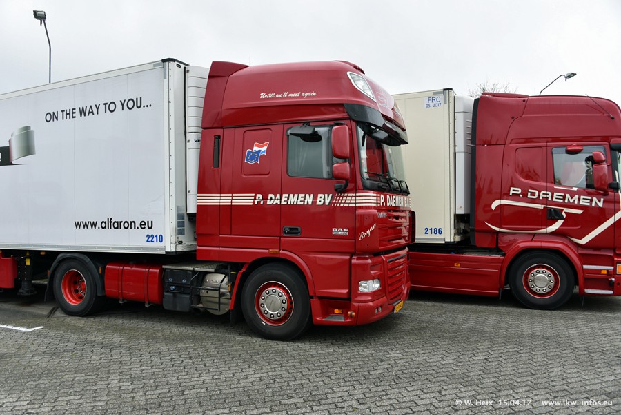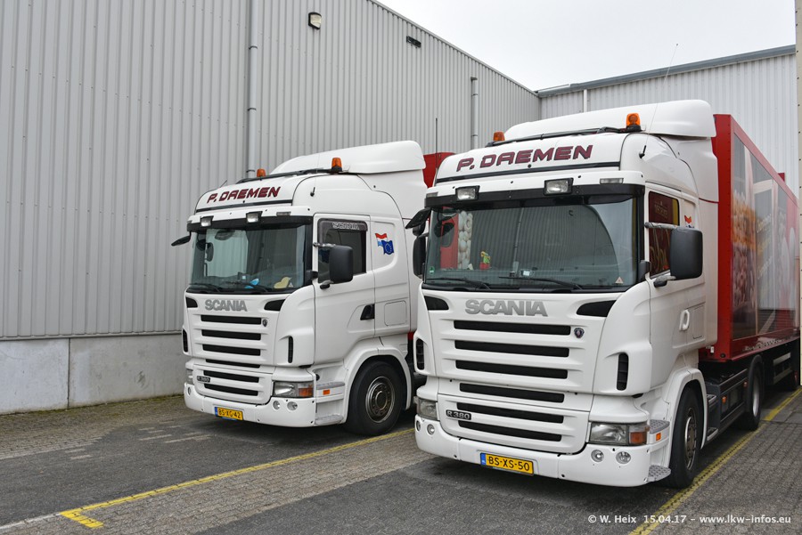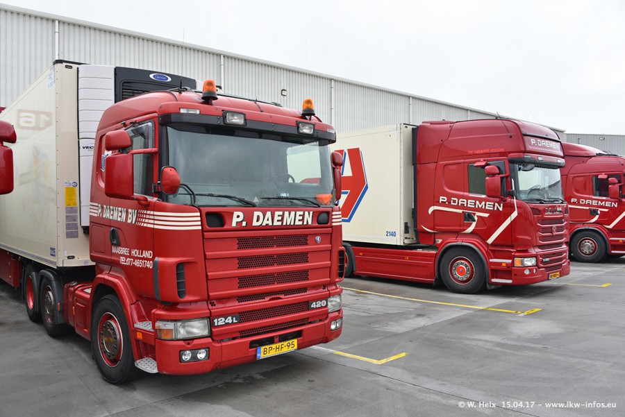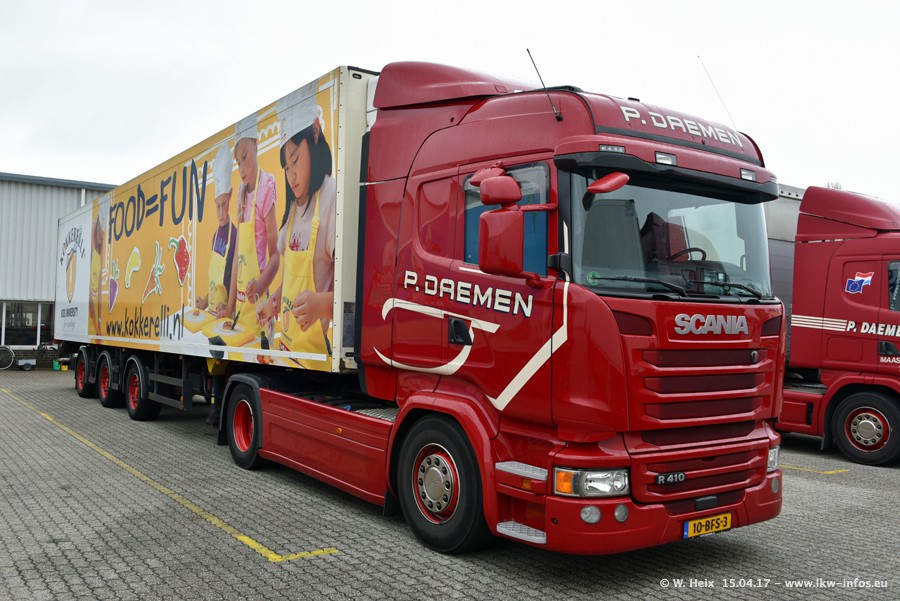 In den letzten Wochen wurde der Furhpark bei Daemen weiter modernisiert. Neu sind zwei DAF XF Euro 6 und mehrere Scania R 410 und R 450 Streamline (alte Baureihe). Und ich konnte einen neuen Auflieger entdecken, der wieder im Design eines Kunden gestaltet ist. Alle neuen Zugmaschinen sind an denn Kennzeichen mit den Buchstabenkombinationen "BJ" zu erkennen.