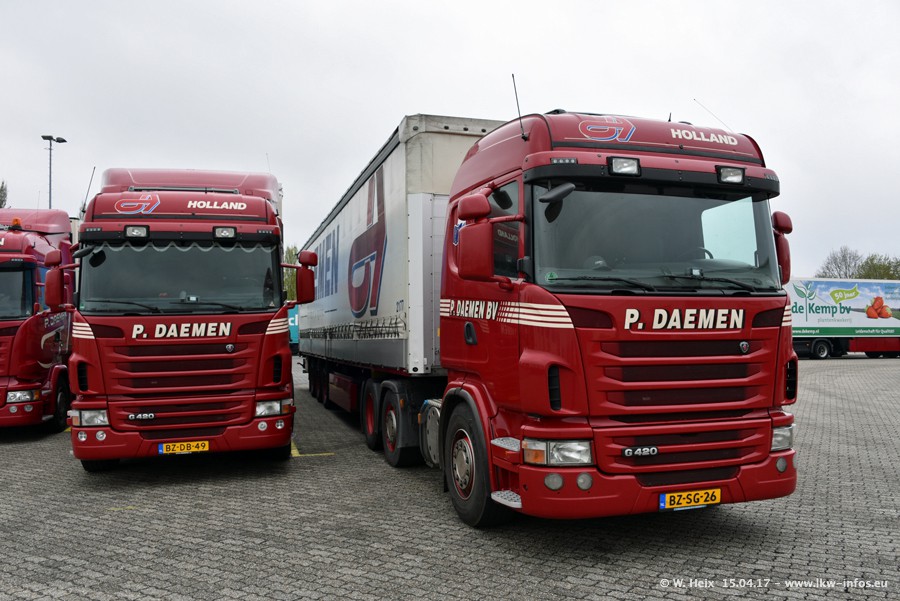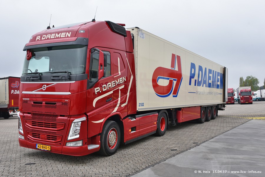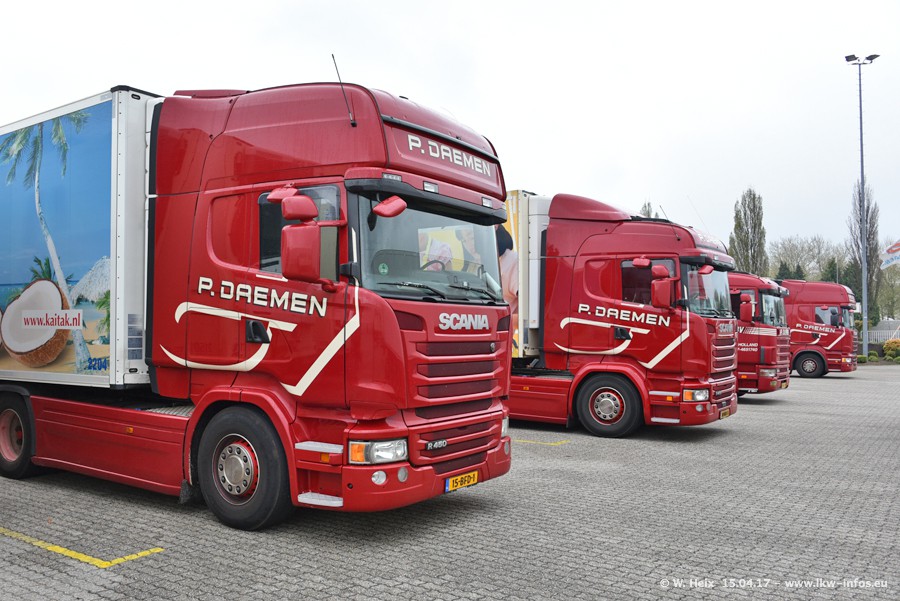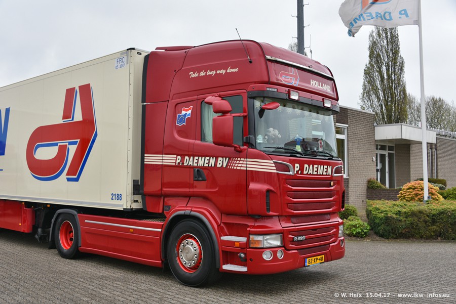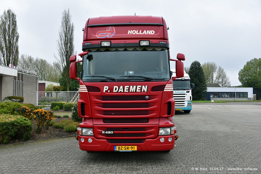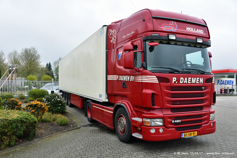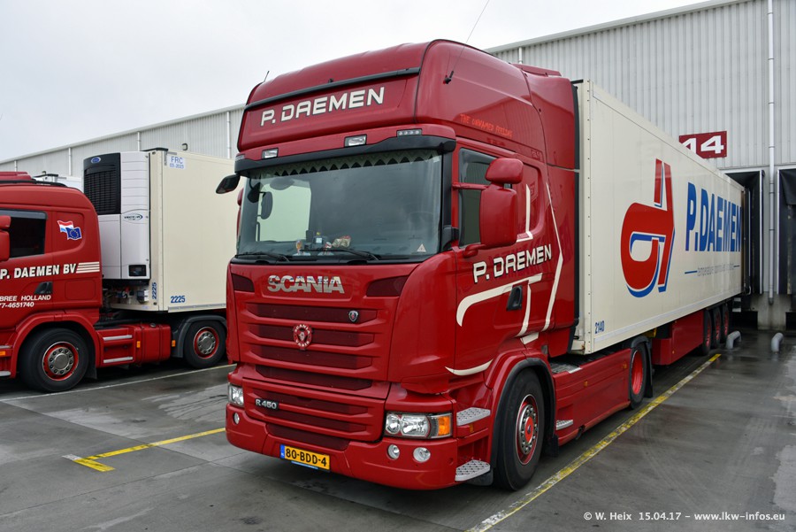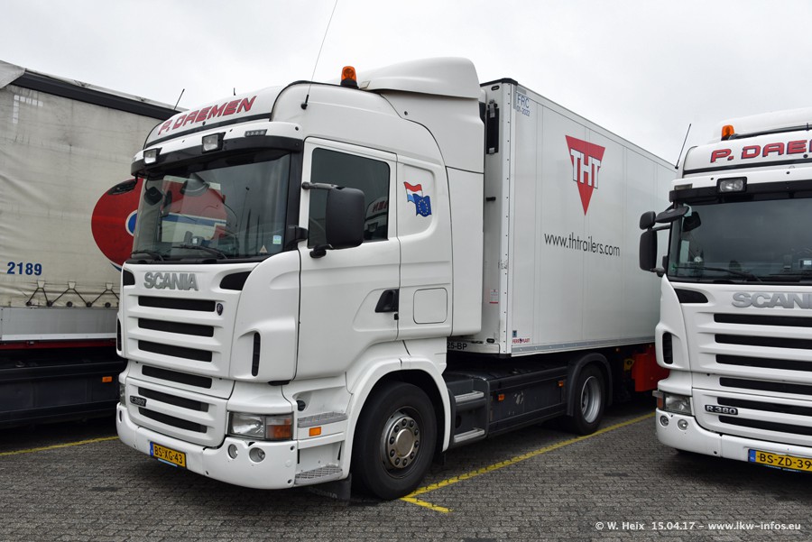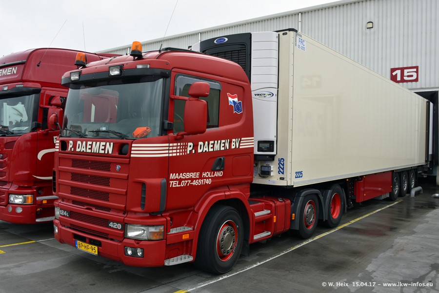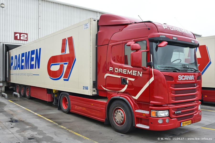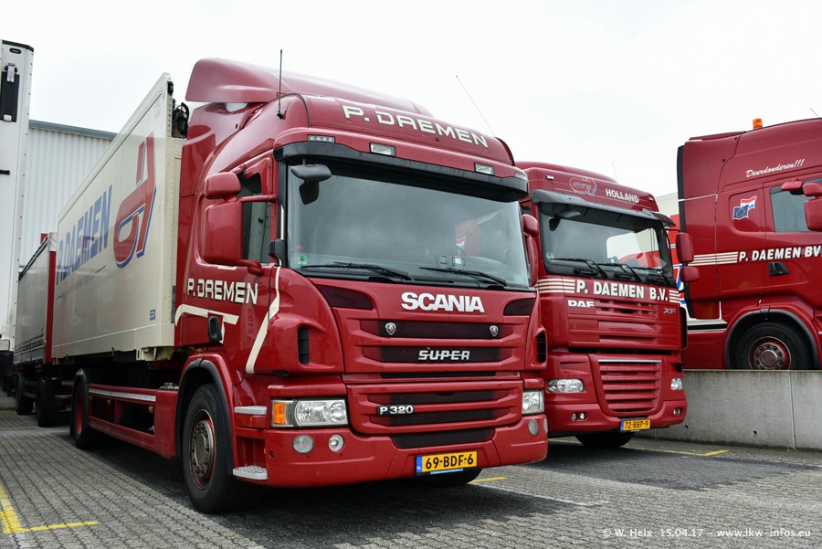 In den letzten Wochen wurde der Furhpark bei Daemen weiter modernisiert. Neu sind zwei DAF XF Euro 6 und mehrere Scania R 410 und R 450 Streamline (alte Baureihe). Und ich konnte einen neuen Auflieger entdecken, der wieder im Design eines Kunden gestaltet ist. Alle neuen Zugmaschinen sind an denn Kennzeichen mit den Buchstabenkombinationen "BJ" zu erkennen.