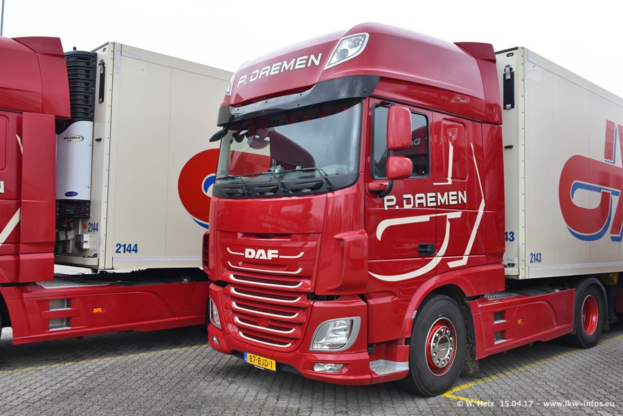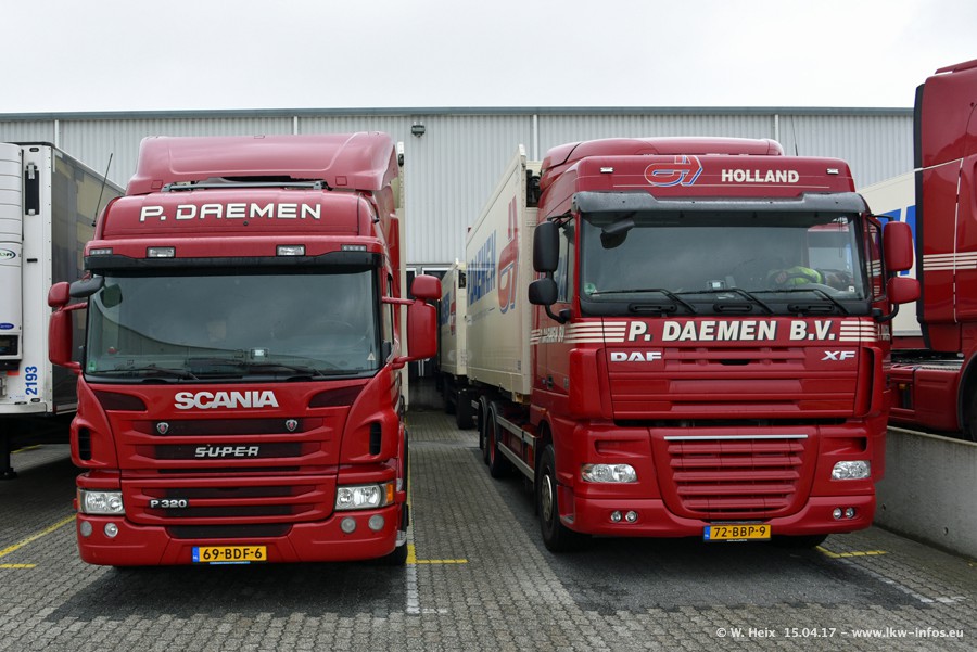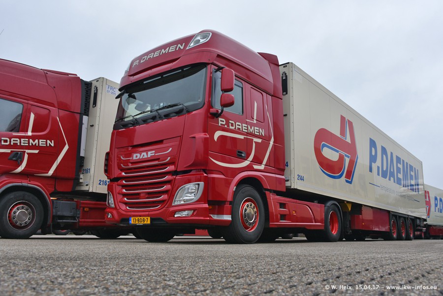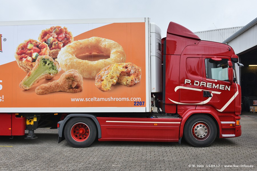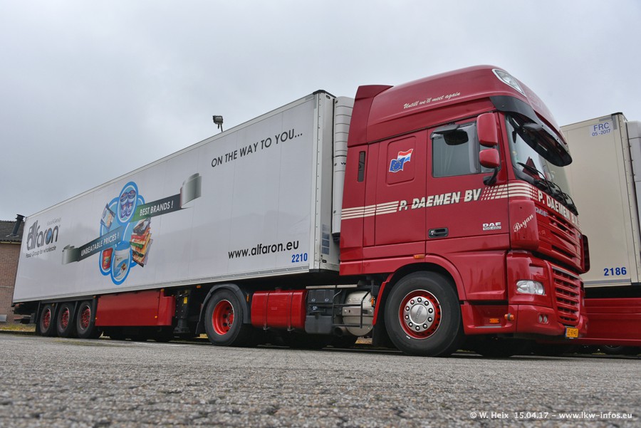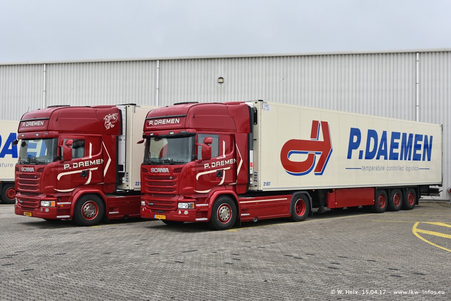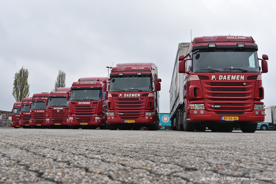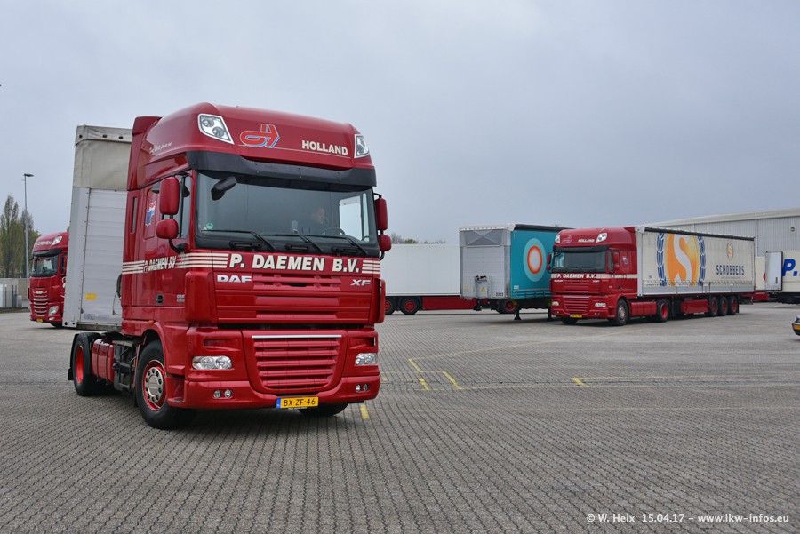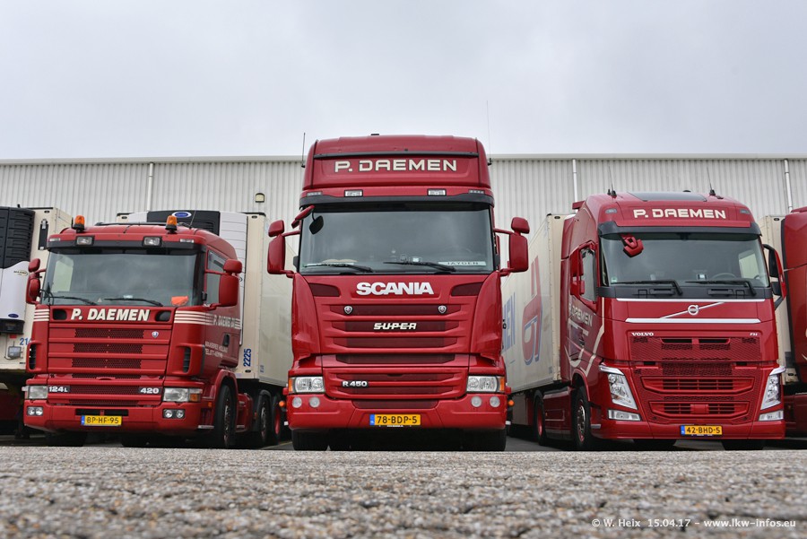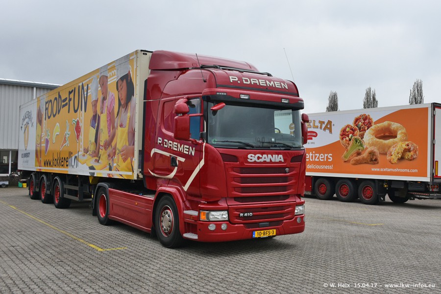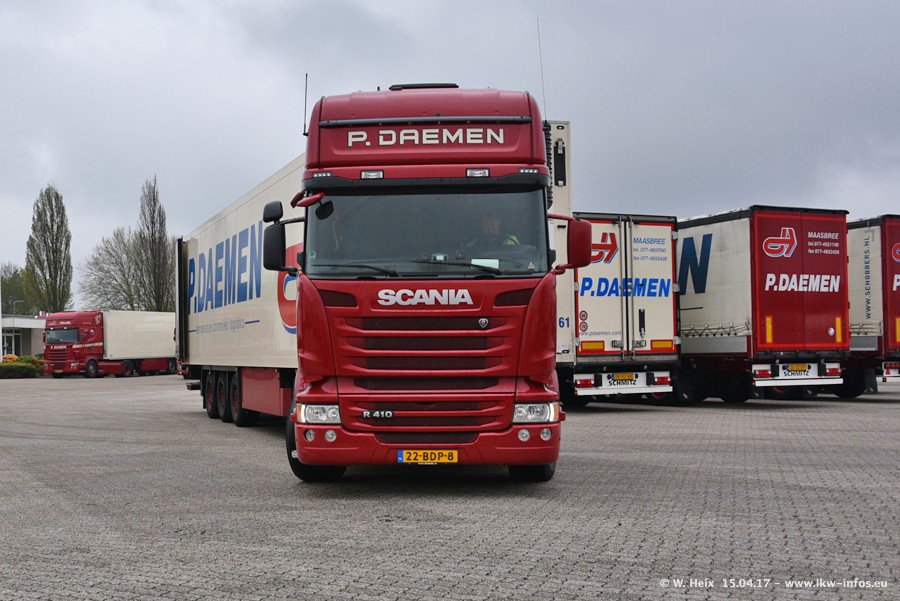In den letzten Wochen wurde der Furhpark bei Daemen weiter modernisiert. Neu sind zwei DAF XF Euro 6 und mehrere Scania R 410 und R 450 Streamline (alte Baureihe). Und ich konnte einen neuen Auflieger entdecken, der wieder im Design eines Kunden gestaltet ist. Alle neuen Zugmaschinen sind an denn Kennzeichen mit den Buchstabenkombinationen "BJ" zu erkennen.