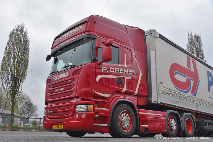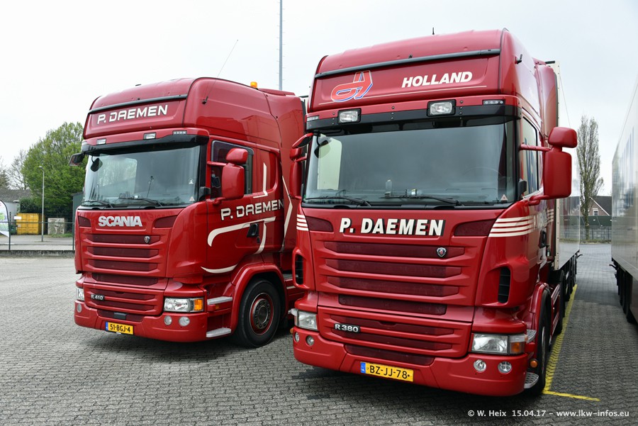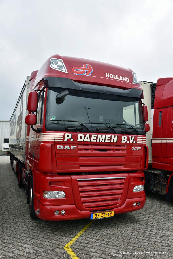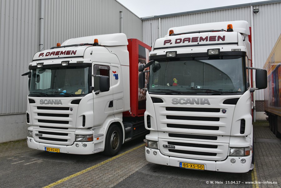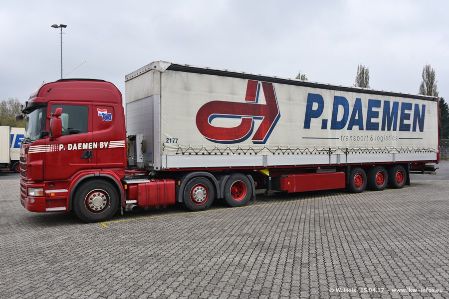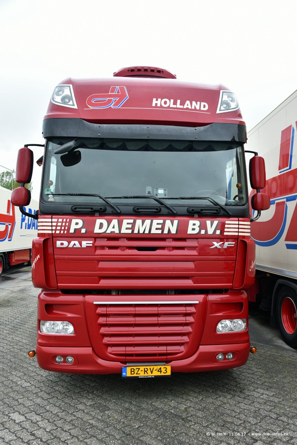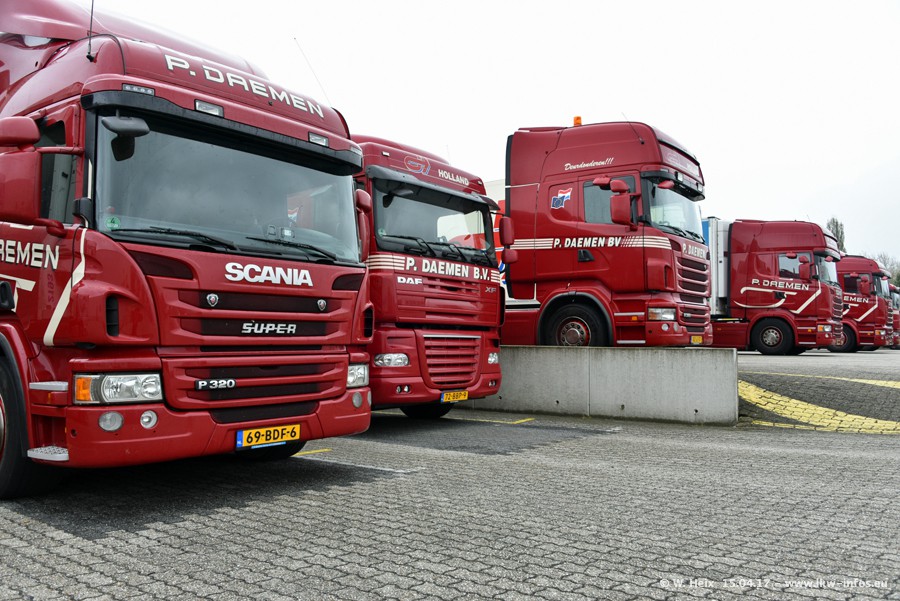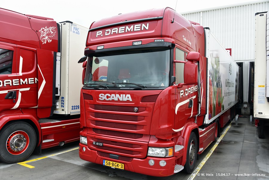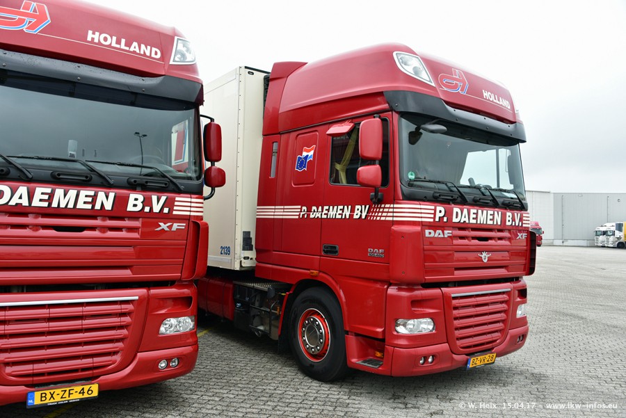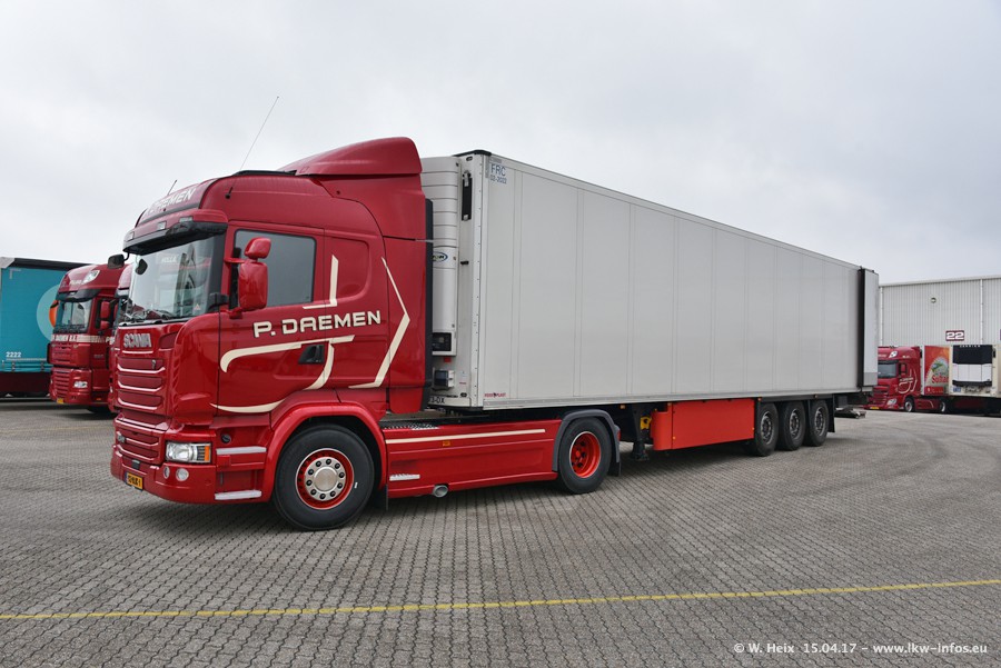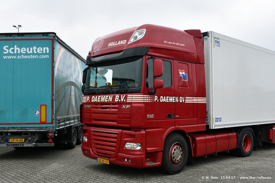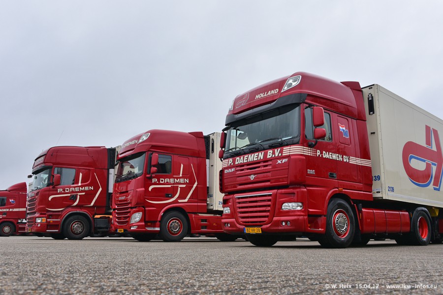 In den letzten Wochen wurde der Furhpark bei Daemen weiter modernisiert. Neu sind zwei DAF XF Euro 6 und mehrere Scania R 410 und R 450 Streamline (alte Baureihe). Und ich konnte einen neuen Auflieger entdecken, der wieder im Design eines Kunden gestaltet ist. Alle neuen Zugmaschinen sind an denn Kennzeichen mit den Buchstabenkombinationen "BJ" zu erkennen.
