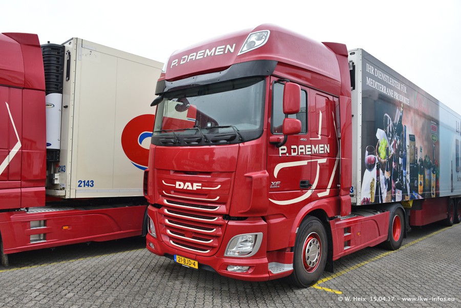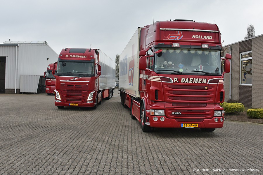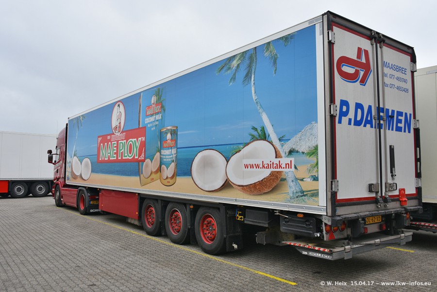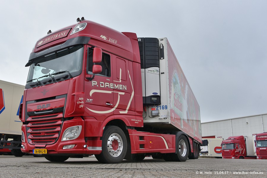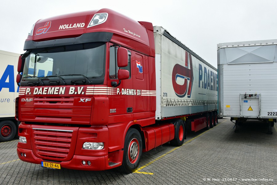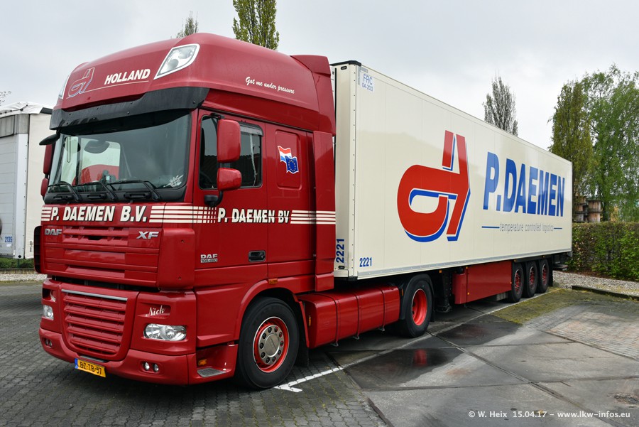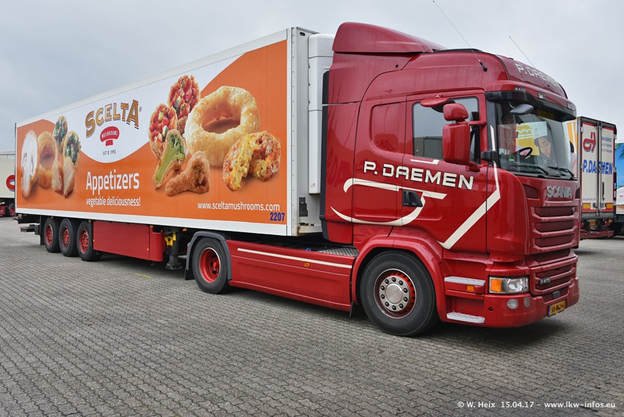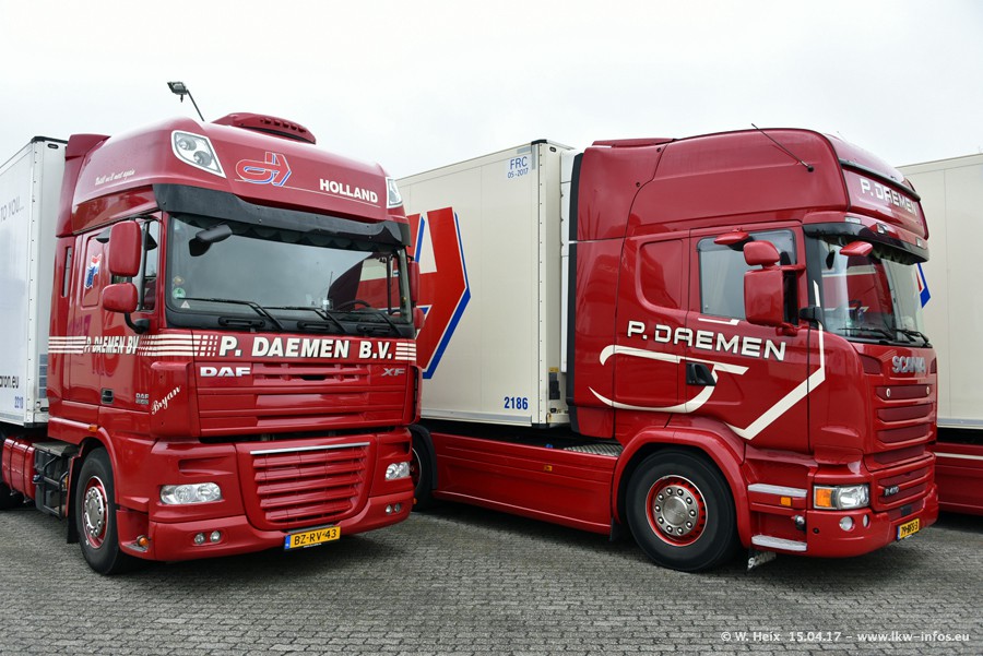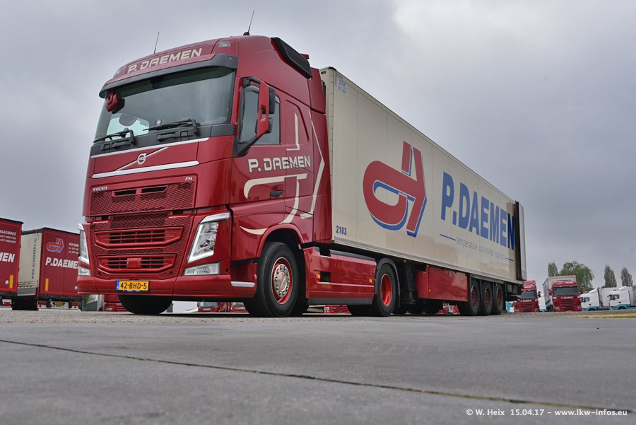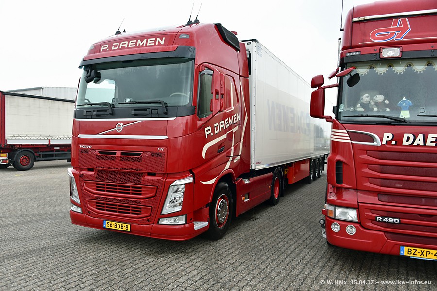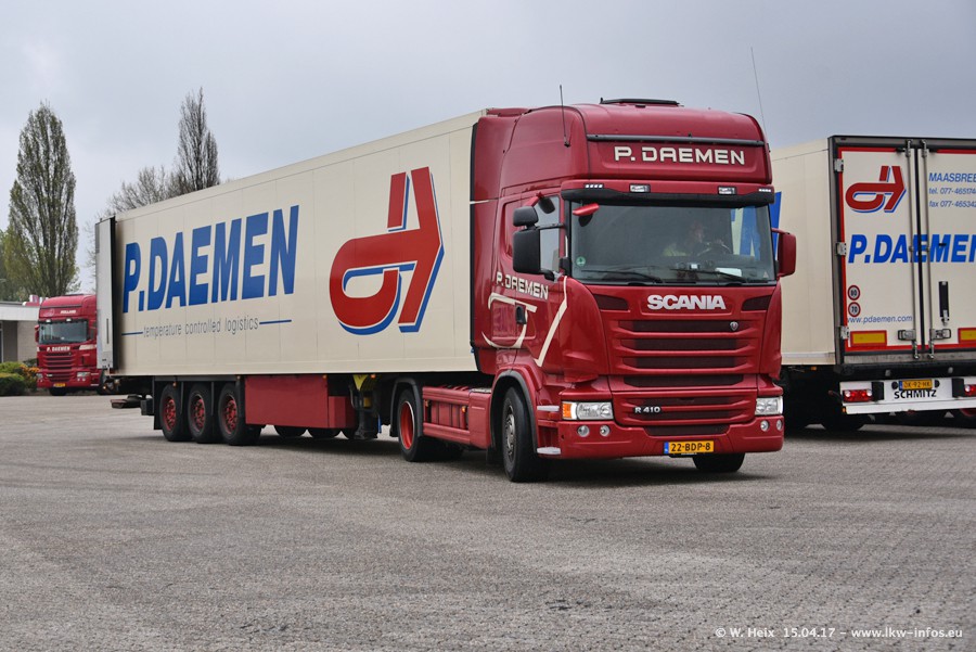 In den letzten Wochen wurde der Furhpark bei Daemen weiter modernisiert. Neu sind zwei DAF XF Euro 6 und mehrere Scania R 410 und R 450 Streamline (alte Baureihe). Und ich konnte einen neuen Auflieger entdecken, der wieder im Design eines Kunden gestaltet ist. Alle neuen Zugmaschinen sind an denn Kennzeichen mit den Buchstabenkombinationen "BJ" zu erkennen.