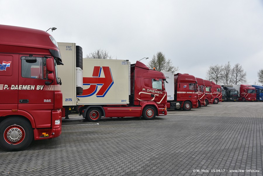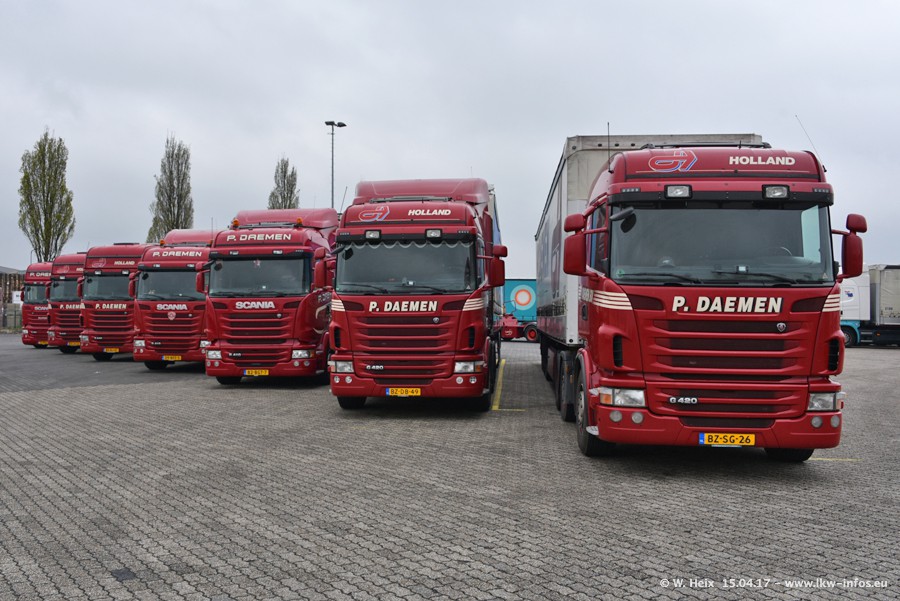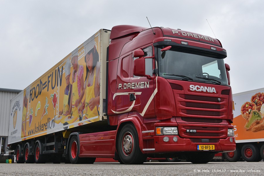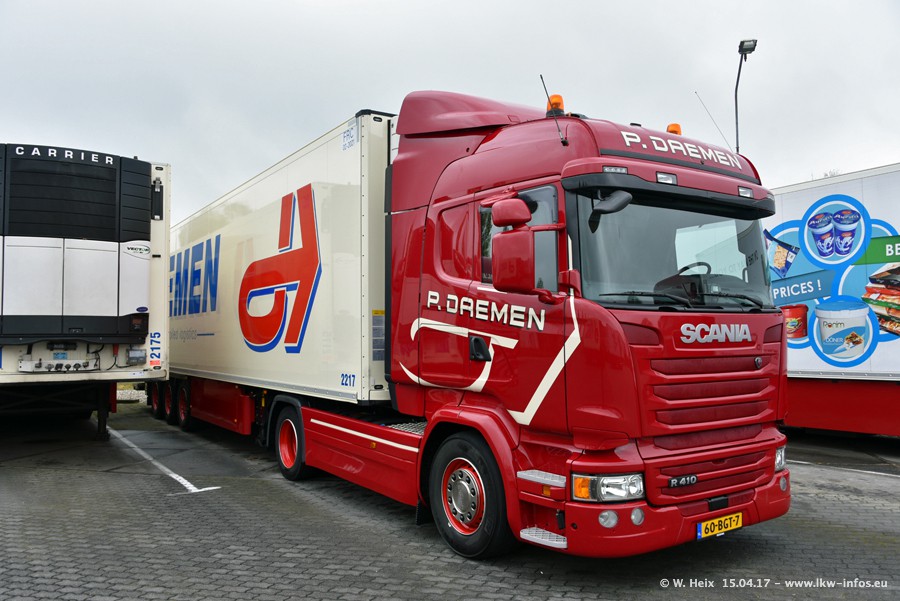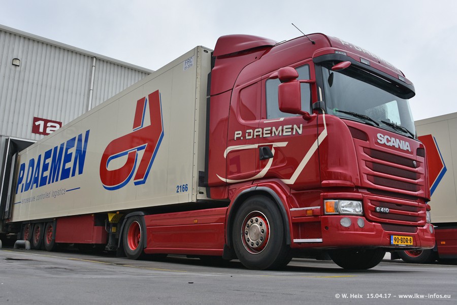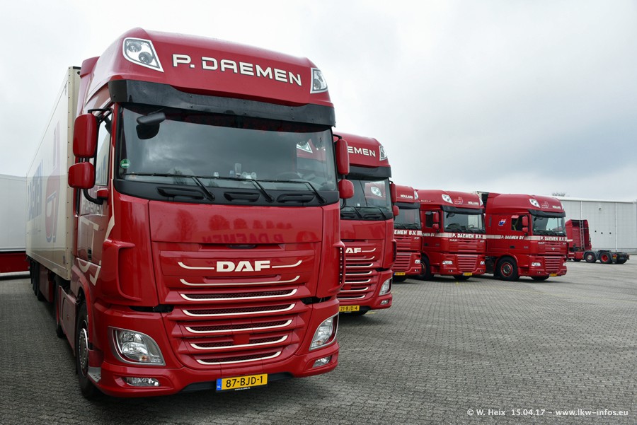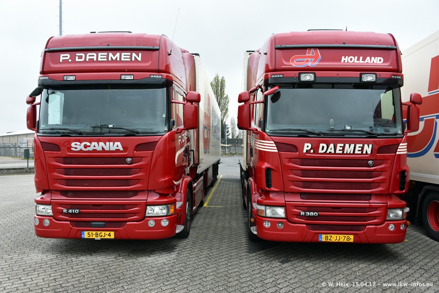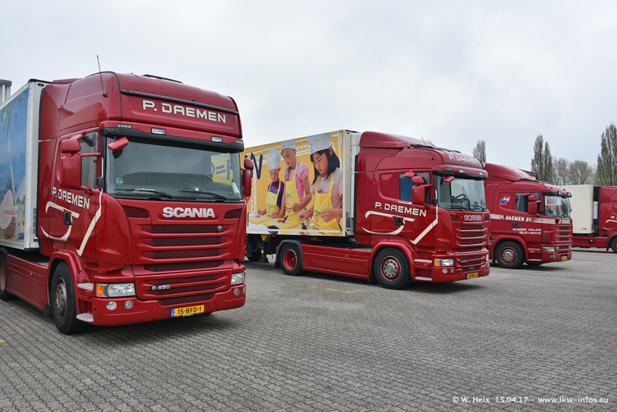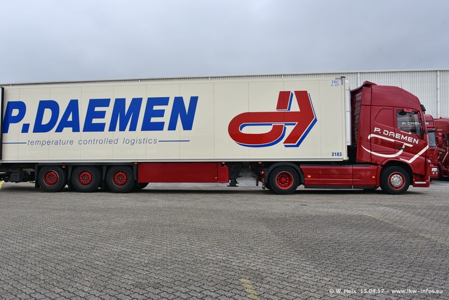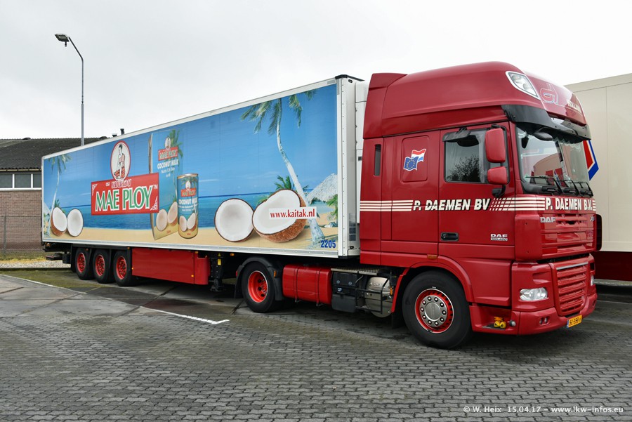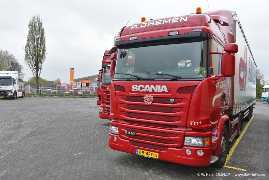 In den letzten Wochen wurde der Furhpark bei Daemen weiter modernisiert. Neu sind zwei DAF XF Euro 6 und mehrere Scania R 410 und R 450 Streamline (alte Baureihe). Und ich konnte einen neuen Auflieger entdecken, der wieder im Design eines Kunden gestaltet ist. Alle neuen Zugmaschinen sind an denn Kennzeichen mit den Buchstabenkombinationen "BJ" zu erkennen.
