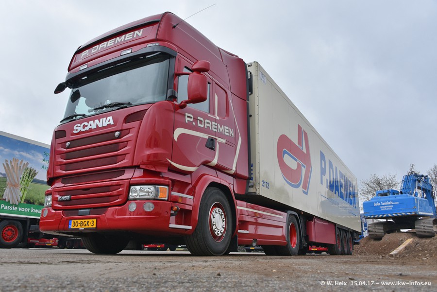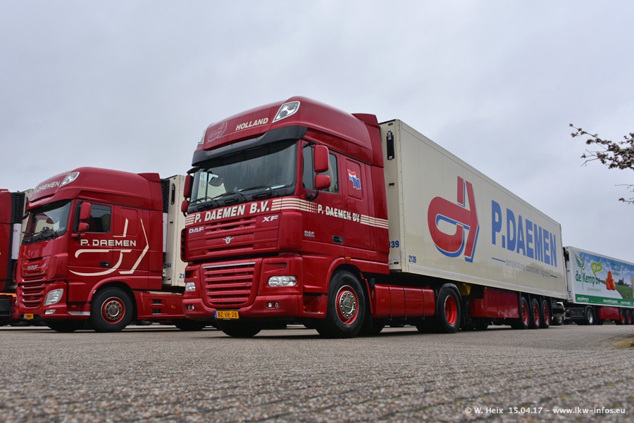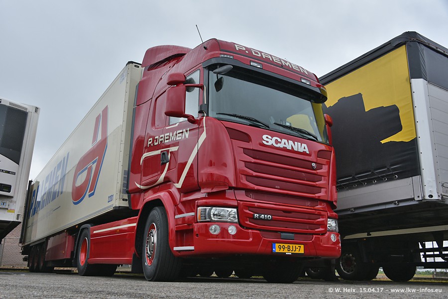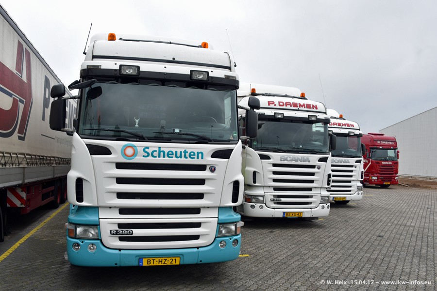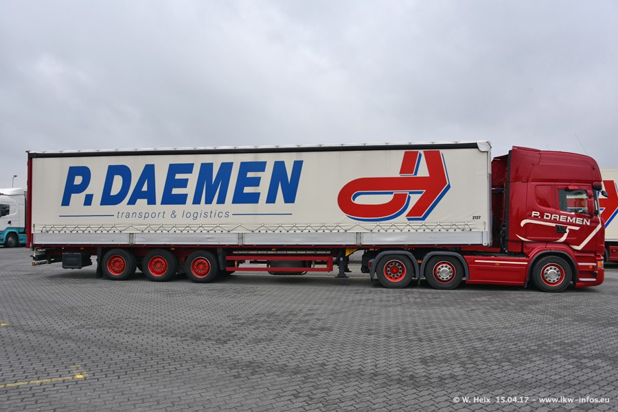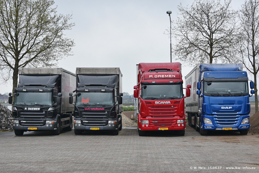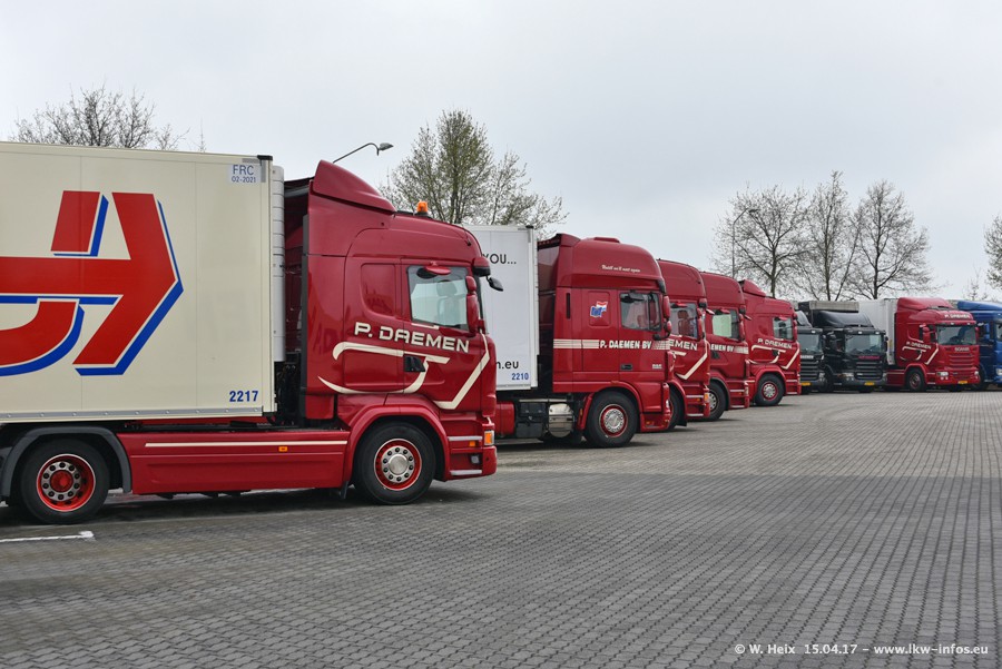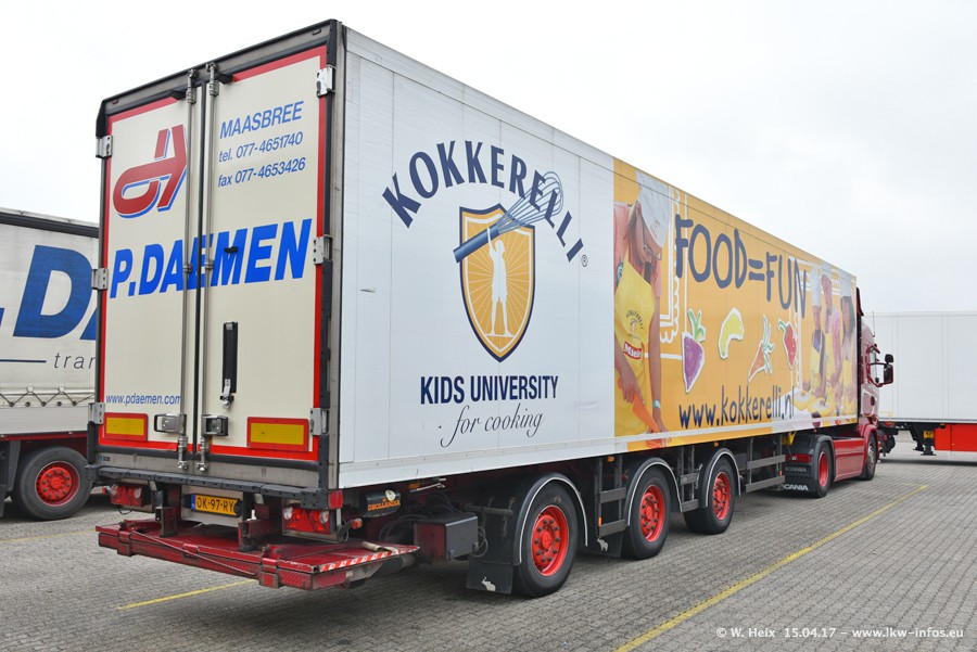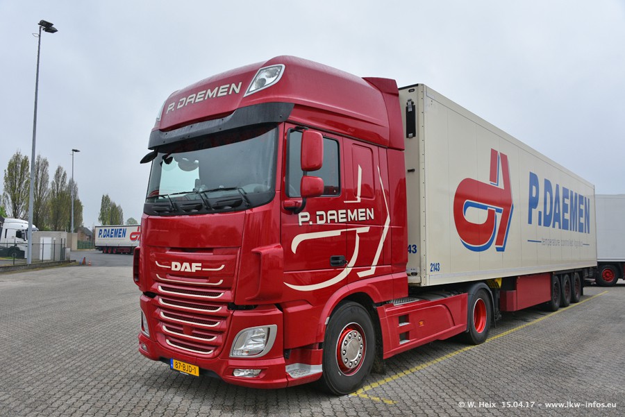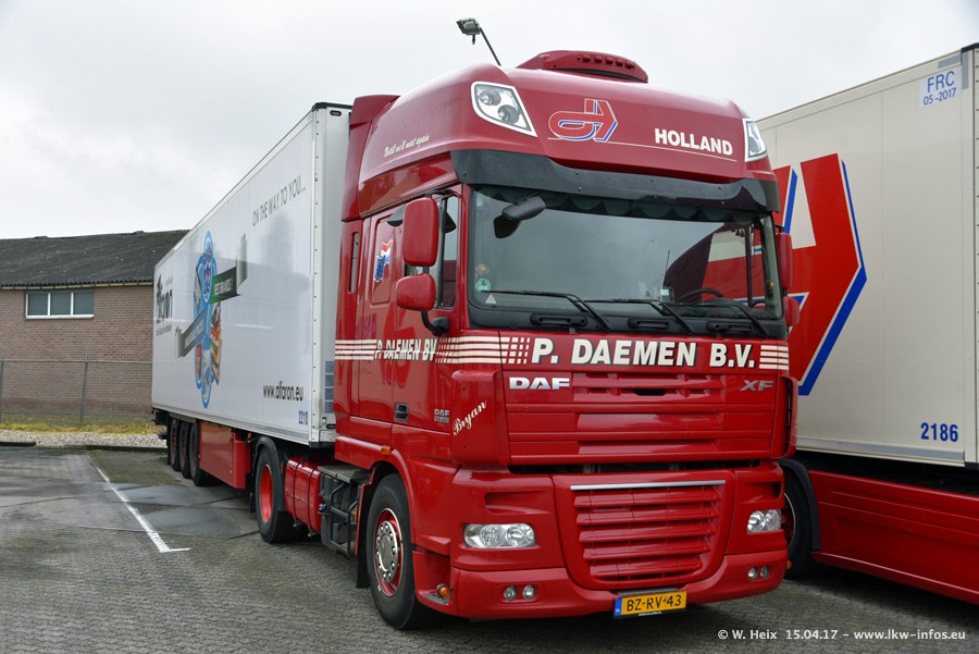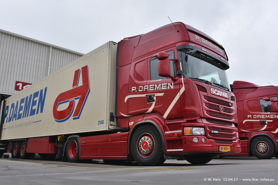 In den letzten Wochen wurde der Furhpark bei Daemen weiter modernisiert. Neu sind zwei DAF XF Euro 6 und mehrere Scania R 410 und R 450 Streamline (alte Baureihe). Und ich konnte einen neuen Auflieger entdecken, der wieder im Design eines Kunden gestaltet ist. Alle neuen Zugmaschinen sind an denn Kennzeichen mit den Buchstabenkombinationen "BJ" zu erkennen.