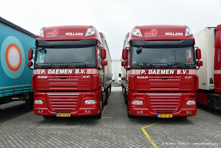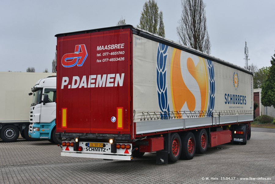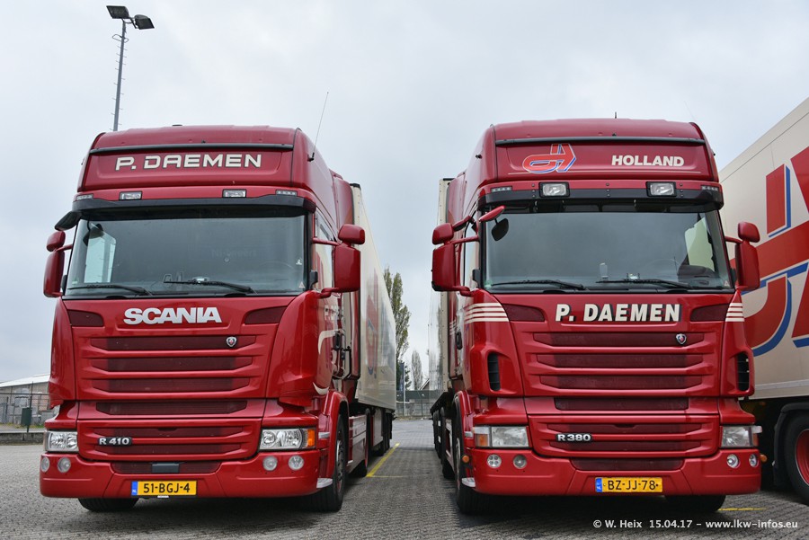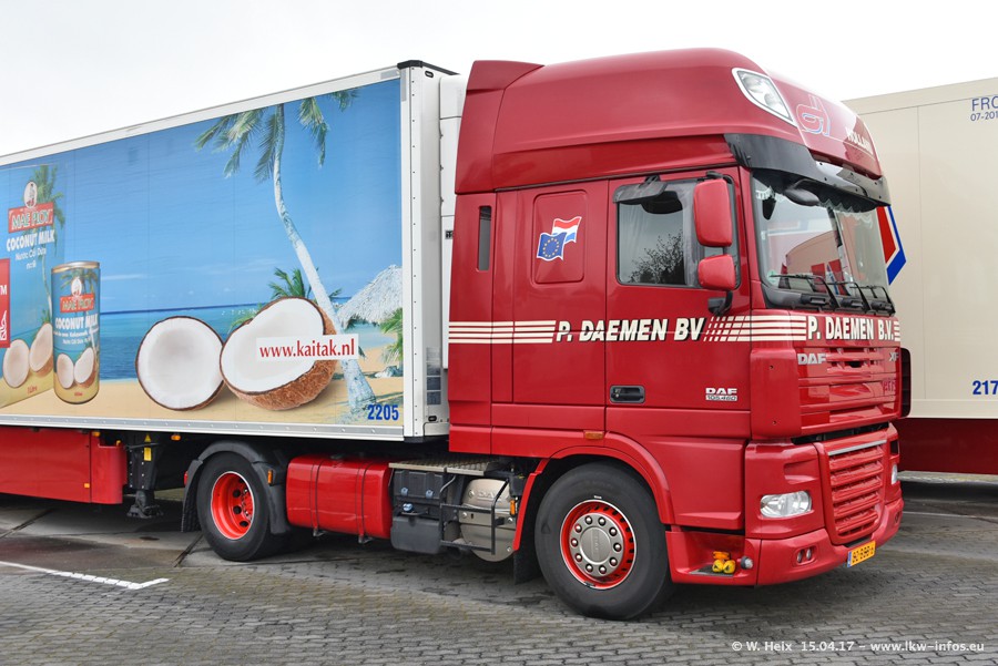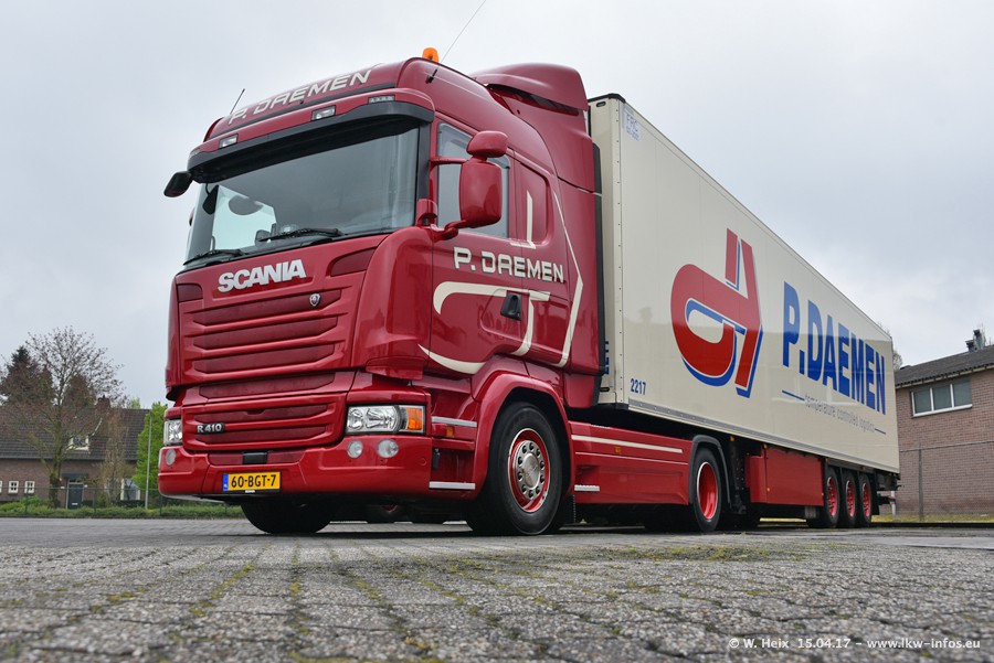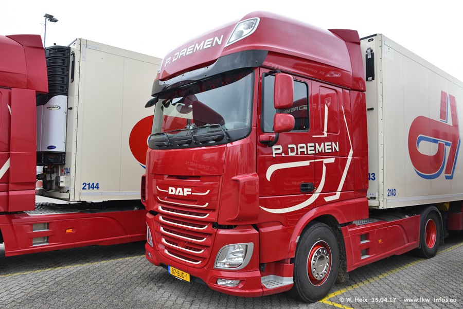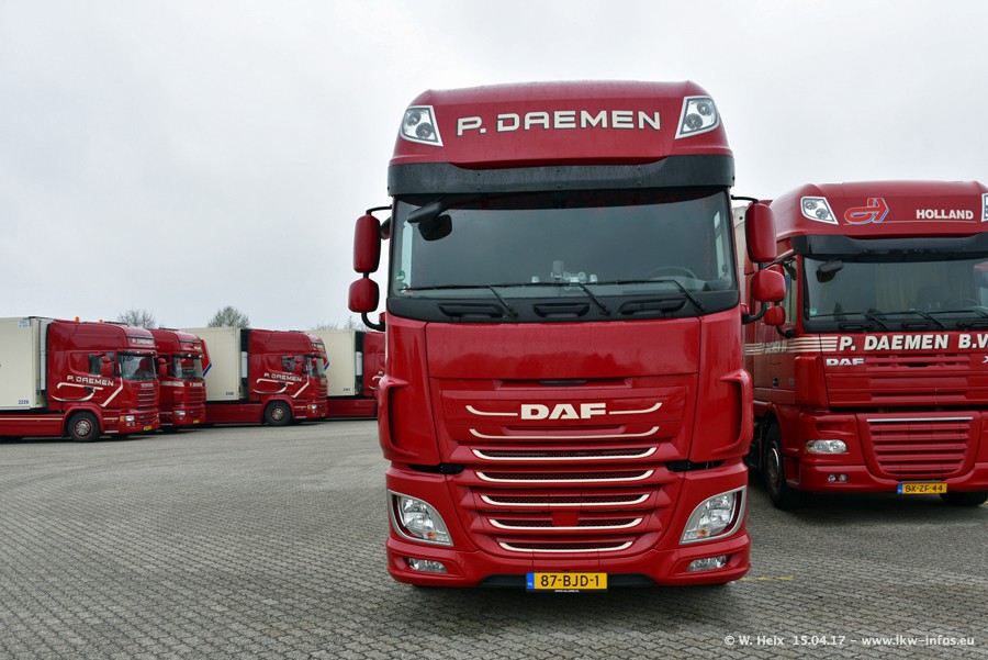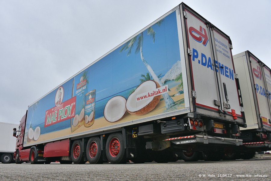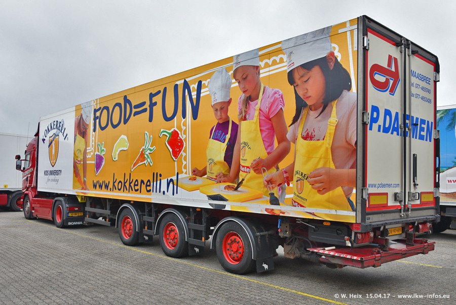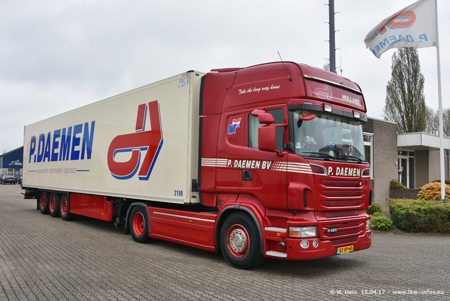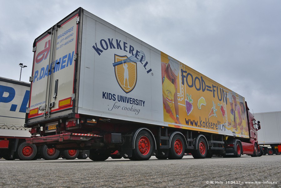 In den letzten Wochen wurde der Furhpark bei Daemen weiter modernisiert. Neu sind zwei DAF XF Euro 6 und mehrere Scania R 410 und R 450 Streamline (alte Baureihe). Und ich konnte einen neuen Auflieger entdecken, der wieder im Design eines Kunden gestaltet ist. Alle neuen Zugmaschinen sind an denn Kennzeichen mit den Buchstabenkombinationen "BJ" zu erkennen.